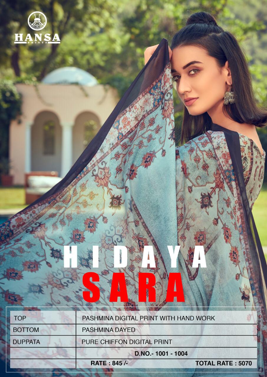 Hidaya Sara By Hansa Pashmina Digital Print With Hand Work Suit At Wholesale Rate