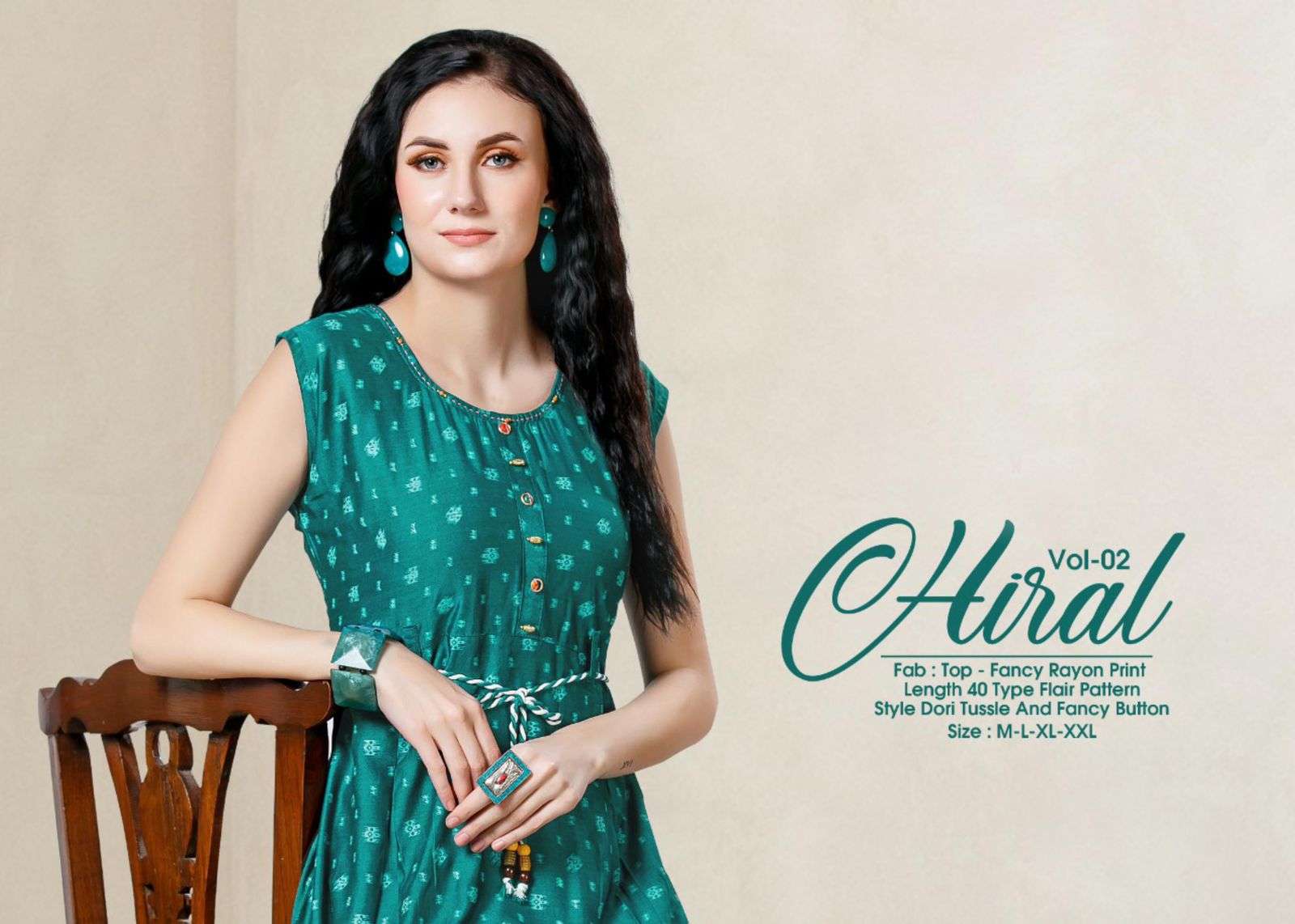 HIRAL VOL.2 HEAVY black RAYON PRINT KURTI CATALOG WHOLESALER BEST RATE