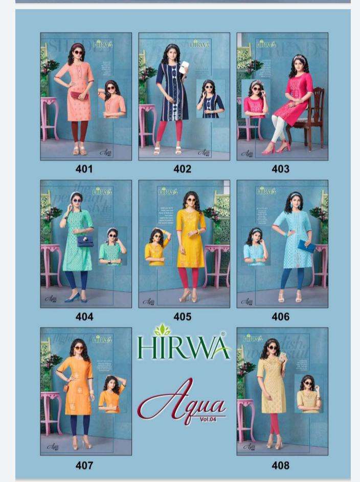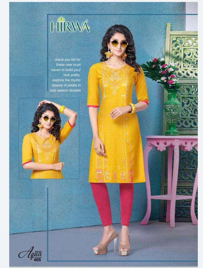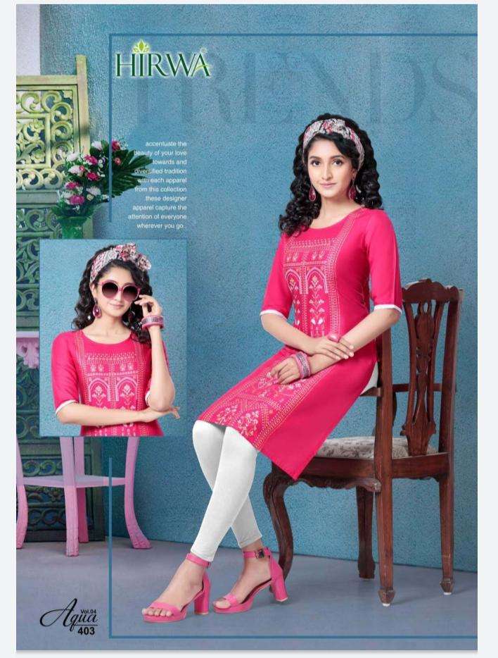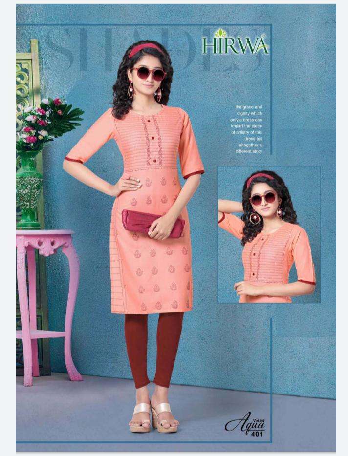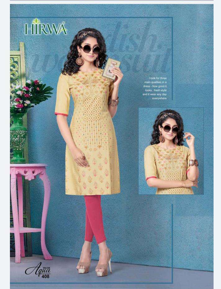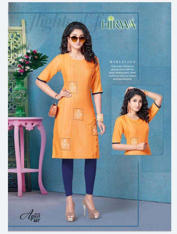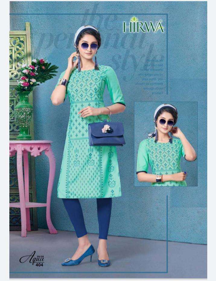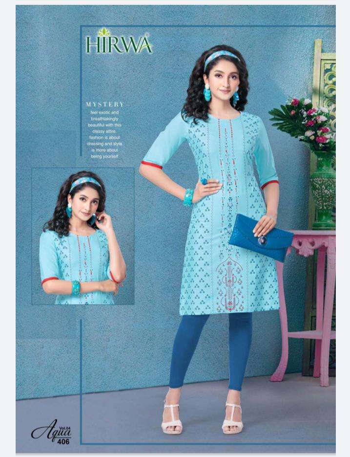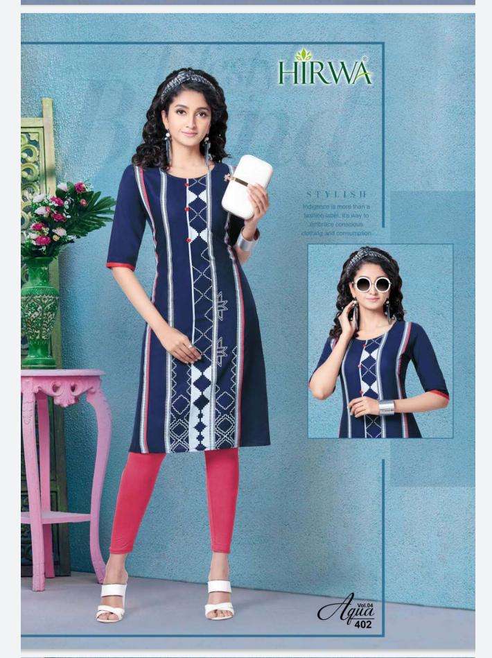 HIRWA presents AQUA (vol.4) Heavy Quality Pure Rayon Printed Designer Kurtis 10 designs. 40-42 Length Sizes:, L, XL and XXLÂ |