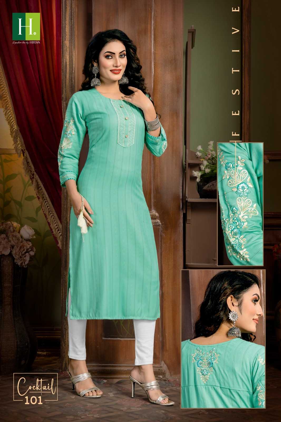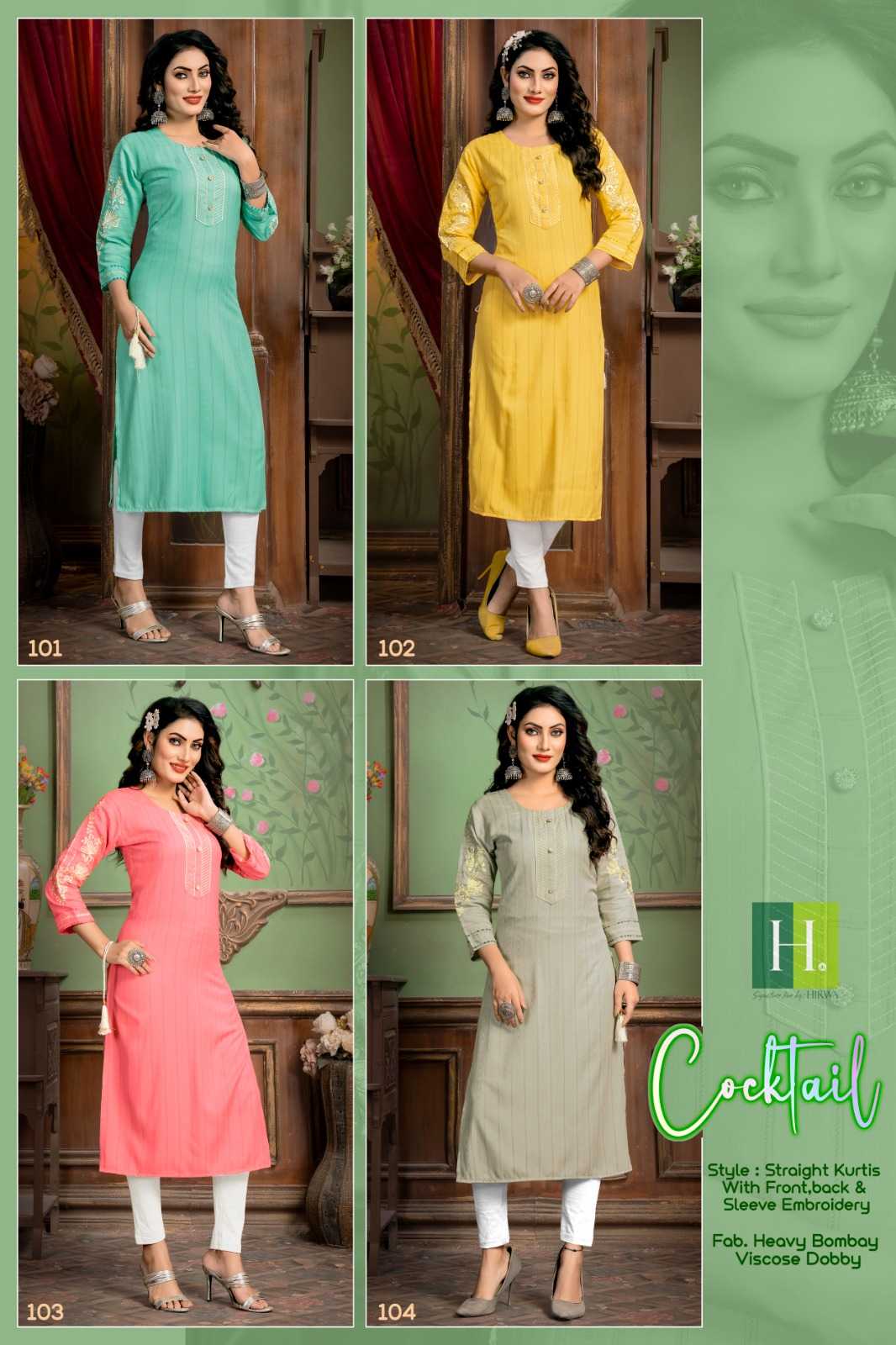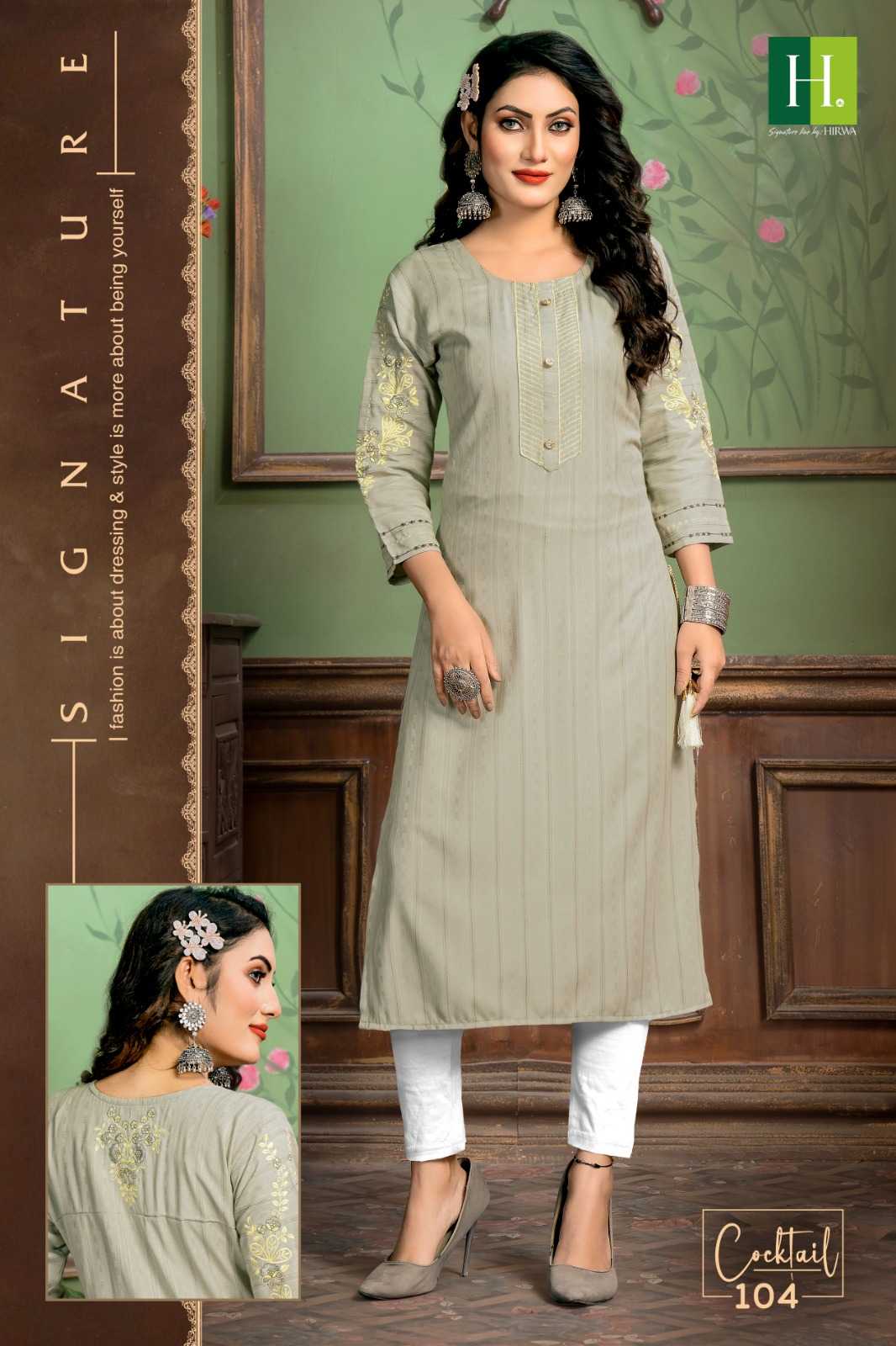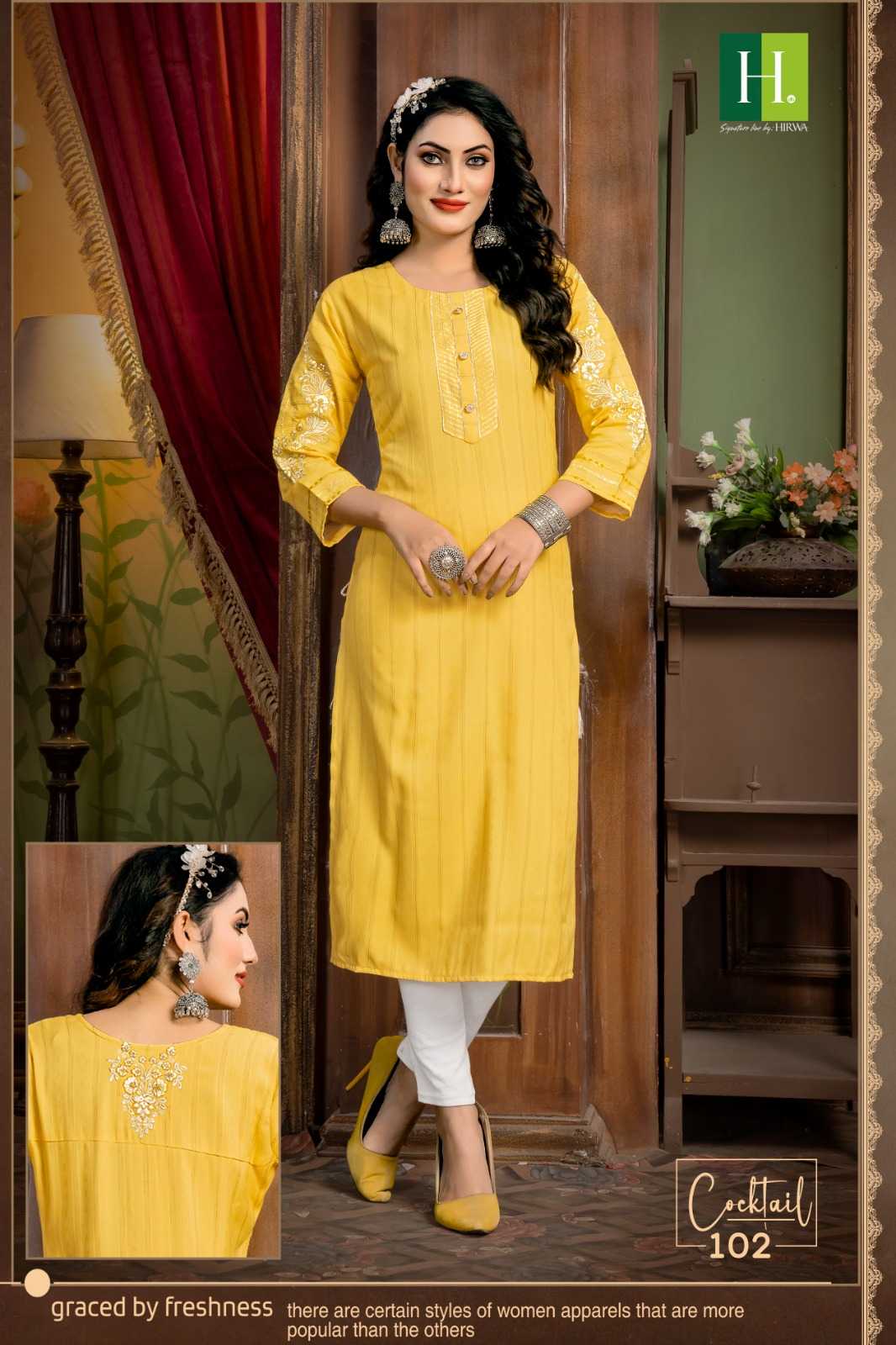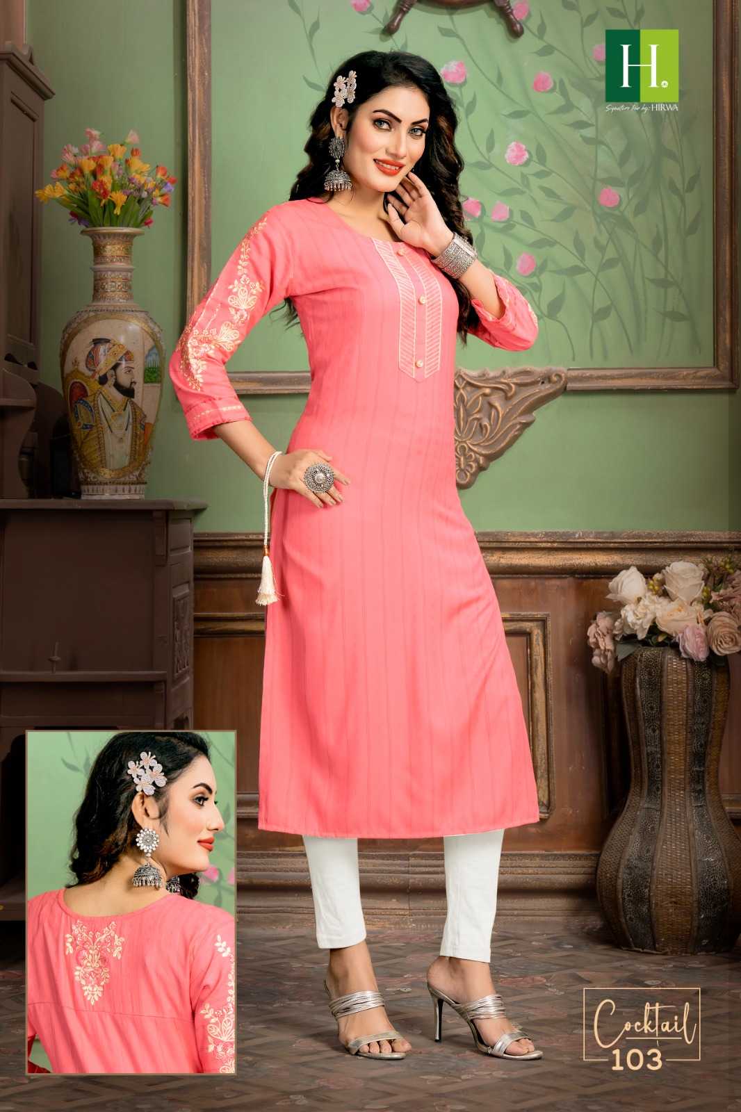 H.DOT by HIRWA presents its latest kurti catalog 📒NAME: COCKTAIL 👗 Fabric: Self-Woven Fancy Viscose Rayon Concept: Festive wear Kurtis with Embroidery Work IN SLEEVE AND BACK ✨ LENGTH: 44"+ ✨ DESIGNS: 4 ✨ SIZES: S, M, L, XL, XXL, 3XL |