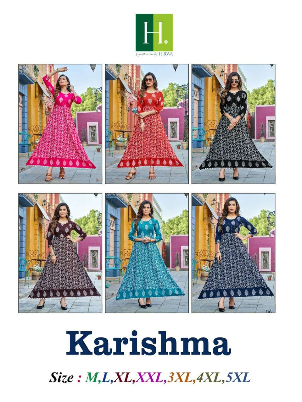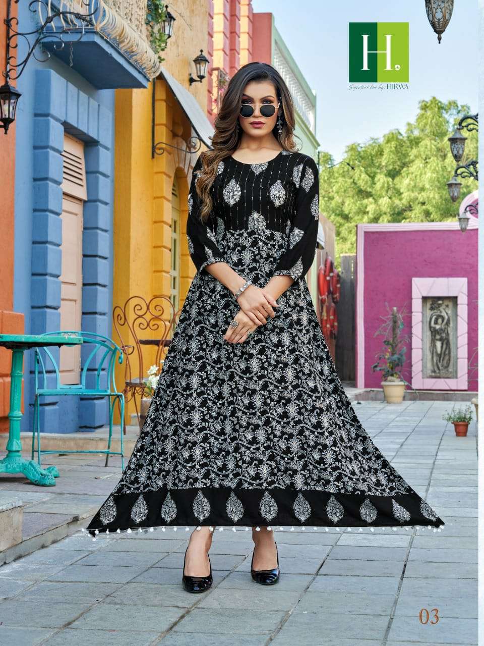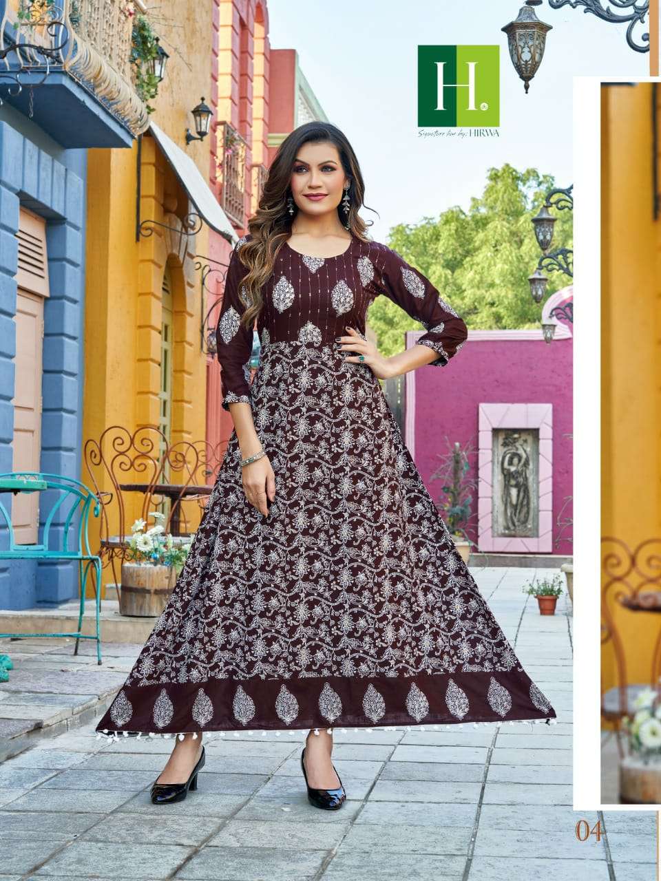 hirwa karishma rayon printed long gown kurtis with sequence work