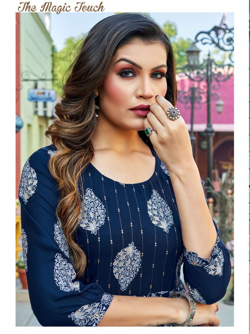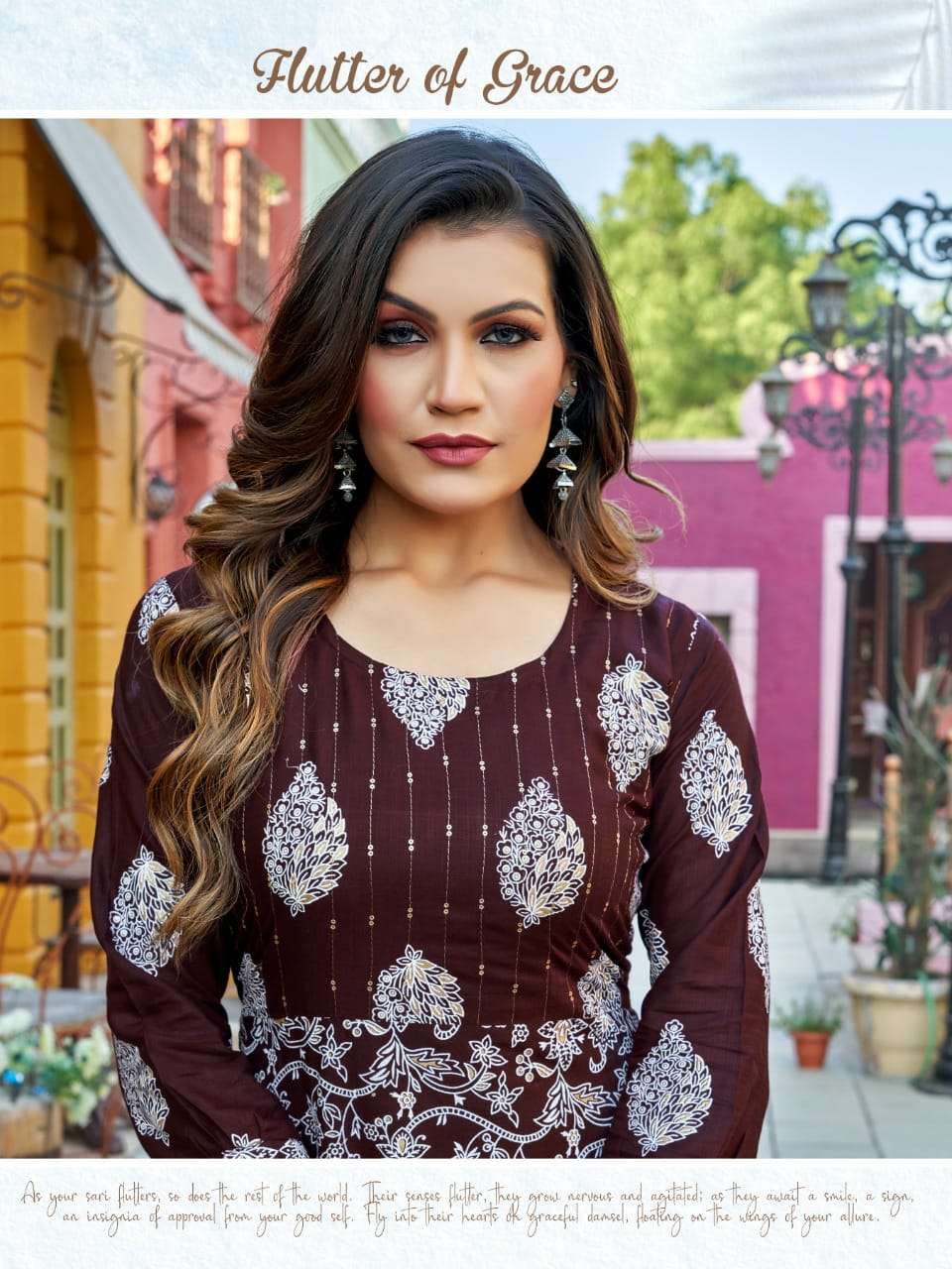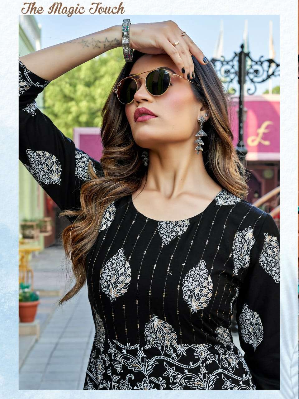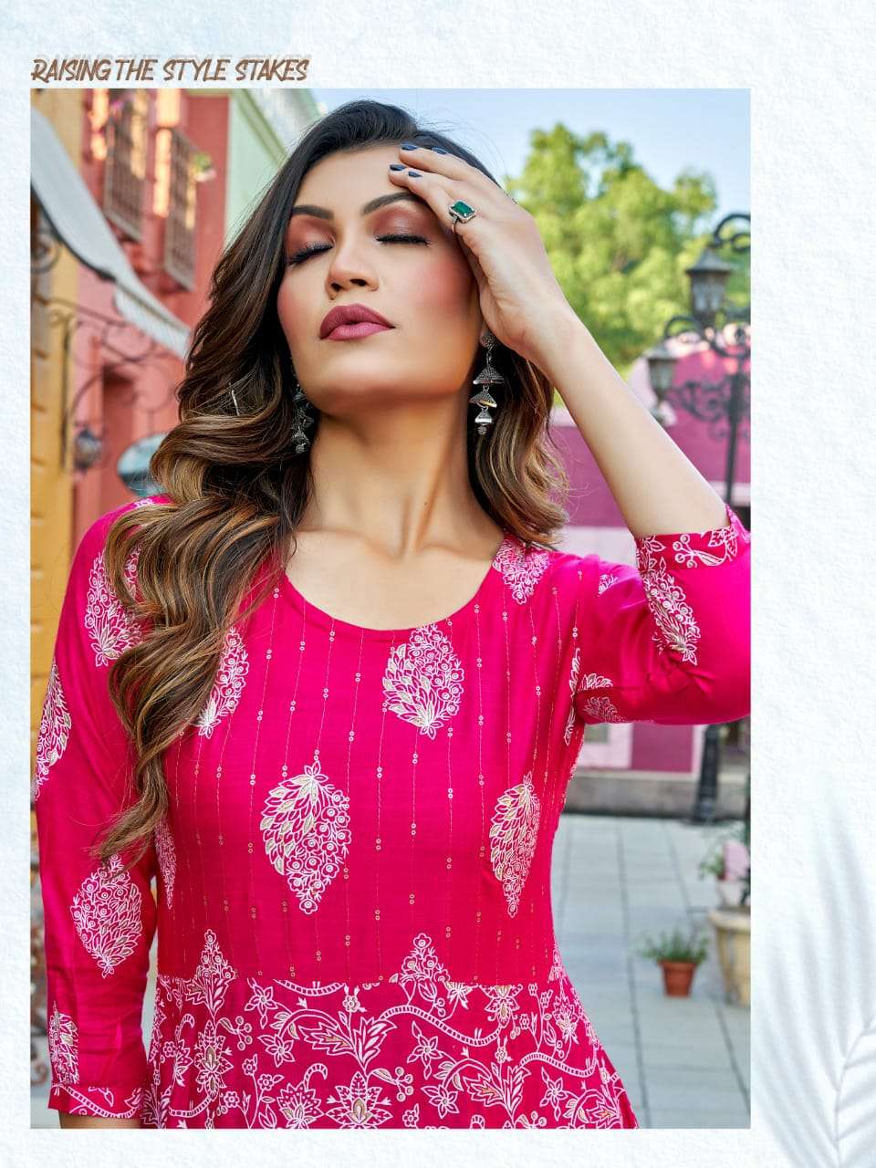 hirwa karishma rayon printed long gown kurtis with sequence work