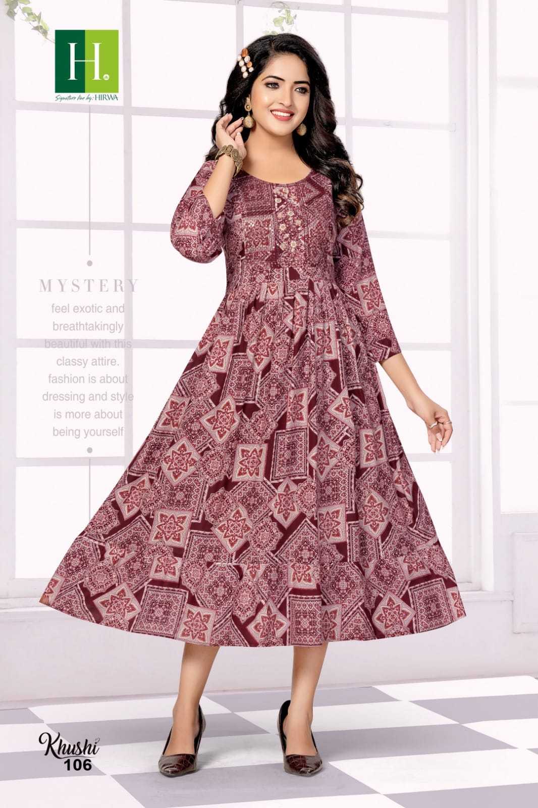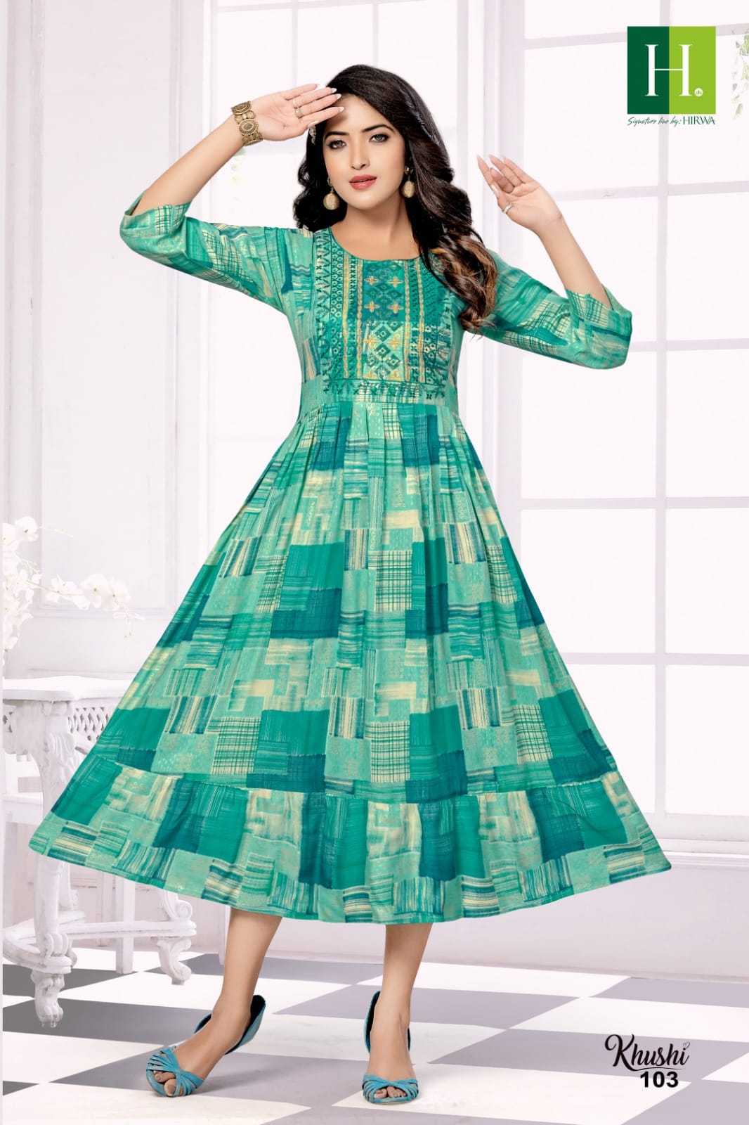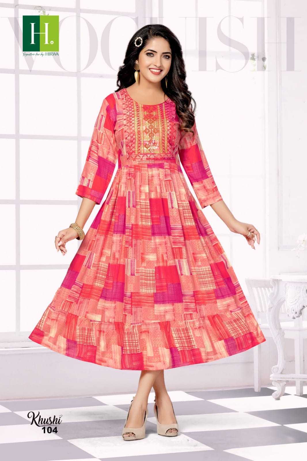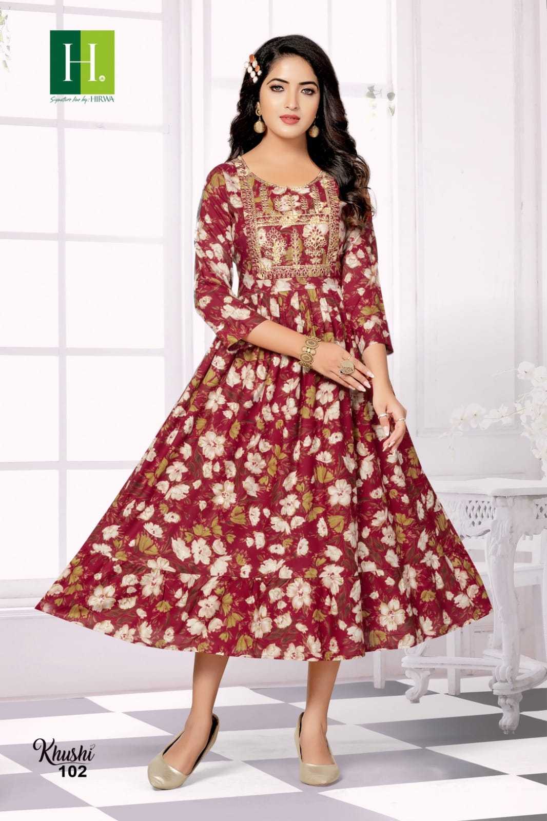 hirwa khushi fancy stitch ghera kurti with heavy neck work
