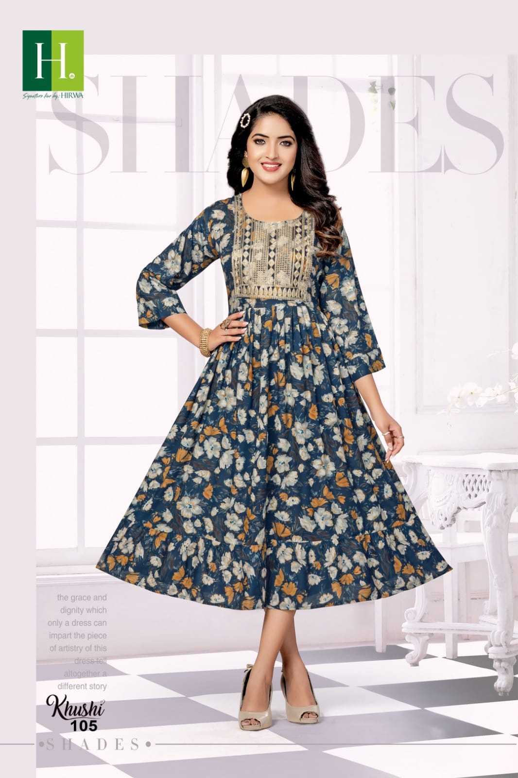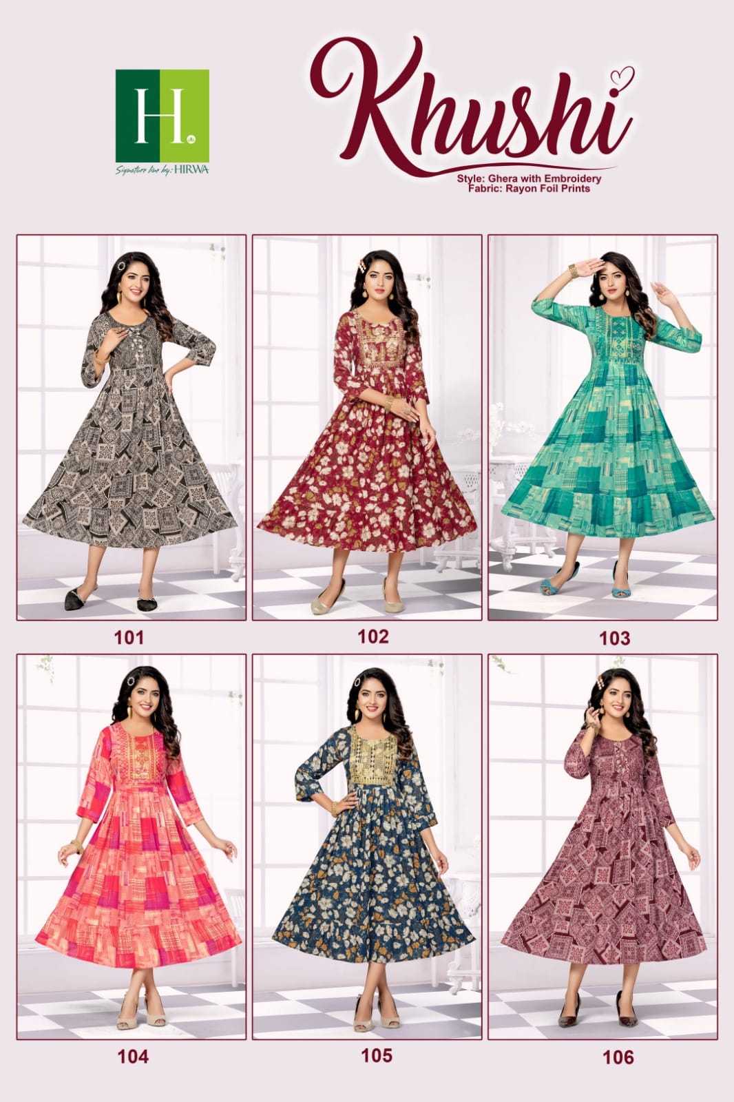 🔥 RAYON GHERA 🔥 H.DOT by HIRWA presents its latest GHERA Catalog 📒NAME: KHUSHI 👗 Fabric: Heavy Rayon Foil Prints Style: Ghera Kurtis with Heavy Neck Work 👉DESIGNS: 6 Length : 45+ SIZES: S, M, L & XL Rate: 545/- |
