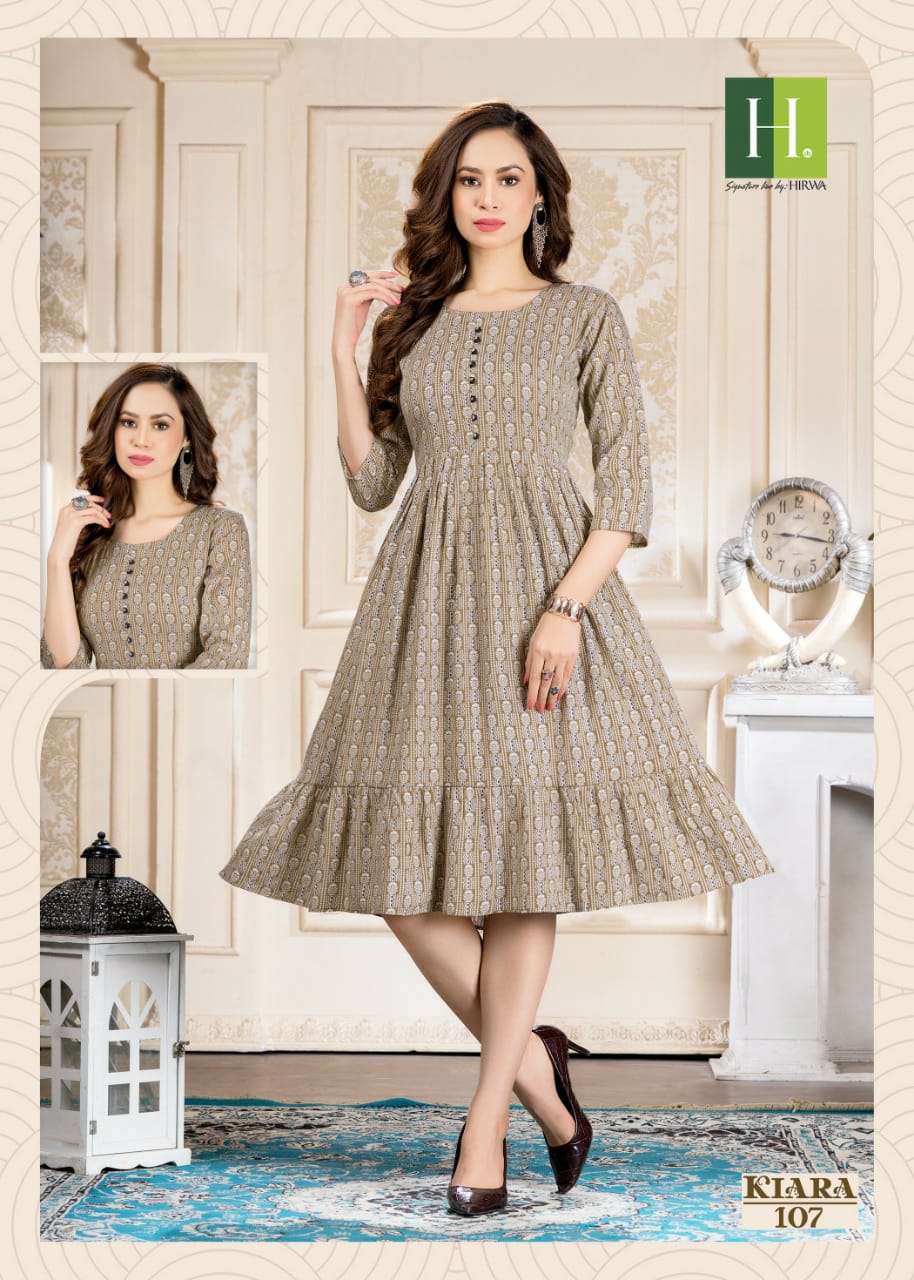 hirwa kurti surat Ahmedabad kiara by h dot rayon print flair pattern