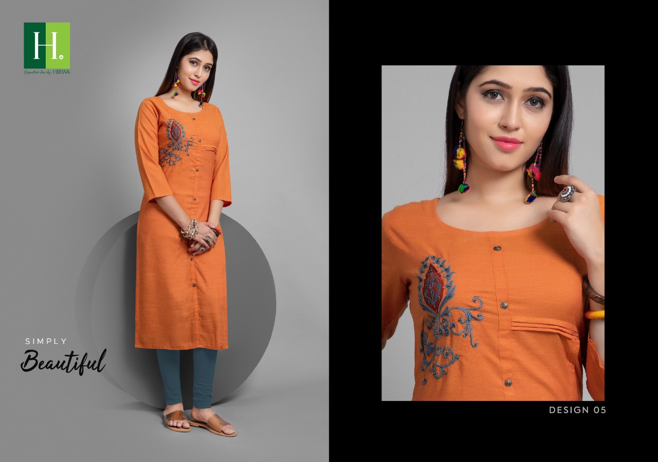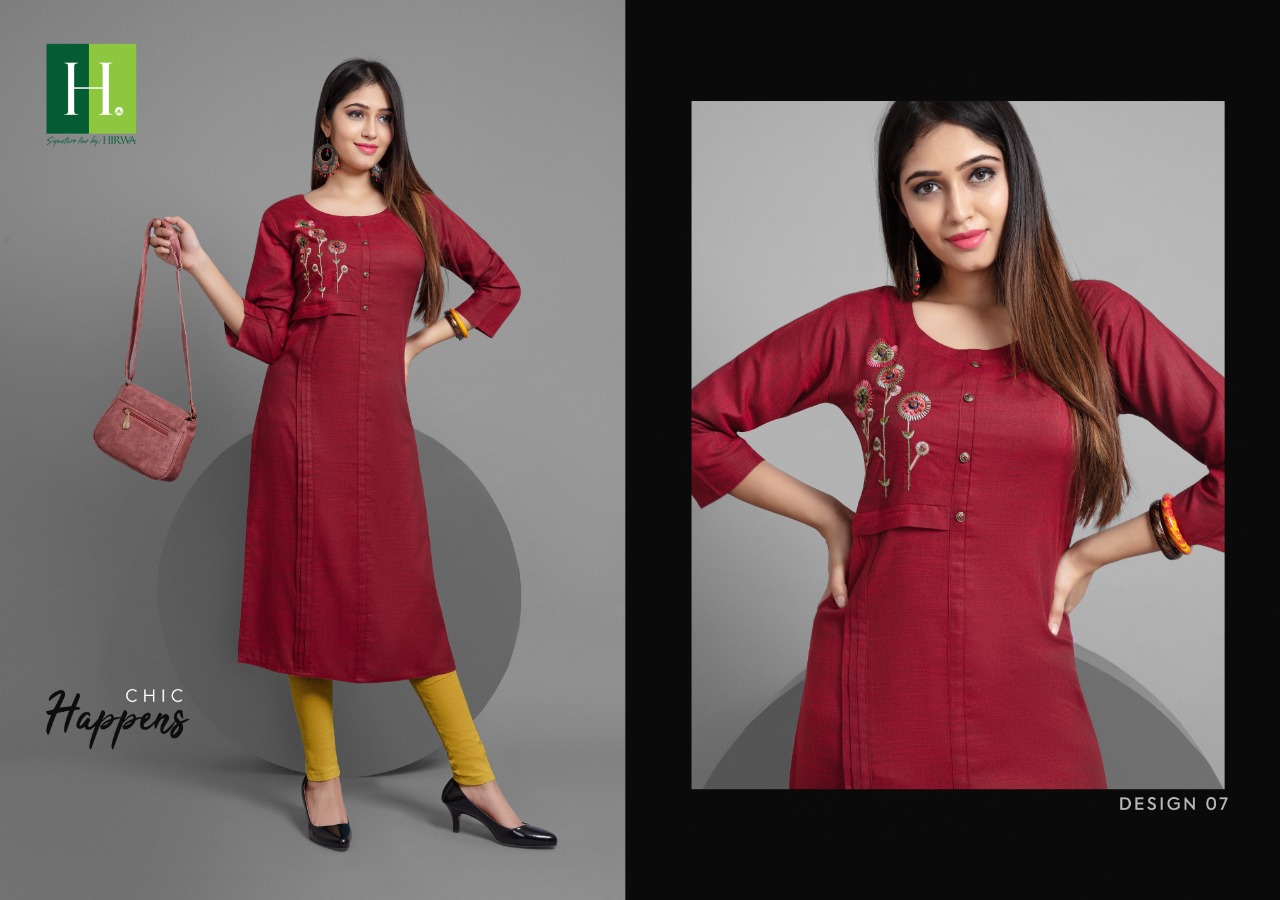Hirwa Launch Resham Fancy Rayon Casual Wear Exclusive Kurti At Lowest Rate