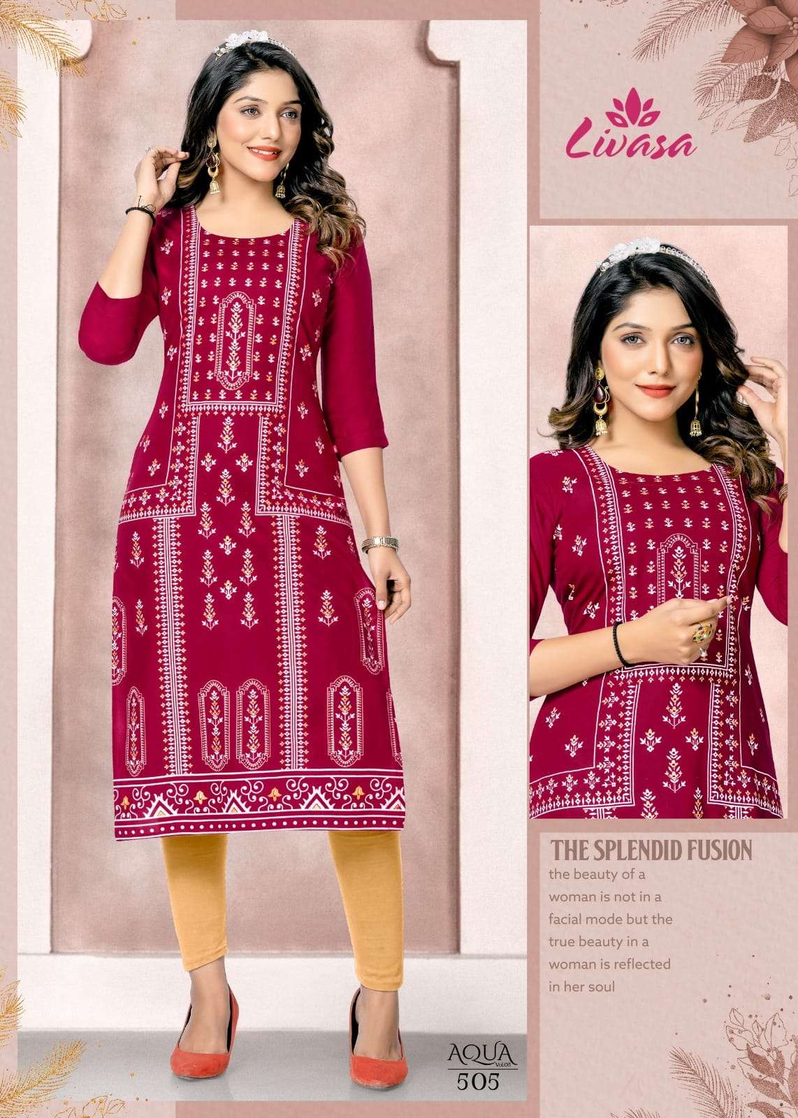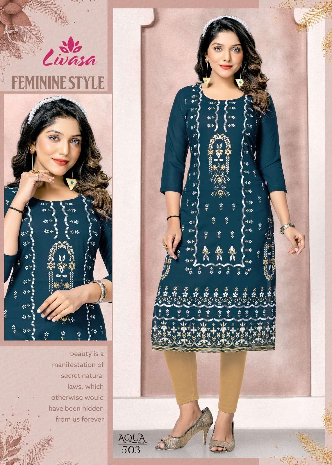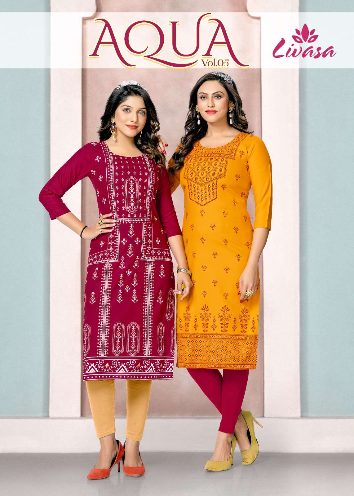 hirwa livasa aqua vol 5 readymade fancy straight kurti