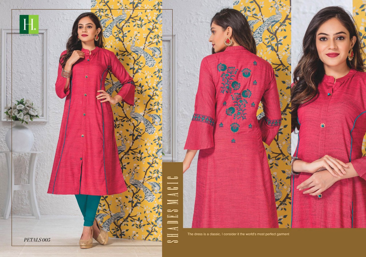 Hirwa Petals Rayon Embroidery Premium Kurti Collection