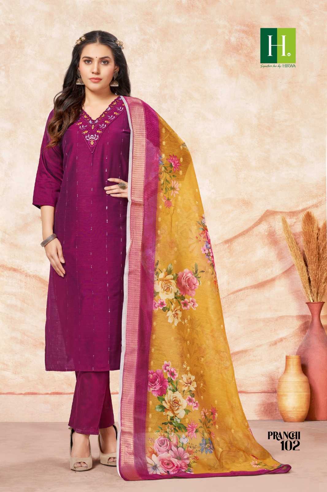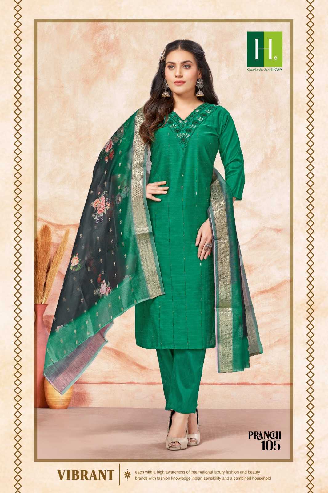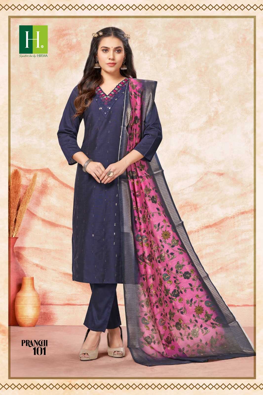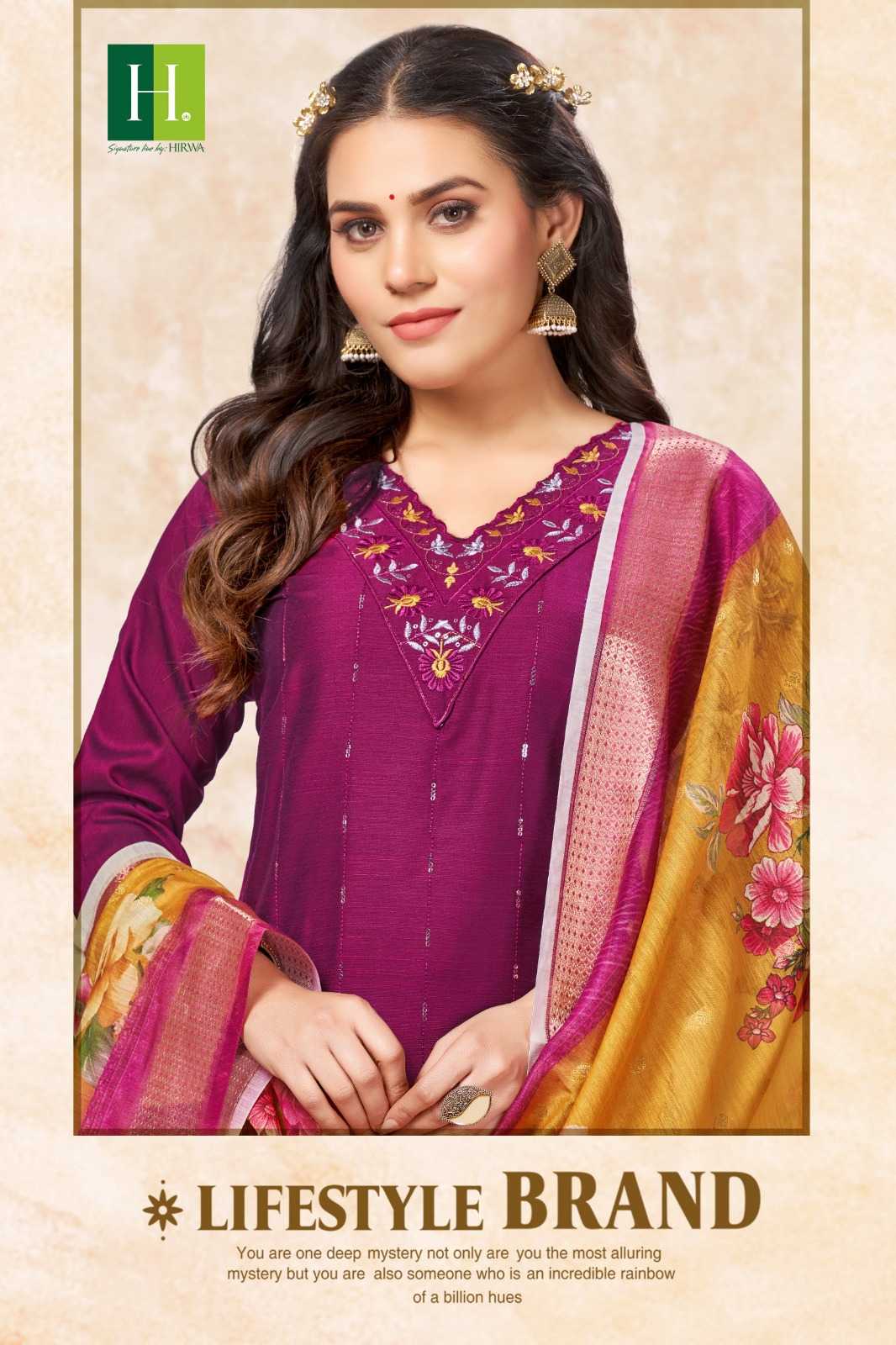 hirwa pranchi readymade handwork v neck kurti pant with dupatta