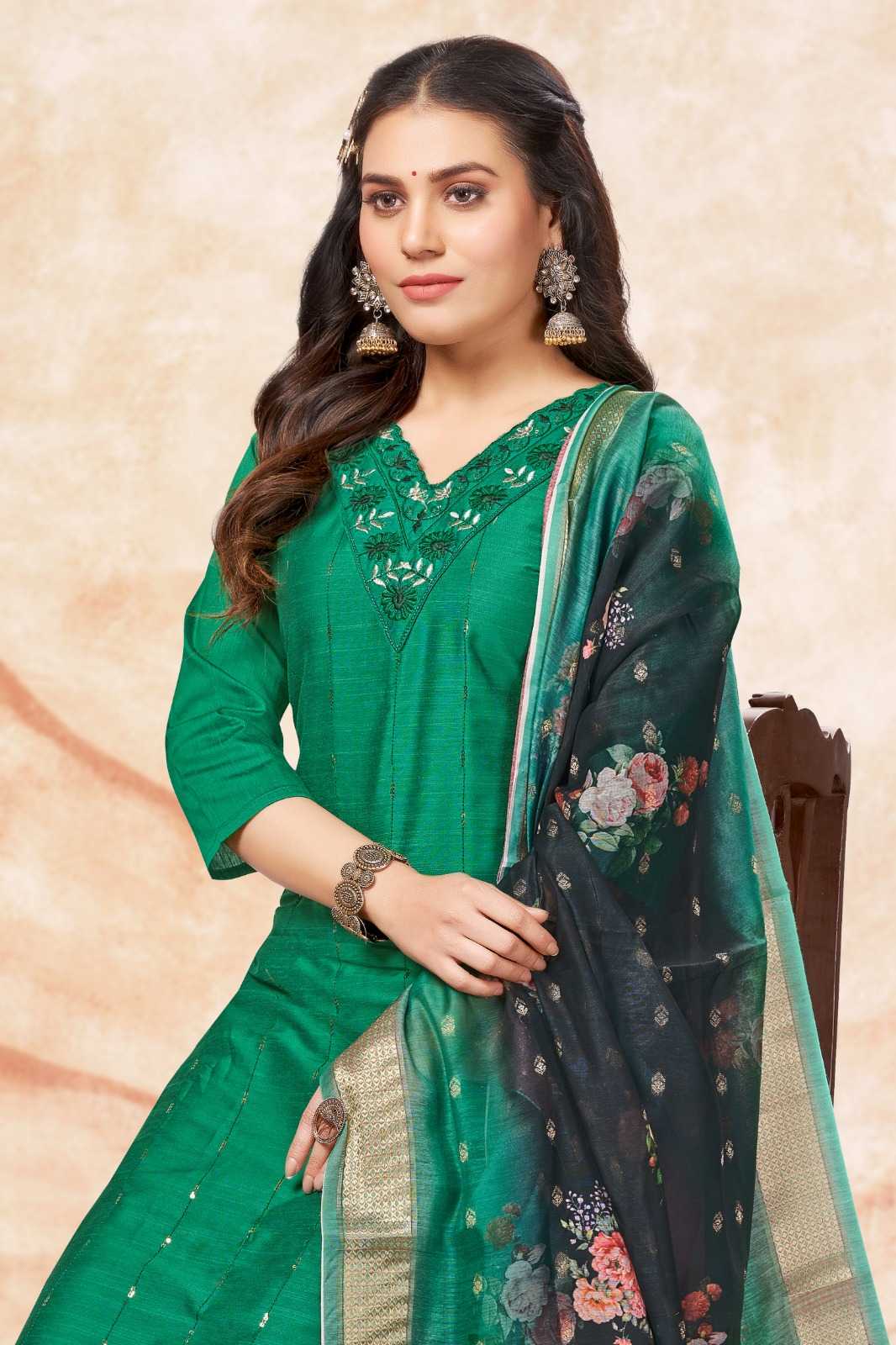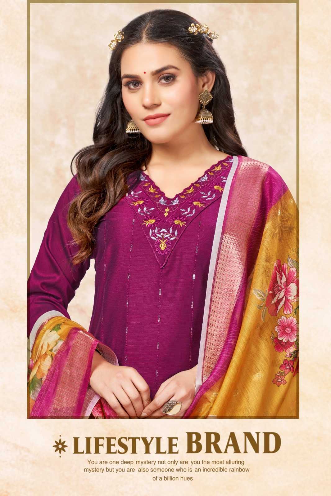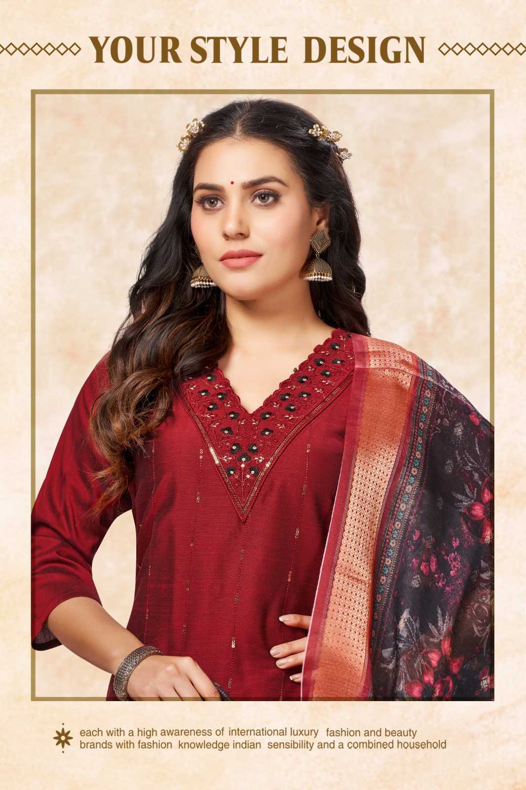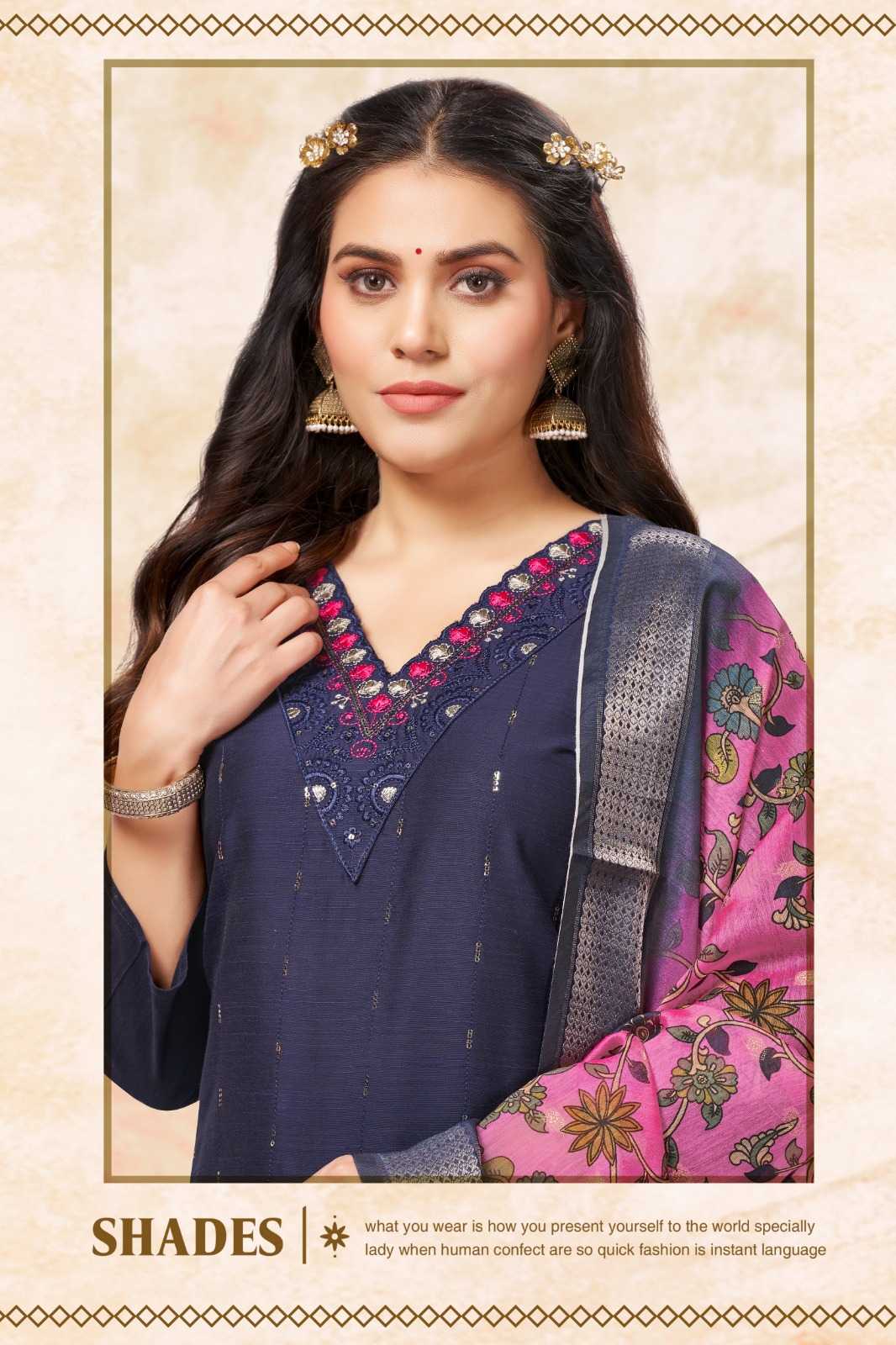 🔥 Long Slub Silk Straight 3-Piece🔥 H.DOT by HIRWA presents its latest straight cut 3-Piece catalog 📒NAME: PRANCHI 👗 FABRIC: 👇 Kurti - Long Slub Silk Pant - Long Slub Silk Dupatta - CHANDERI JACARD BUTTY WITH DIGITAL PRINT ✨ CONCEPT: 3-Piece (Top + Pant + Dupatta) Straight V-NECK Festive wear Kurtis with Heavy Embroidery Work ✨ LENGTH: 44" ✨ DESIGNS: 6 ✨ SIZES: M,L,XL,XXL rate : 865/- |