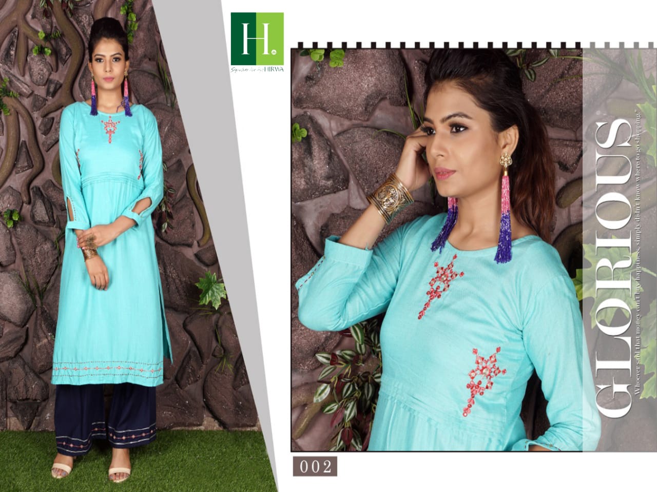Hirwa Present Anokhi Heavy Rayon Embroidery Top With Plazzo Wholesaler