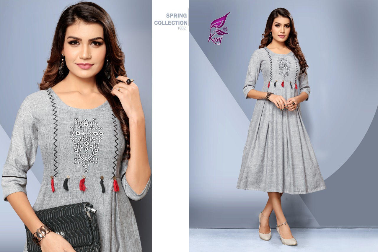 Hirwa has launched its new long kurti catalog for trendy girls with hand embroidery Simple yet classic Fabric - Fancy Rayon (Weaving Checks) Apsara 6 designs only Rate: 605/- Sizes: S, M, L, XL, XXL and 3XL |