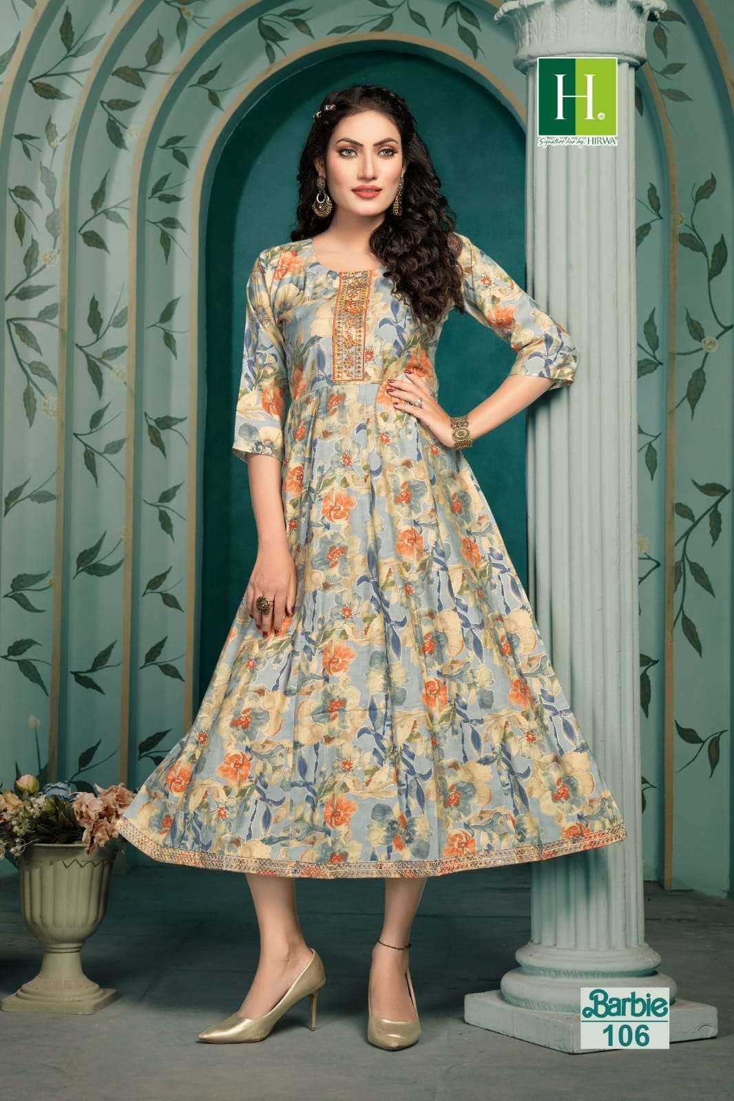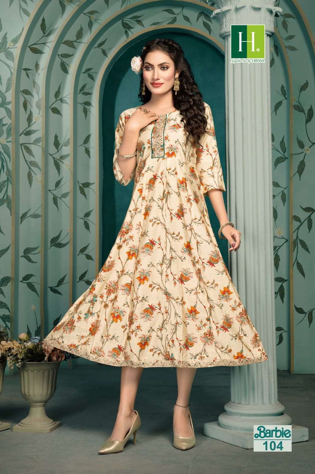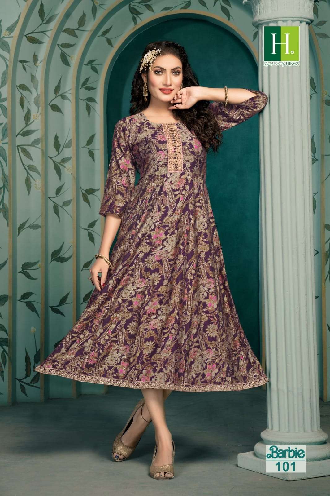 hirwa present barbie fancy anarkali kurti catalog