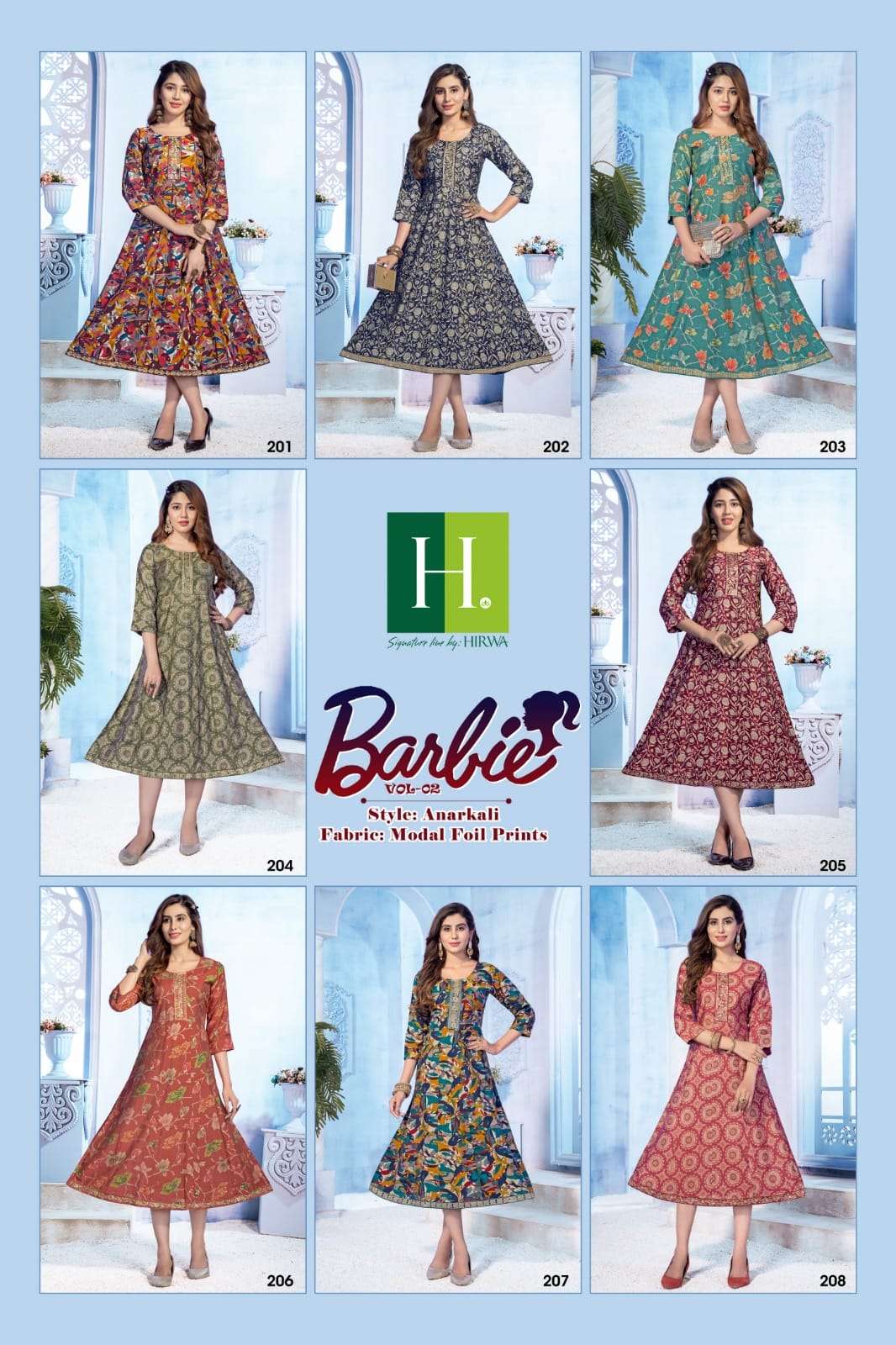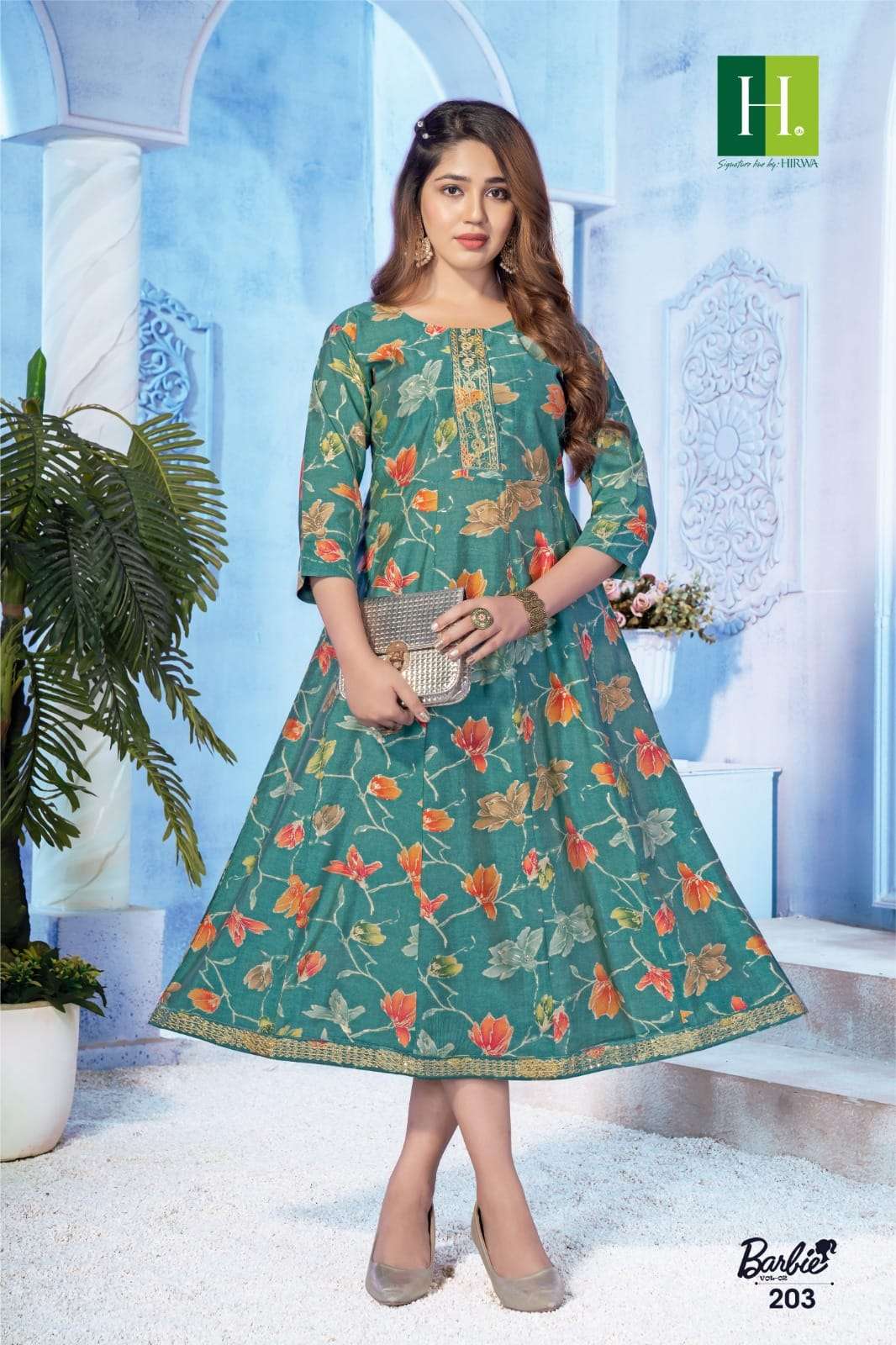 hirwa present barbie vol 2 readymade umbrella kurti catalog