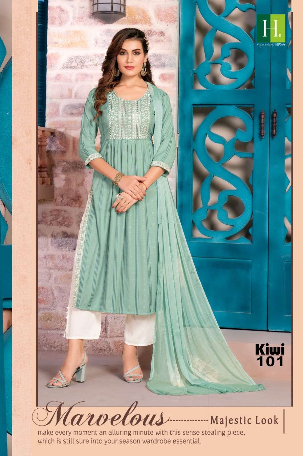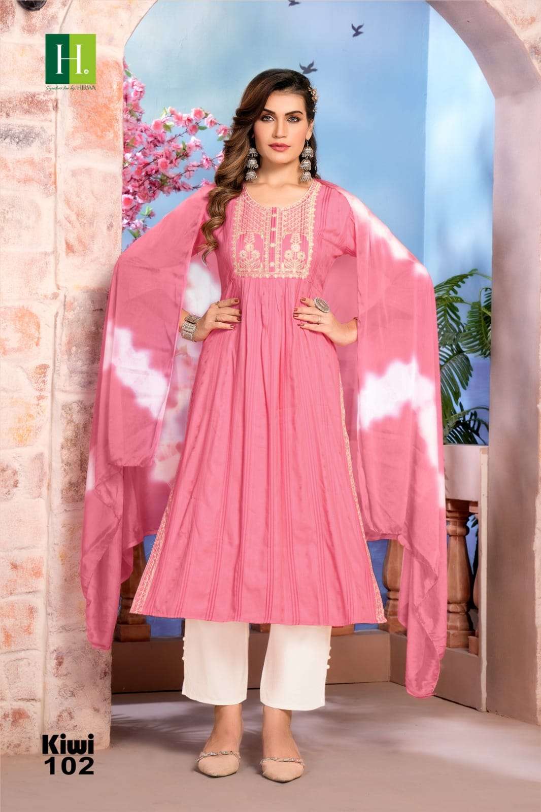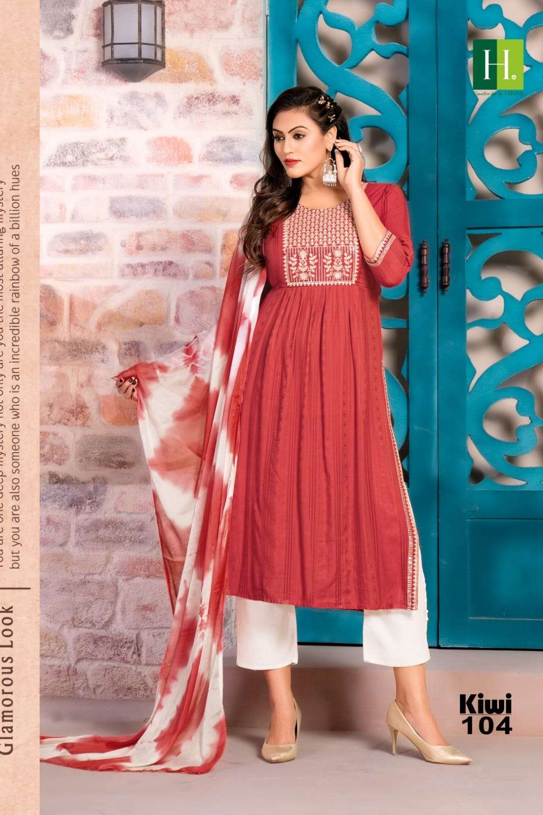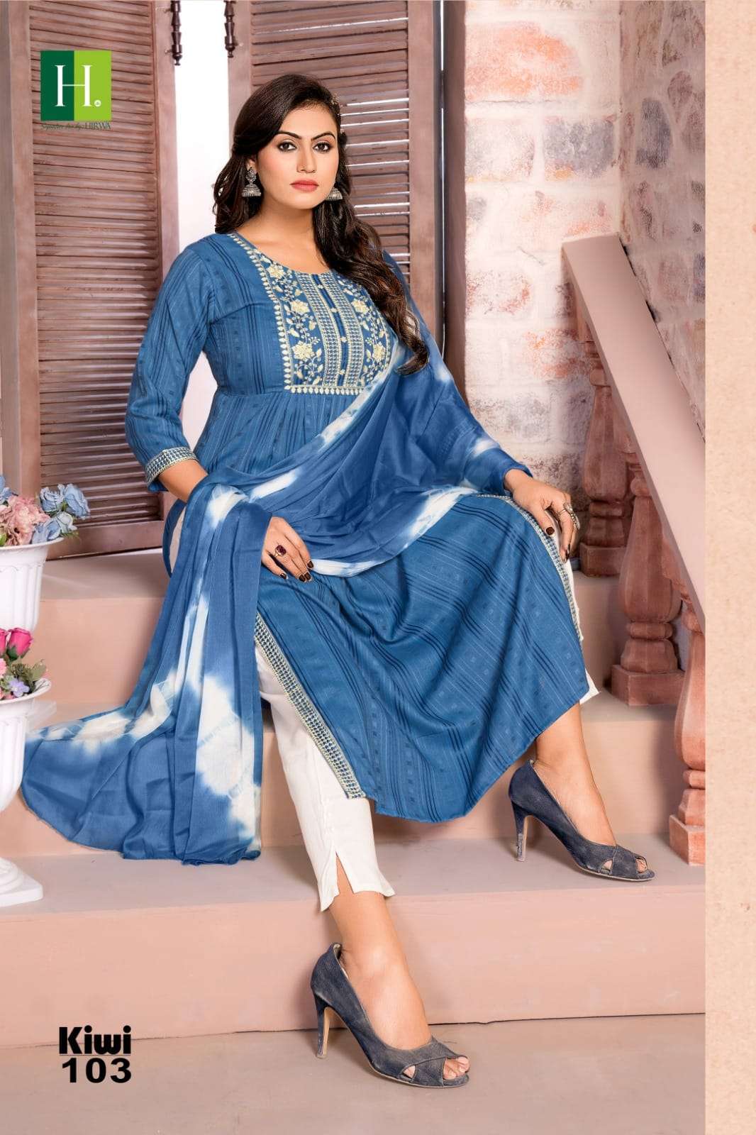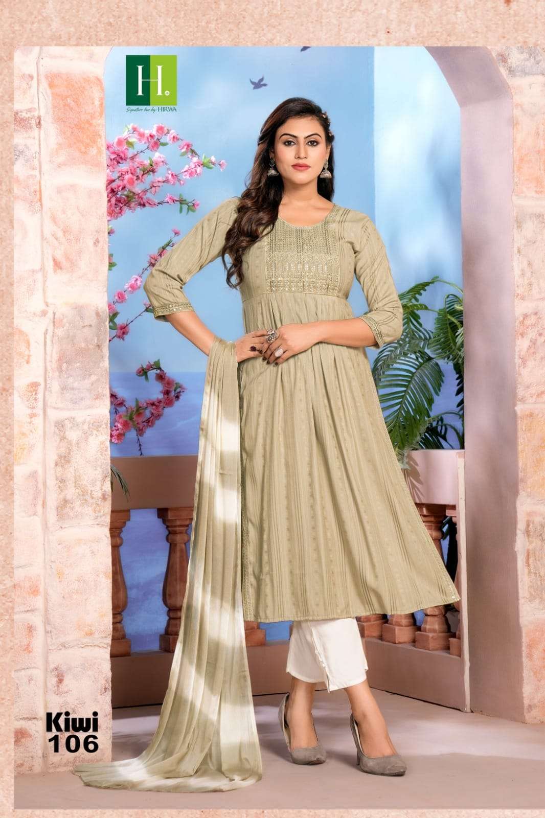 hirwa present kiwi festive wear nayra cut kurti with pant and dupatta concept 3pcs set