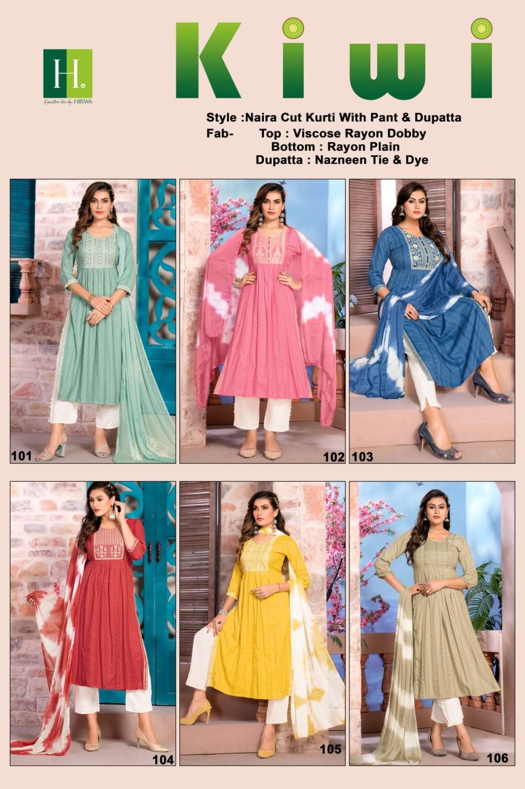 🔥 Naira 3-Piece🔥 H.DOT by HIRWA presents its latest Naira cut 3-Piece catalog 📒NAME: KIWI 👗 FABRIC: 👇 Kurti - Viscose Rayon Weaving Dobby Pant - Heavy Rayon Plain with Potli Buttons Dupatta - Nazneen Tie & Dye ✨ CONCEPT: 3-Piece (Top + Pant + Dupatta) Naira Cut Festive wear Kurtis with Embroidery Work ✨ LENGTH: 45"+ ✨ DESIGNS: 6 ✨ SIZES: L, 4XL Rate: 745/- per pcs |