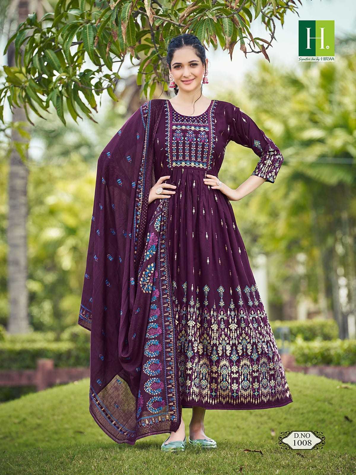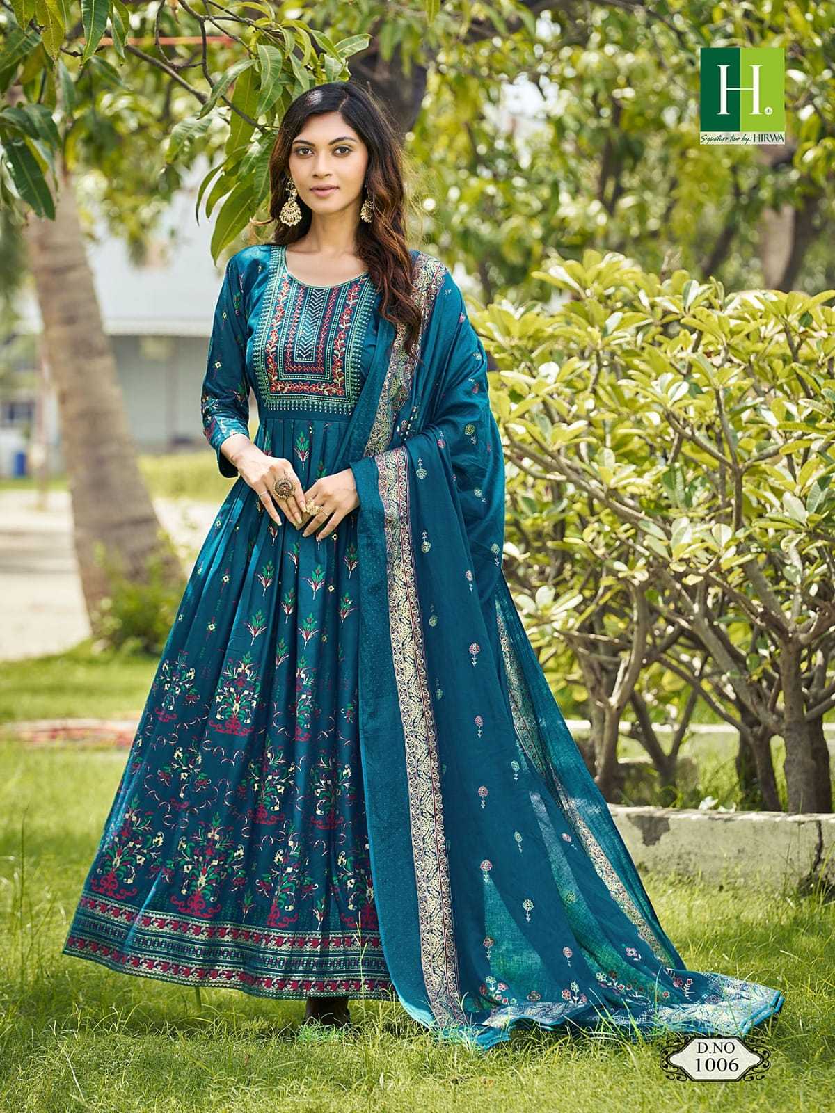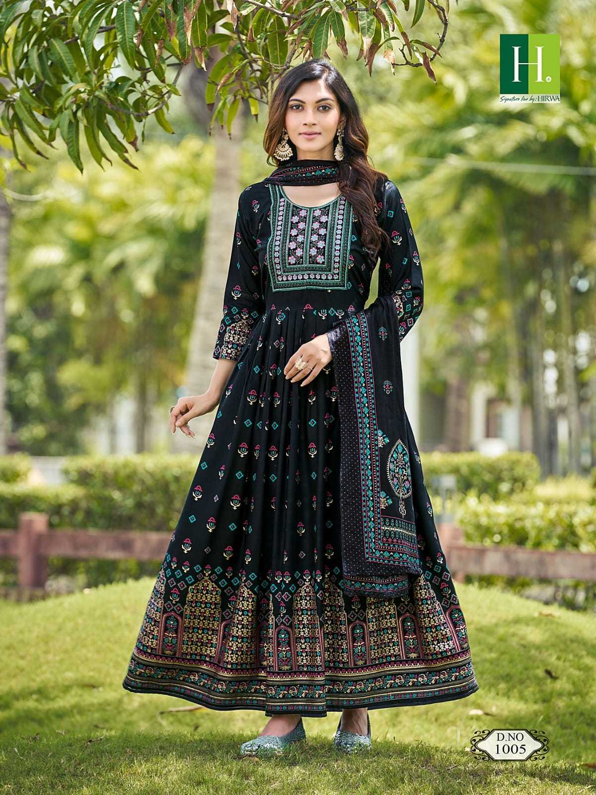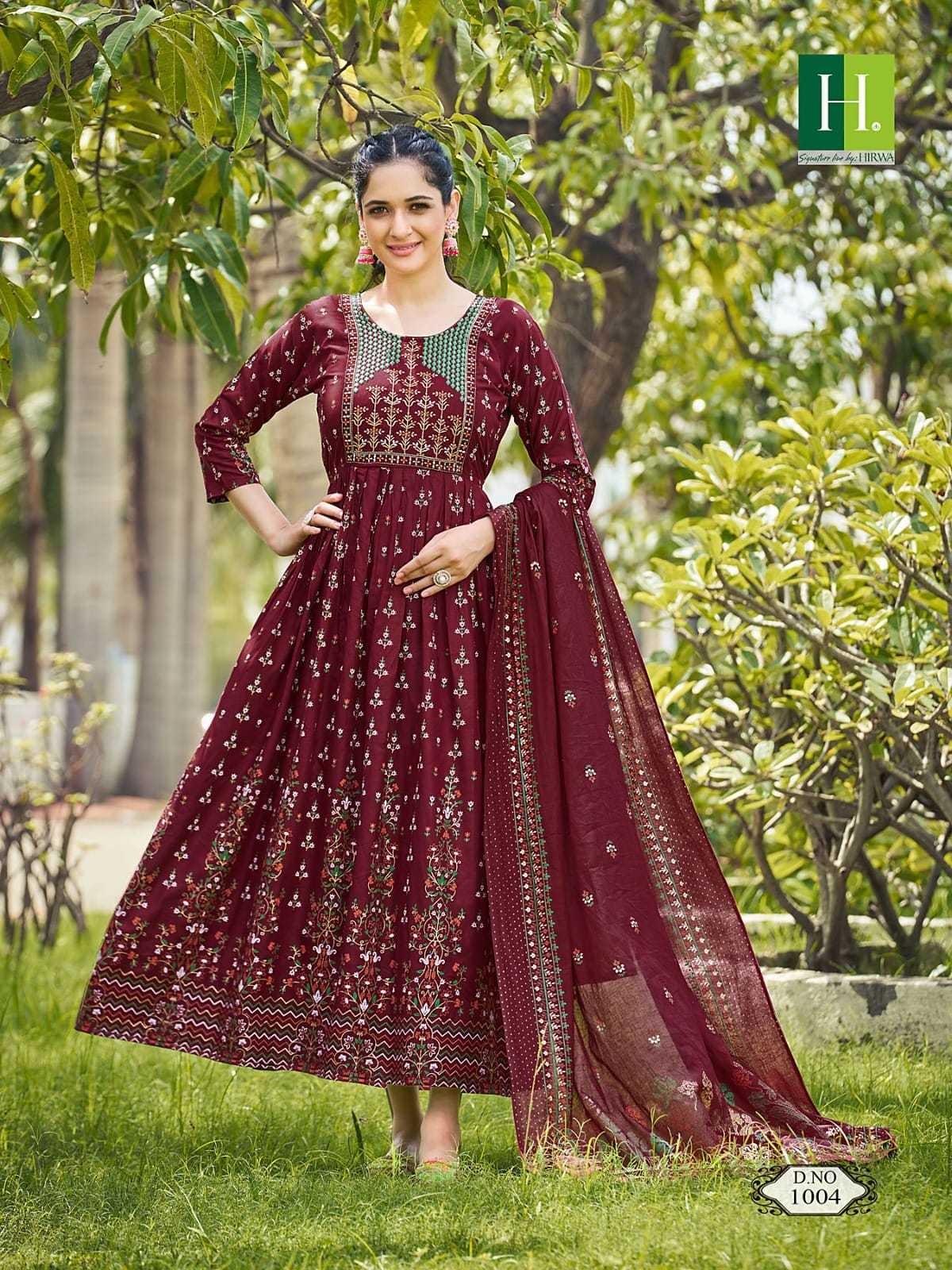 H DOT by HIRWA is launching its new long gown catalog with dupatta Kumari Fabric :- Heavy Rayon Foil Prints Concept :- Floor Length Ghera with Neck Embroidery & Dupatta Dupatta:- Cotton Mul Box Print Length: 50+ 8 Designs SIZES :- L, XXL, 4XL, 5XL Rate: 840/- |