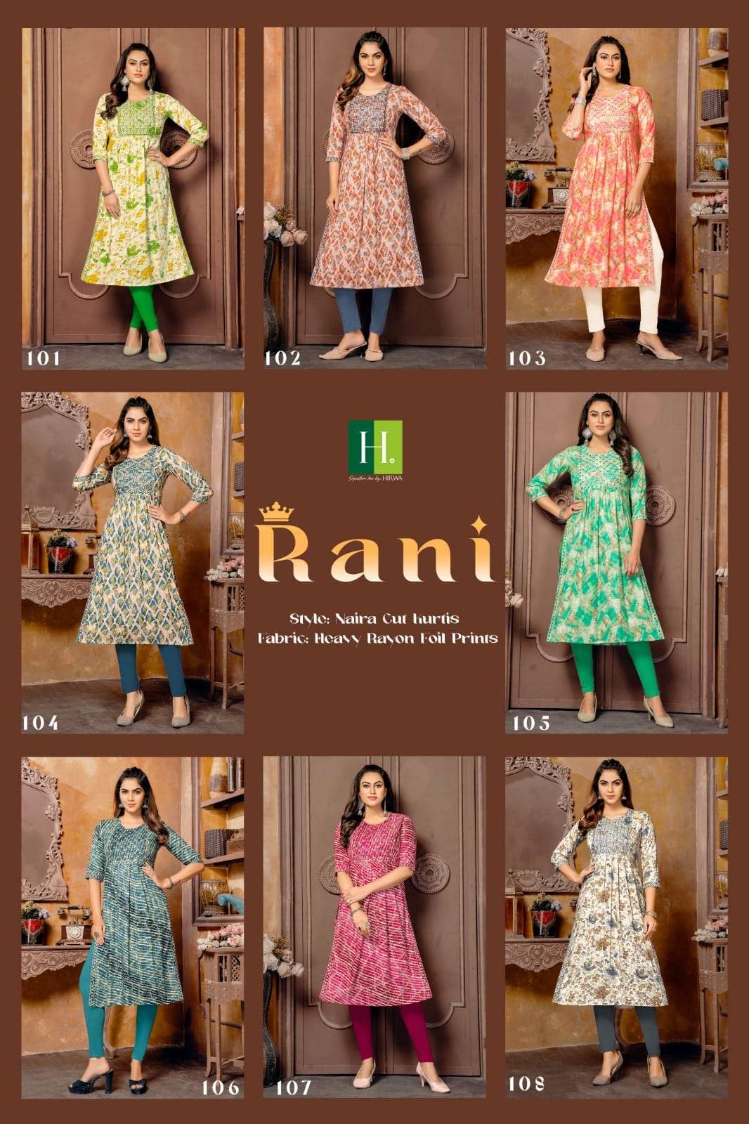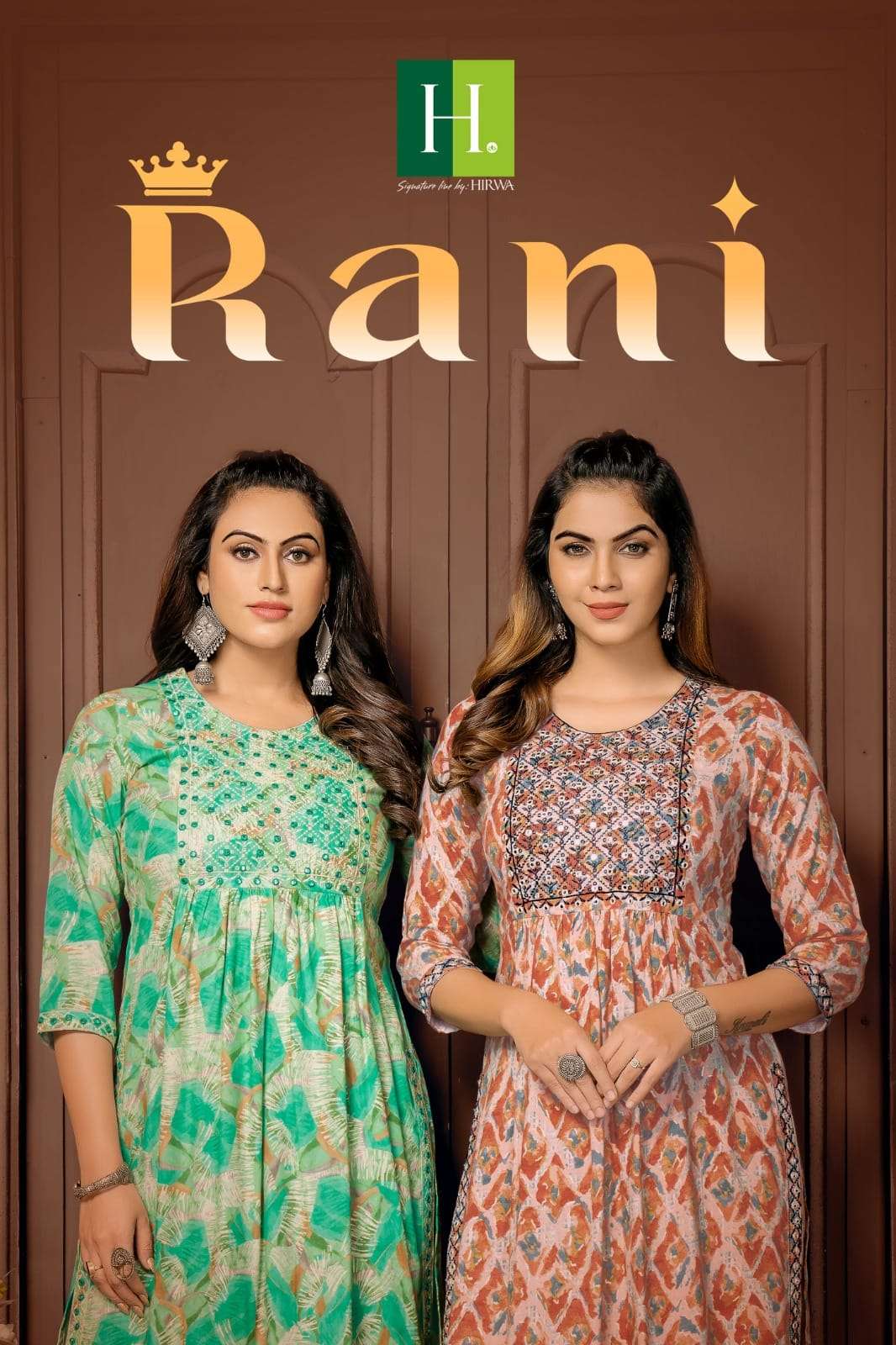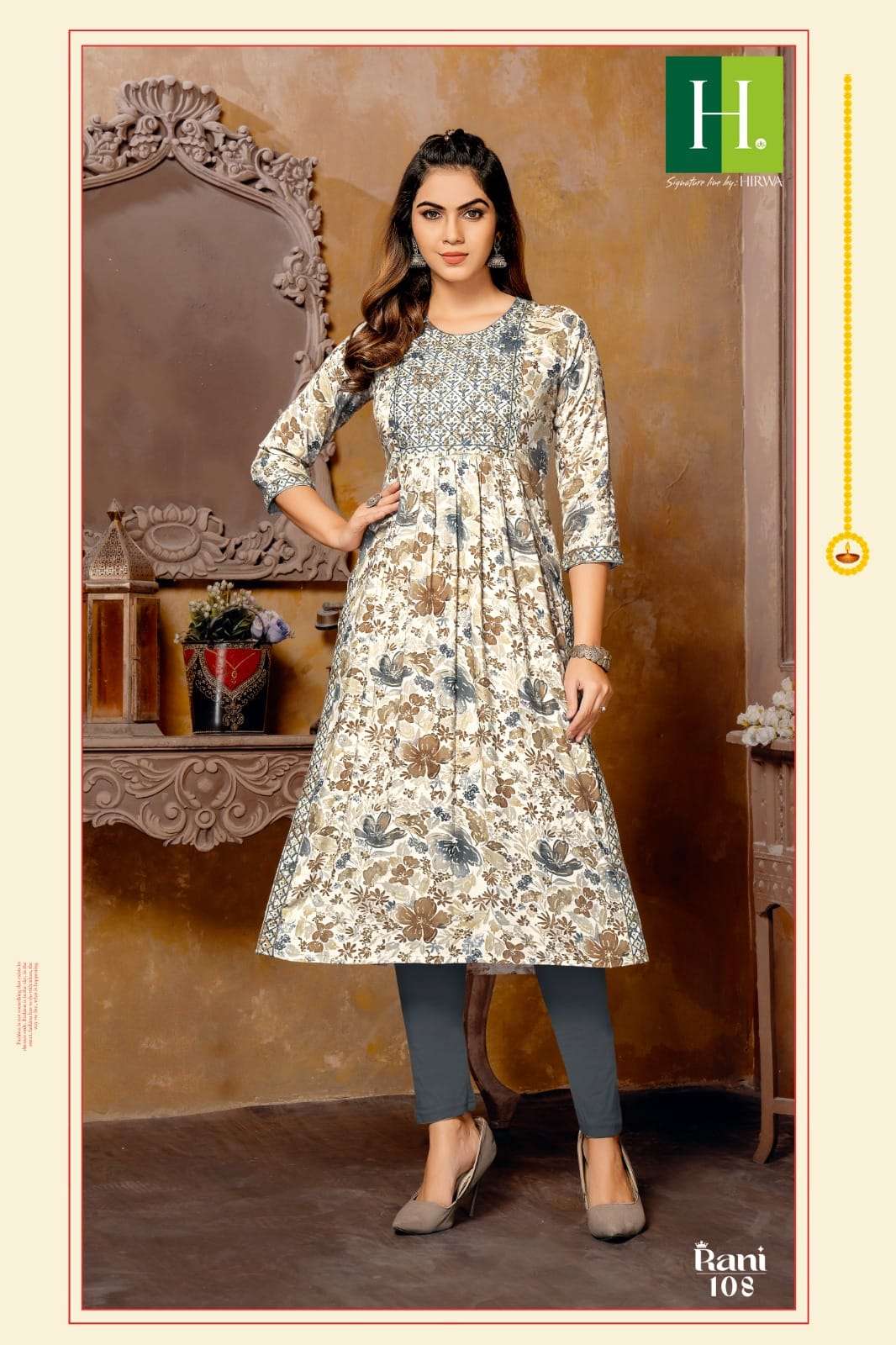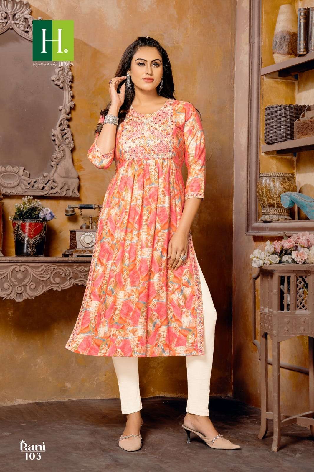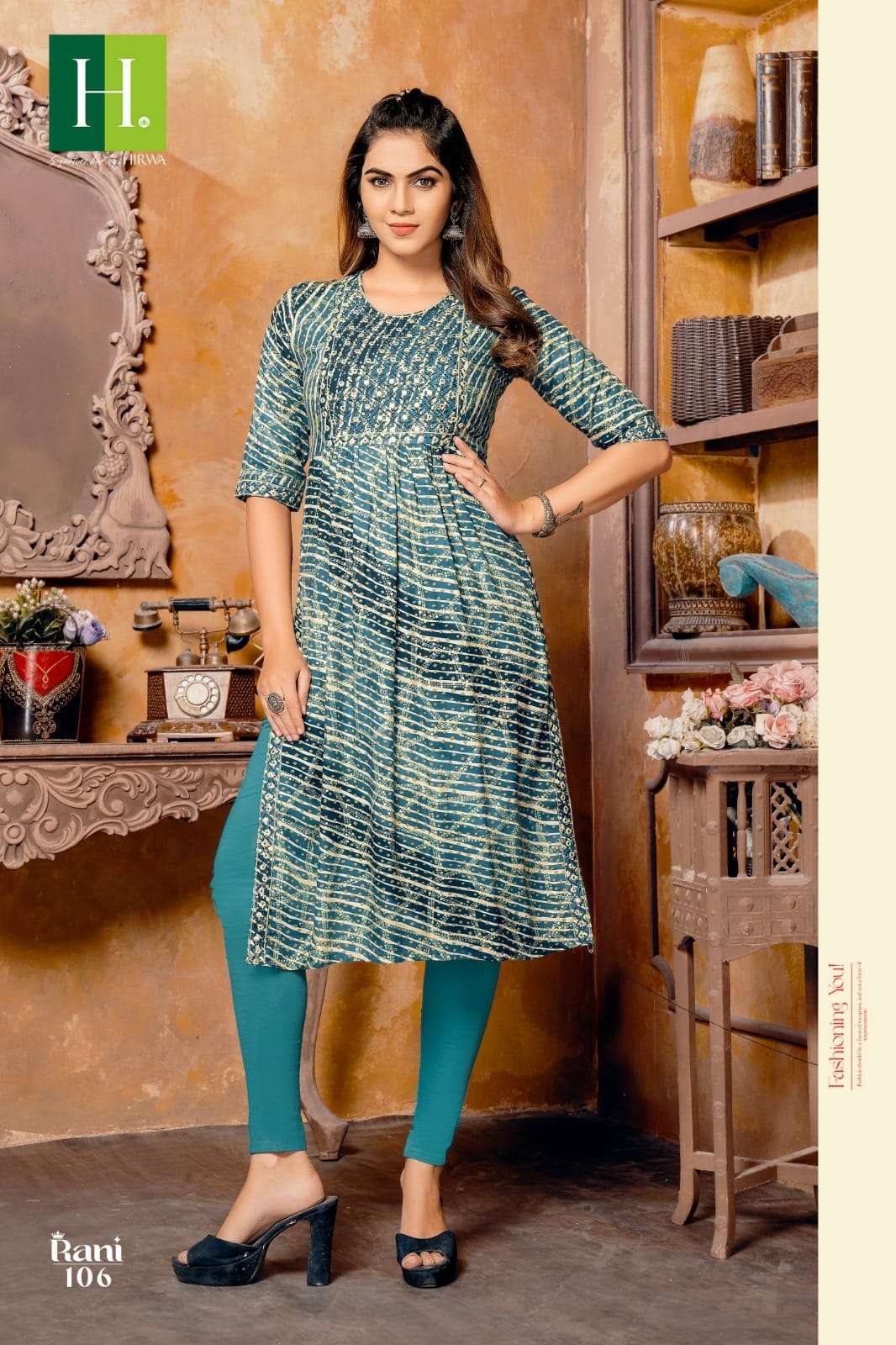 hirwa present rani rayon nayra cut fancy stitch kurtis supplier