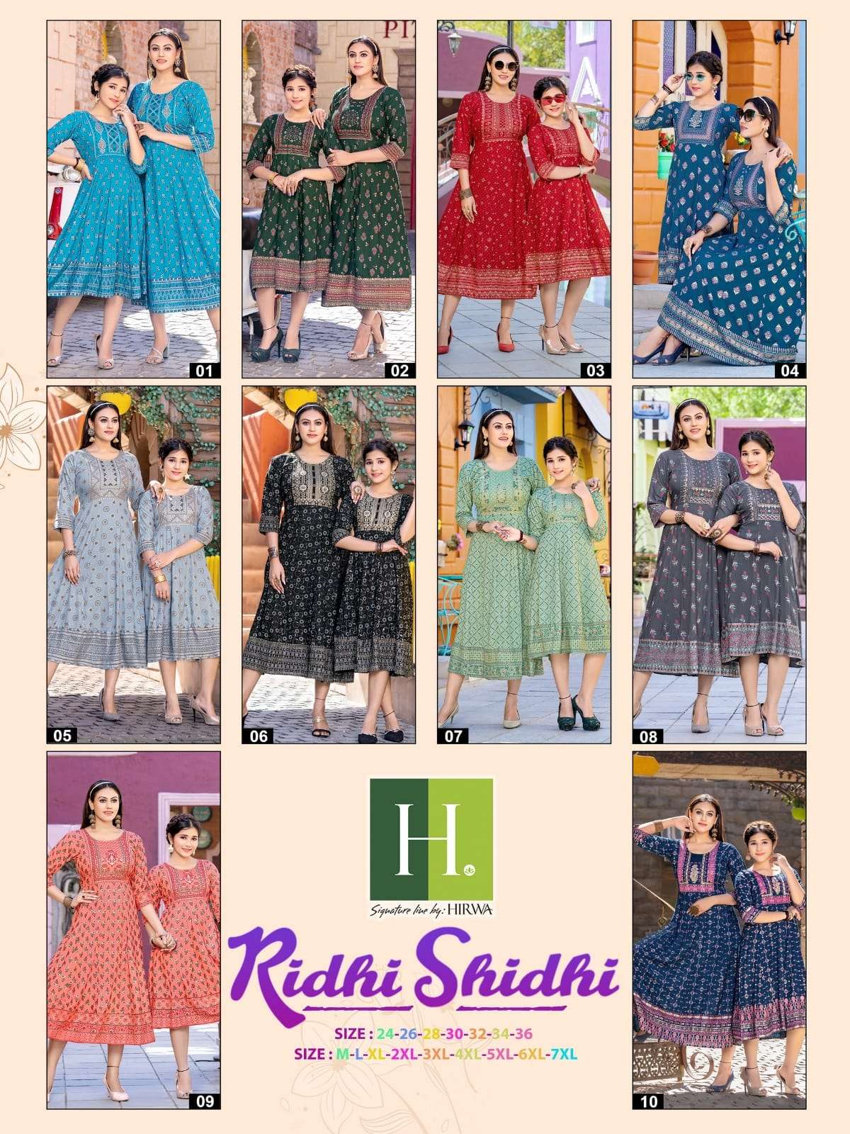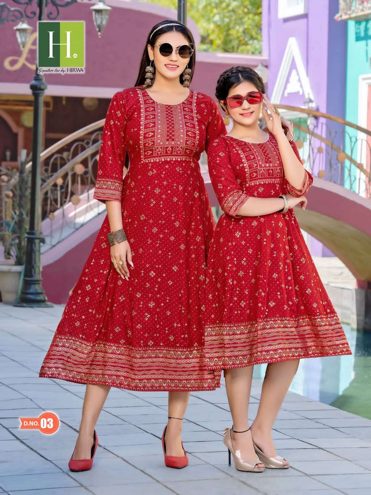 hirwa present ridhi shidhi fancy festive wear mother & daughter combo set anarkali kurtis