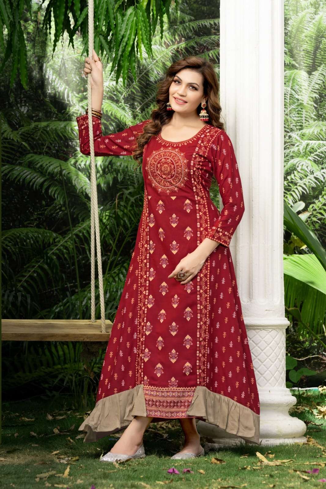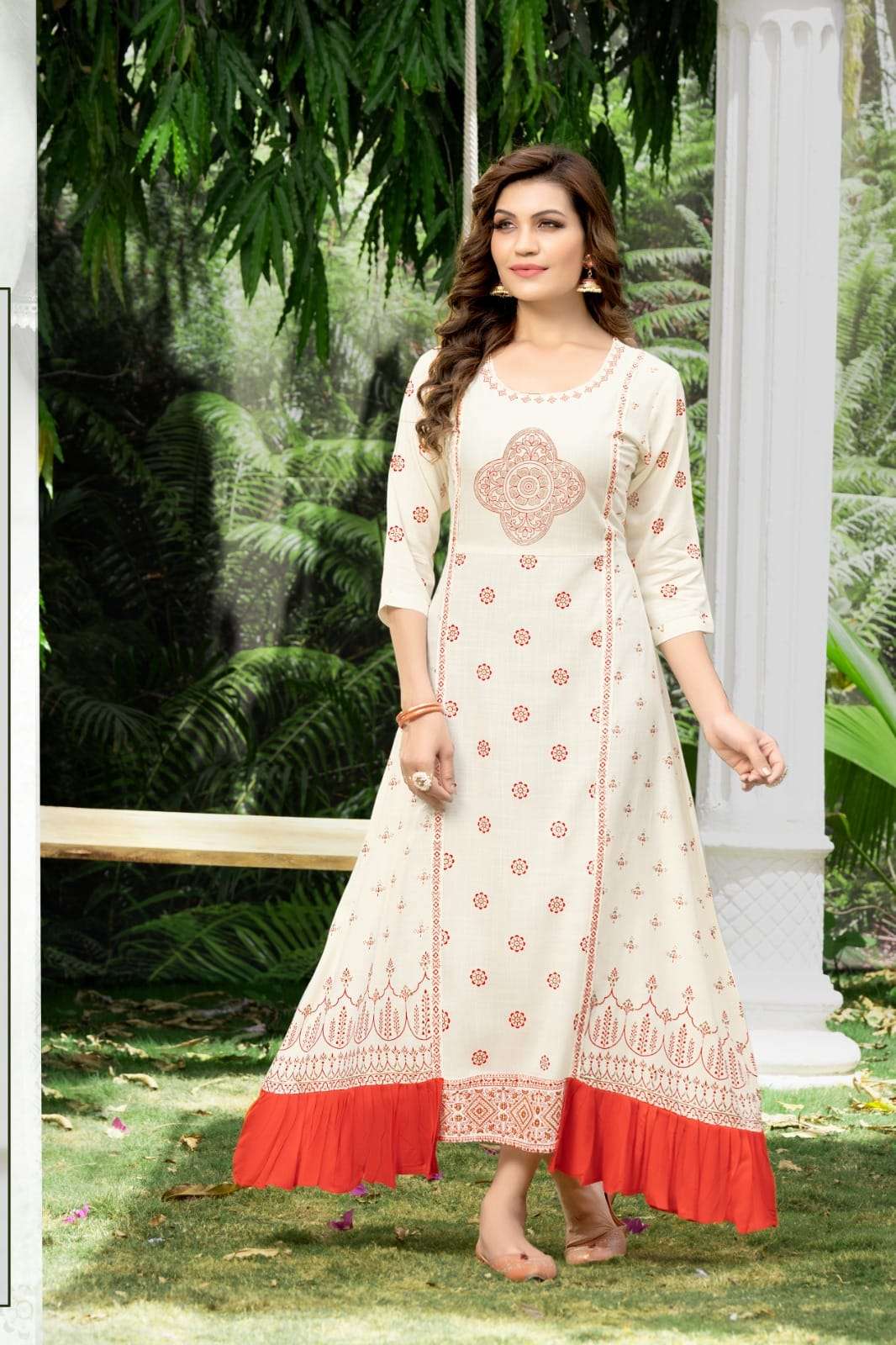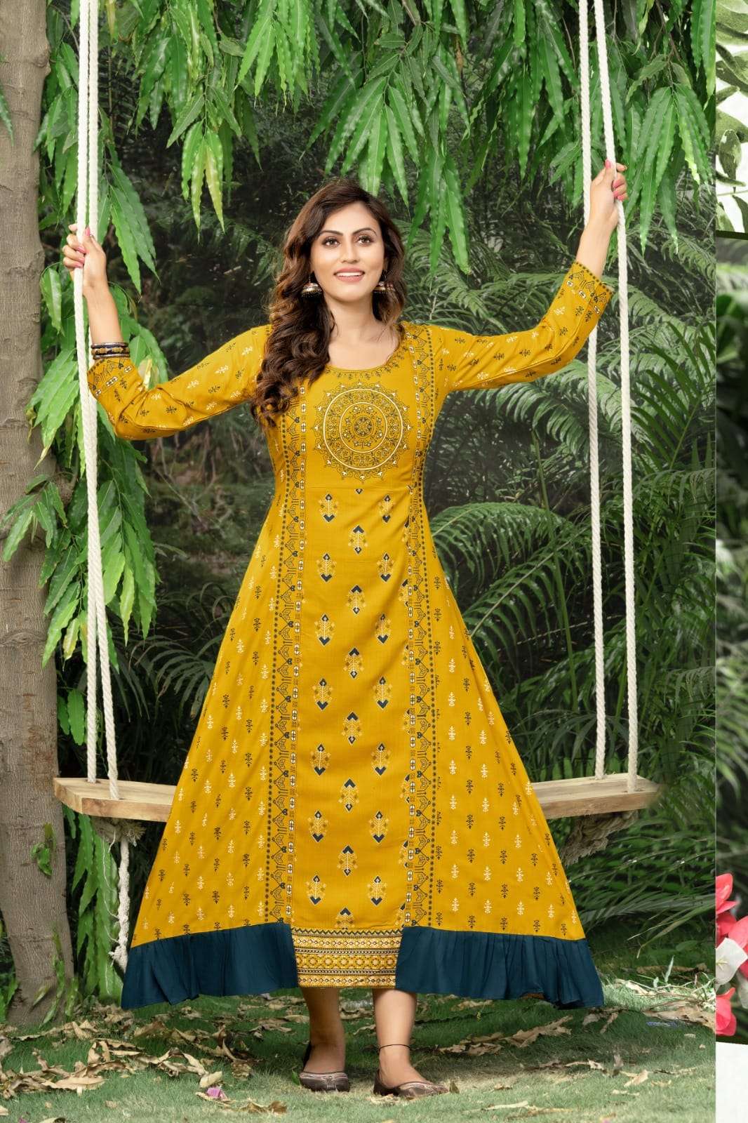 H.DOT by HIRWA presents its latest long kurti Catalog 📒Name: SANJANA ✨ Concept: Printed Shrug Style Kurtis 👗 Fabric: Heavy Rayon Slub Prints 👗LENGTH: 50" ✨DESIGNS: 6 SIZES: S, M, L, XL, XXL & 3XL RATE: 599/- |