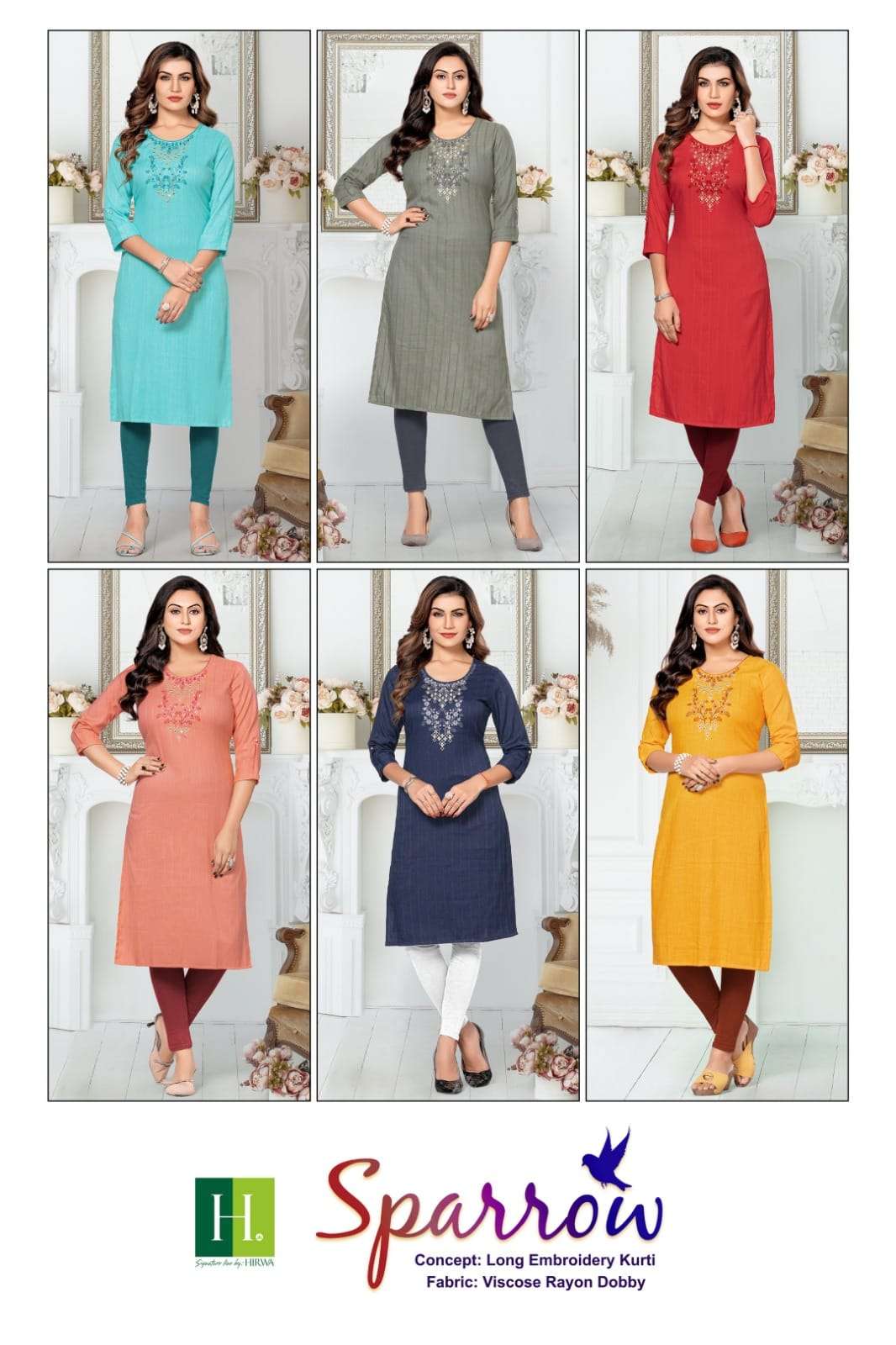 H DOT by HIRWA presents its latest catalog 📒NAME: SPARROW 👗Top Bombay Rayon Dobby ✅CONCEPT: Long Straight Kurti with Embroidery ✨ LENGTH: 44"+ ✨ DESIGNS: 6 ✨ SIZES: L, XL, XXL Rate: 380/- per pcs |