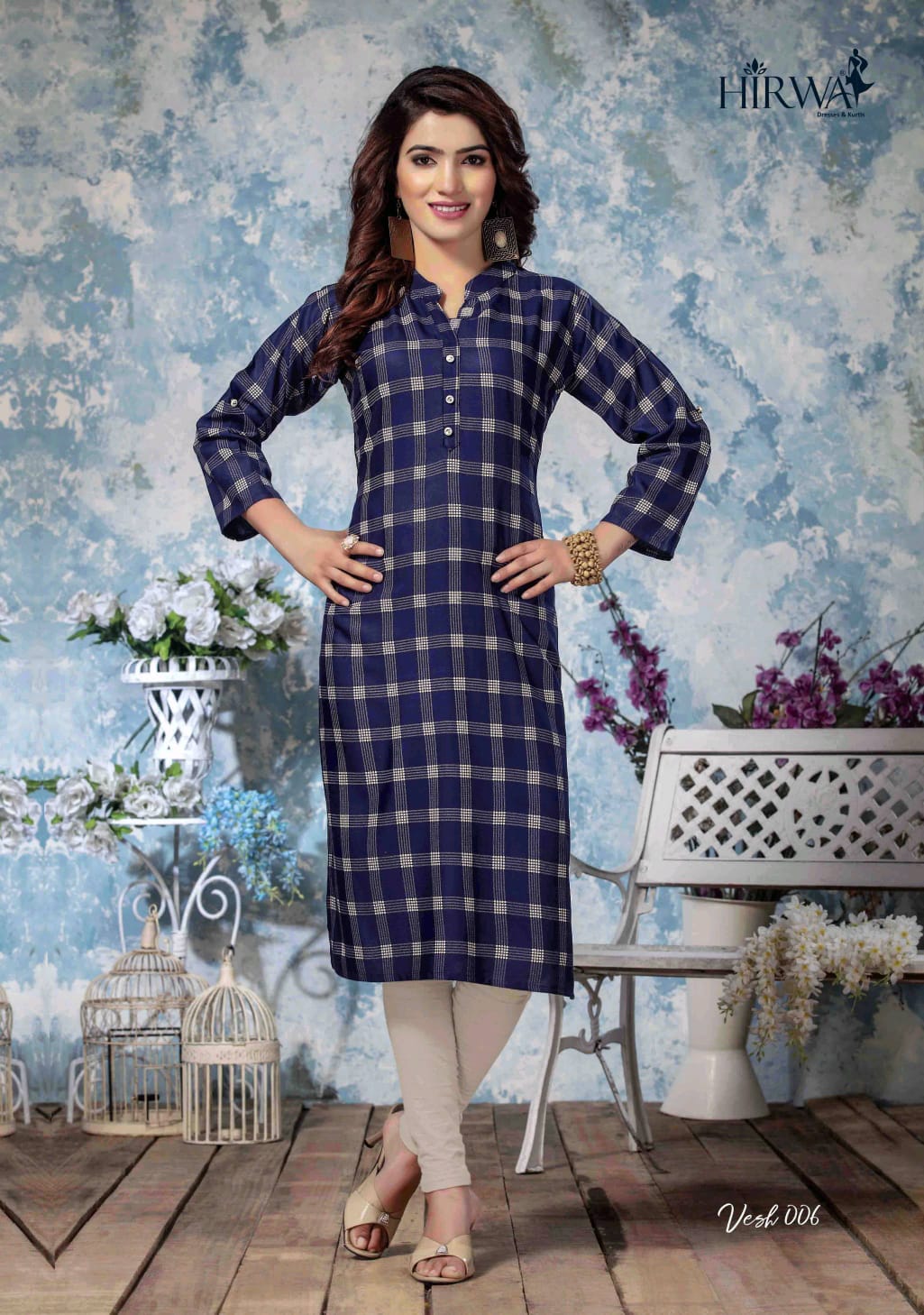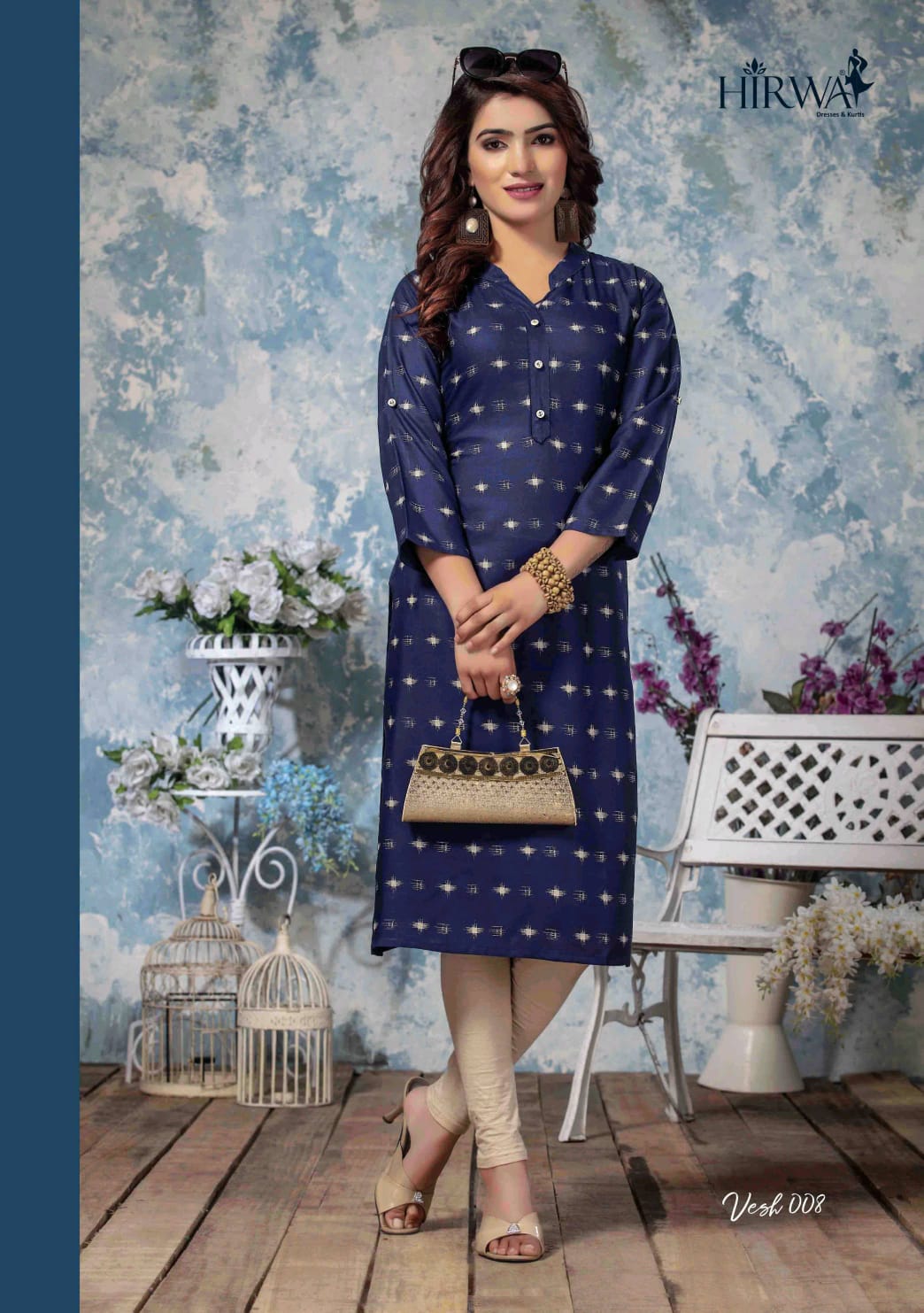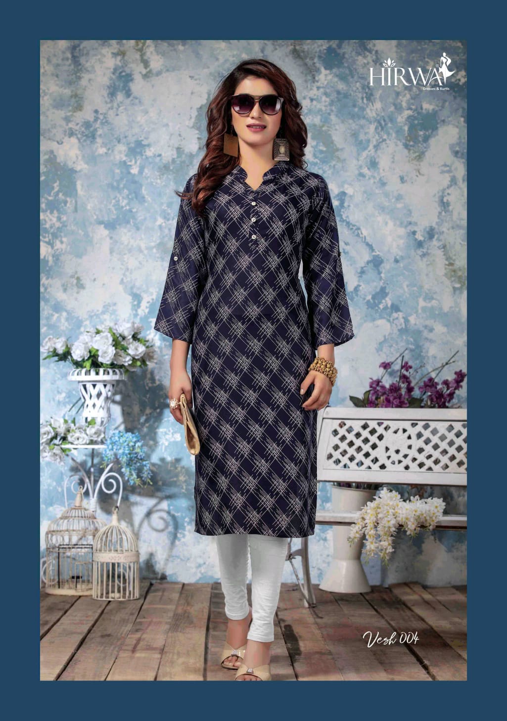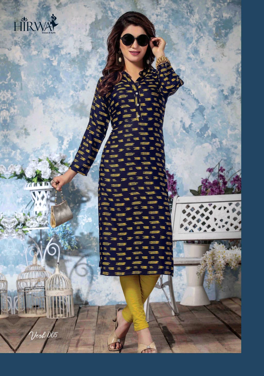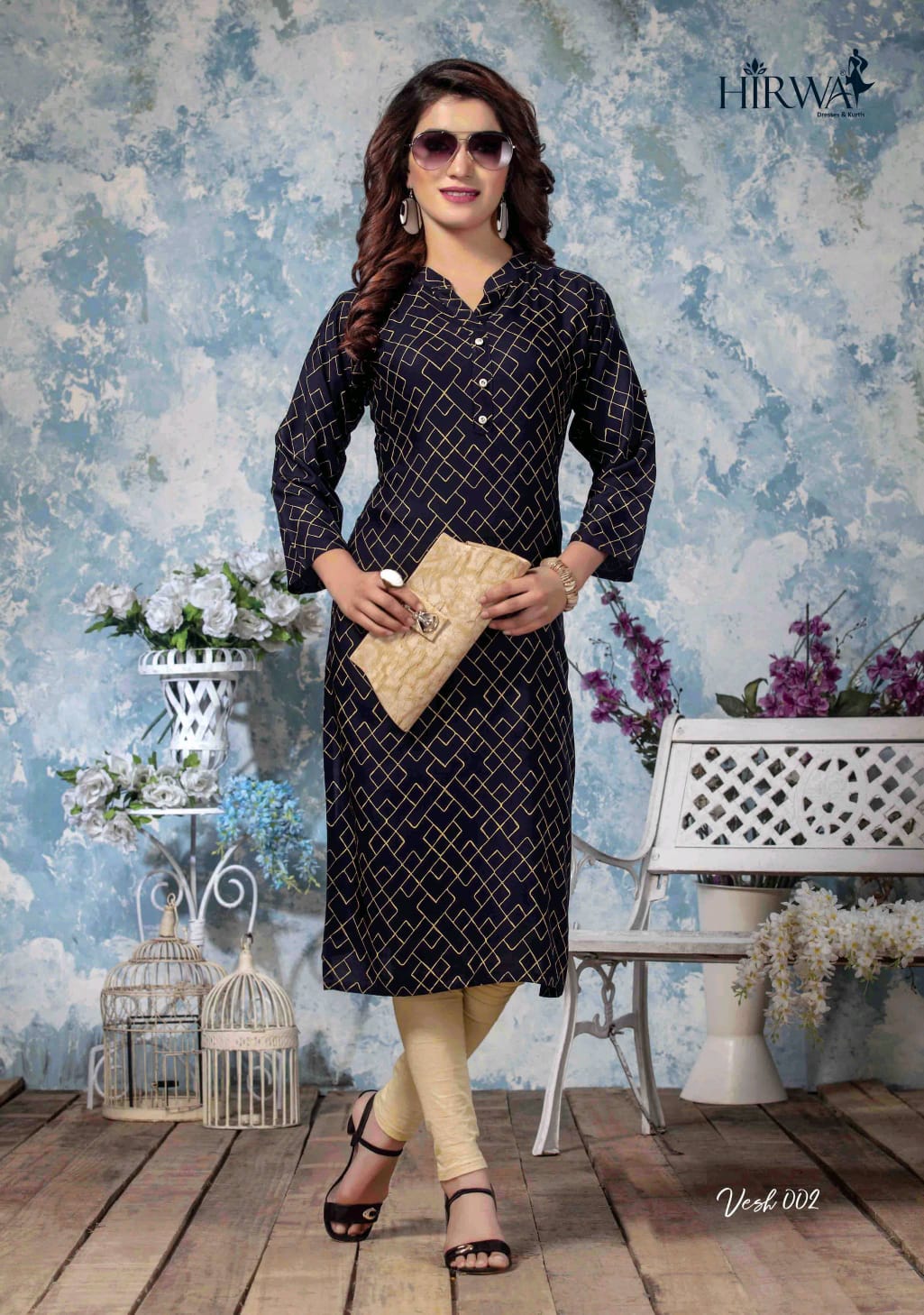 Hirwa Presents Vesh Vol 15 Rayon Print Blue And Black Special Kurti Collections