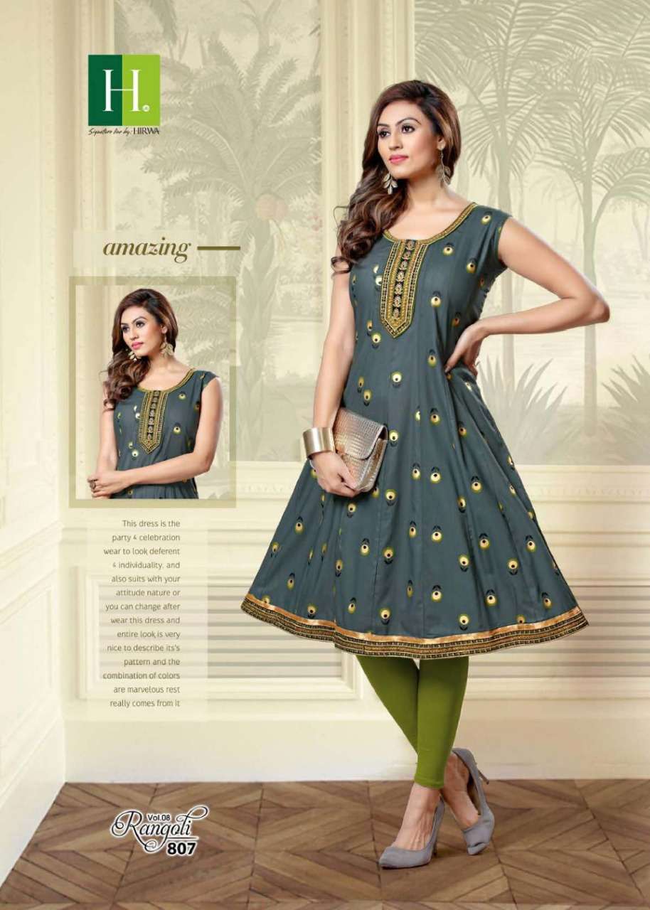 Hirwa Rangoli Vol 8 Rayon Anarkali Designer Kurtis