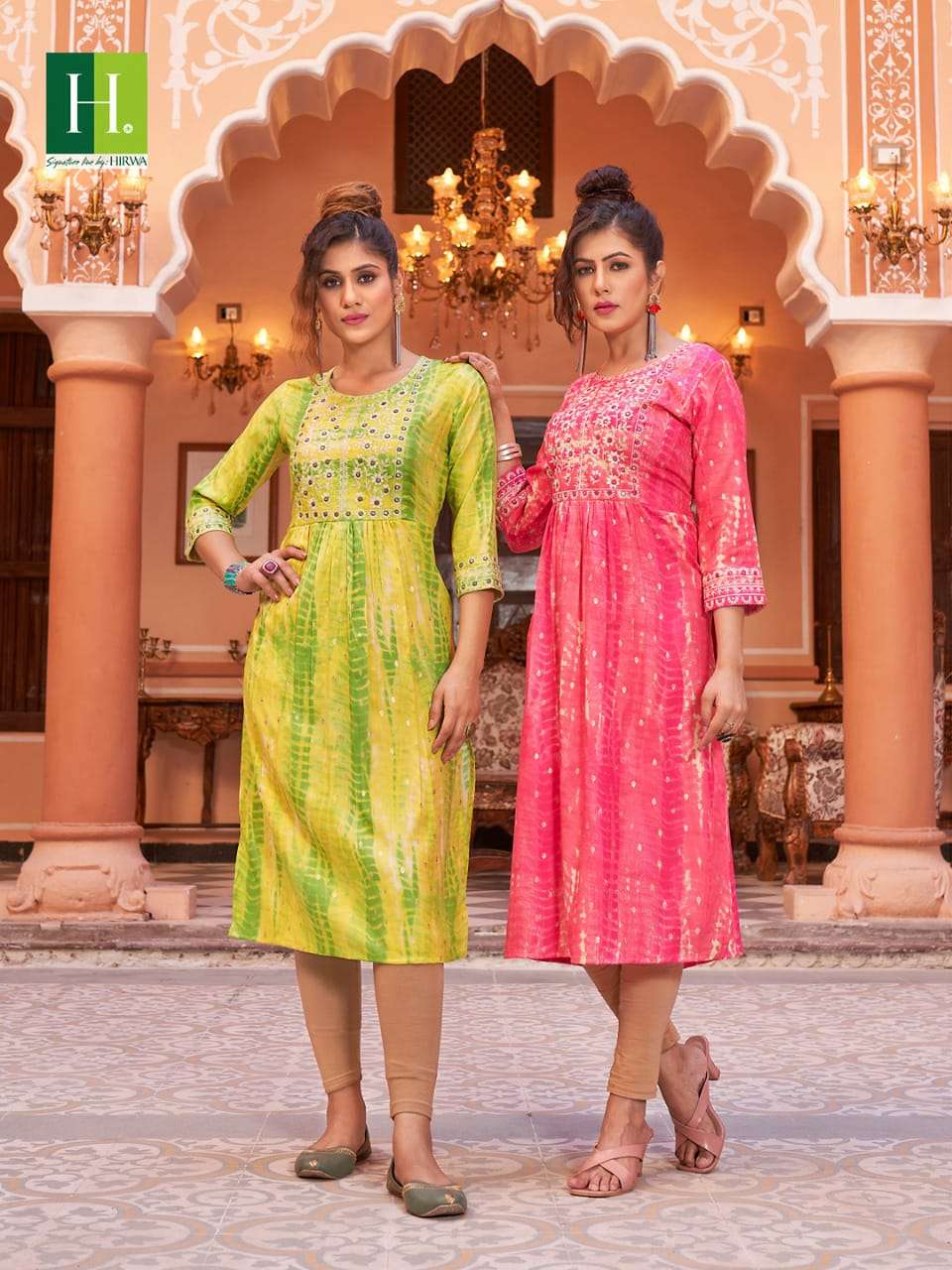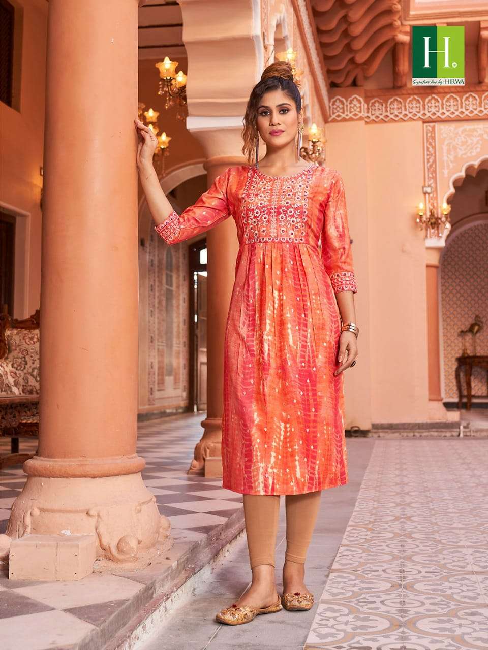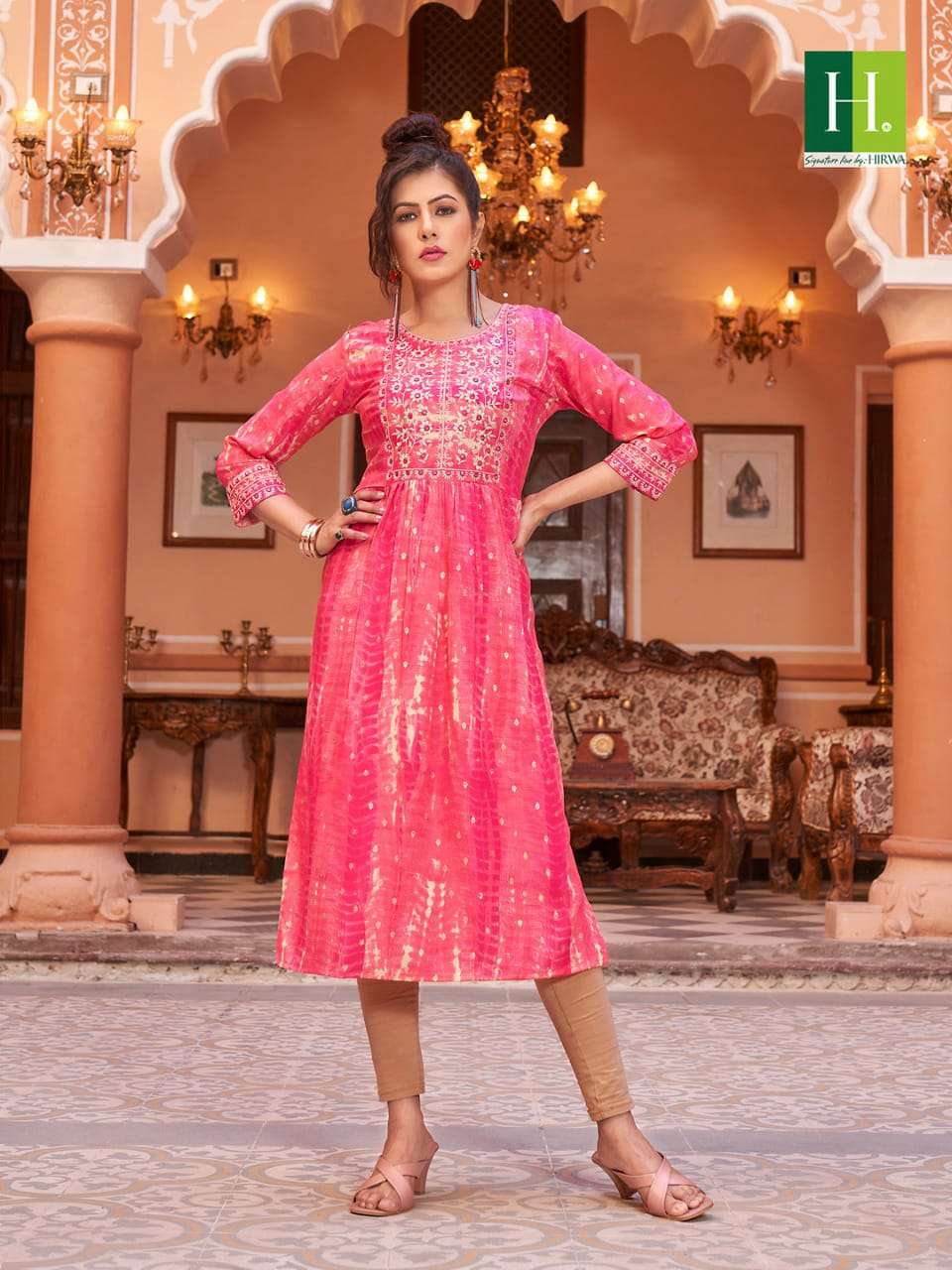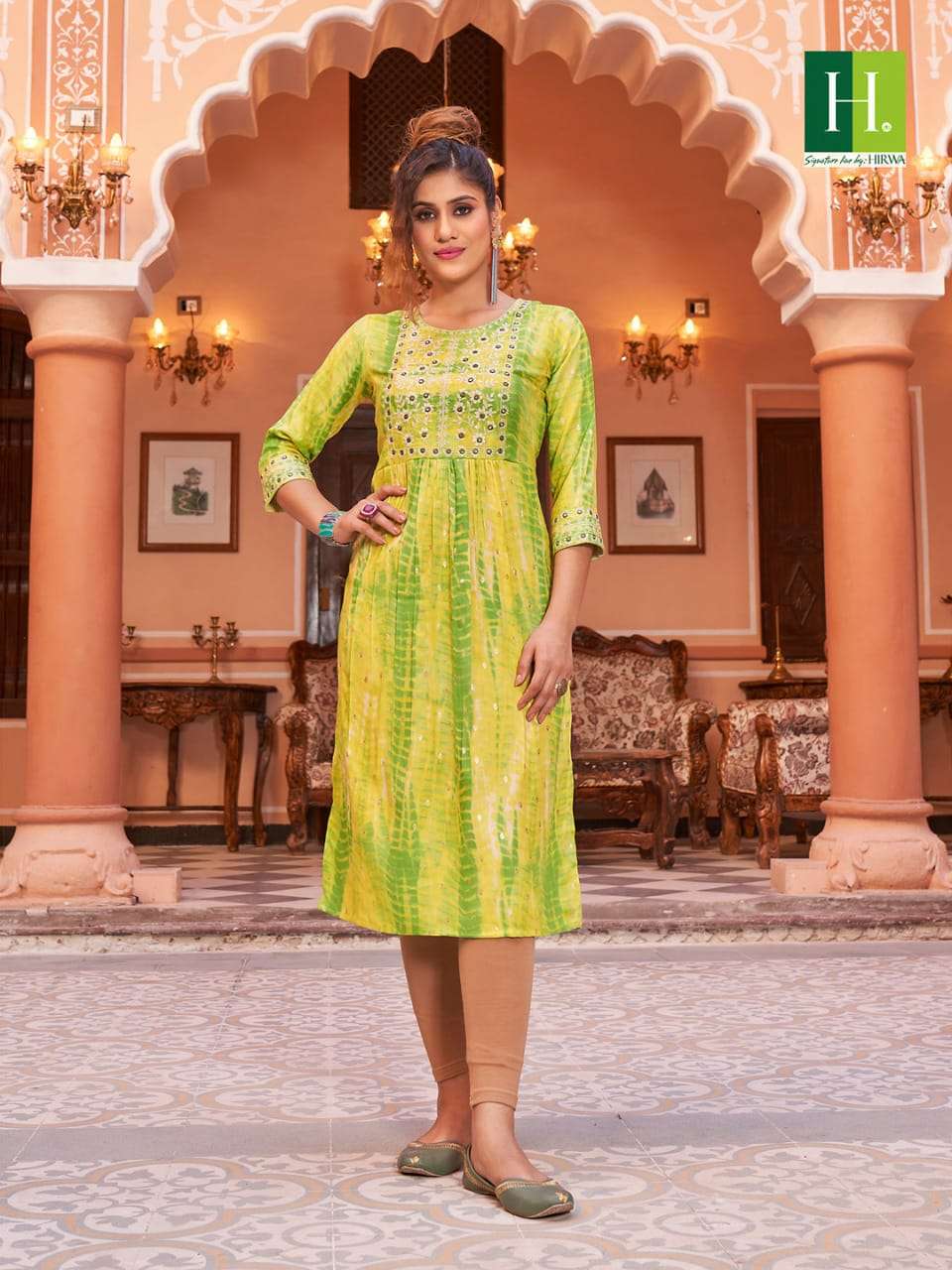 hirwa shibori Naira Cut Festive wear Kurtis with Embroidery Work