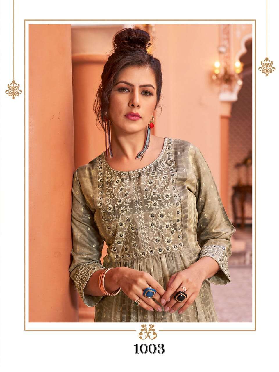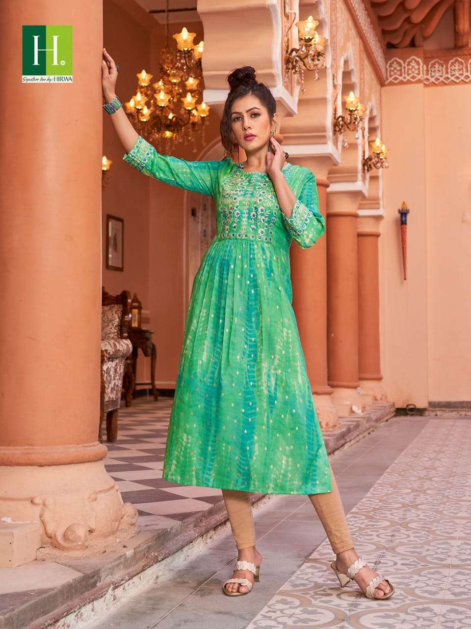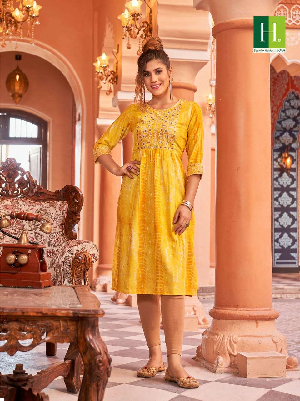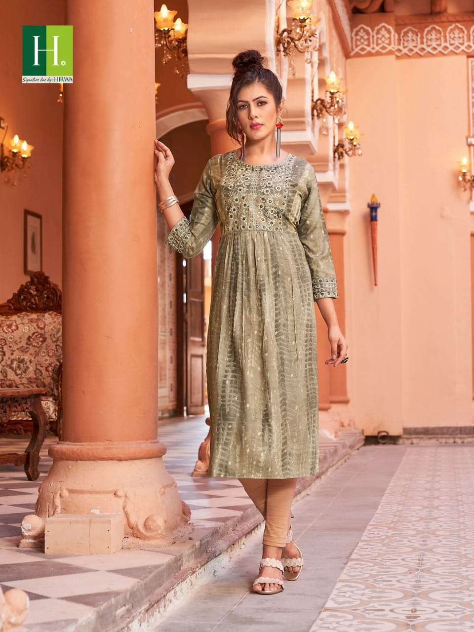 hirwa shibori Naira Cut Festive wear Kurtis with Embroidery Work