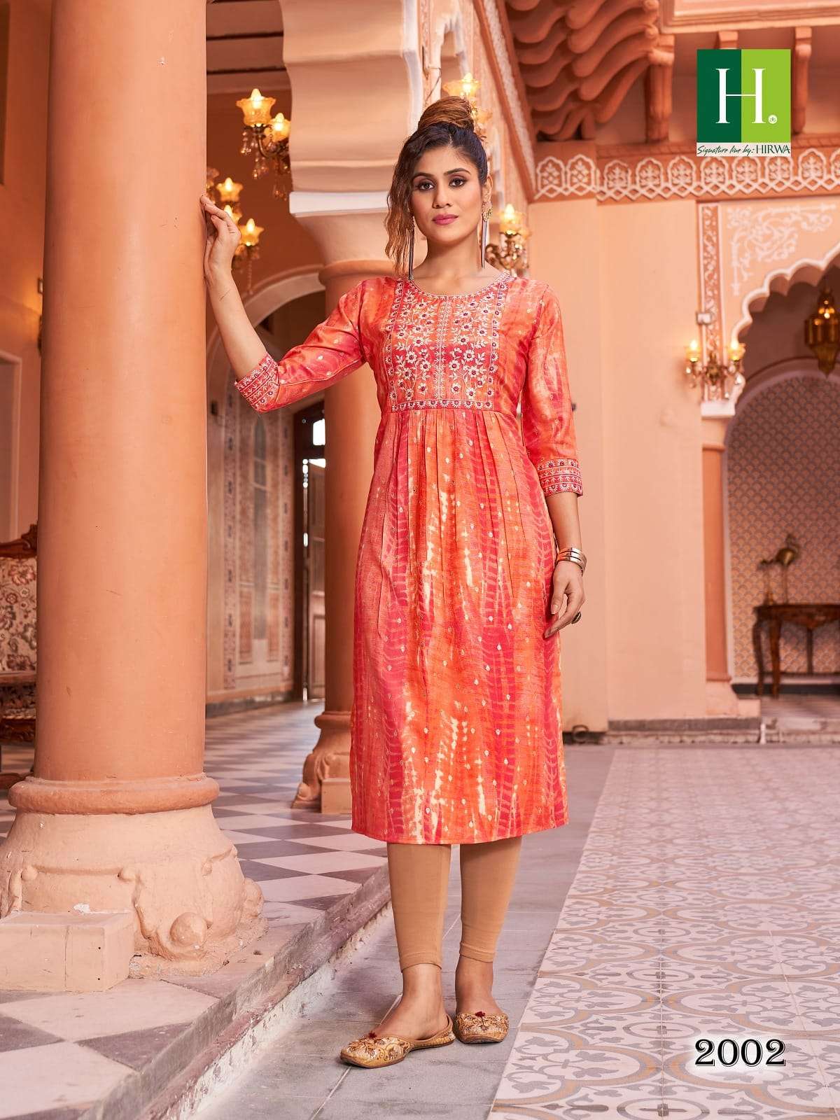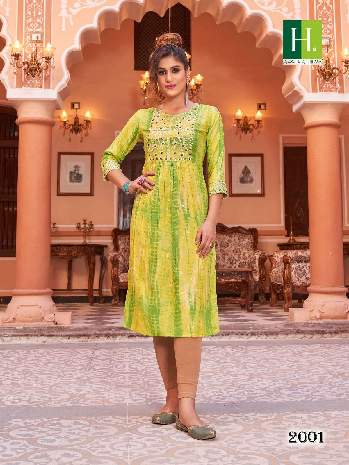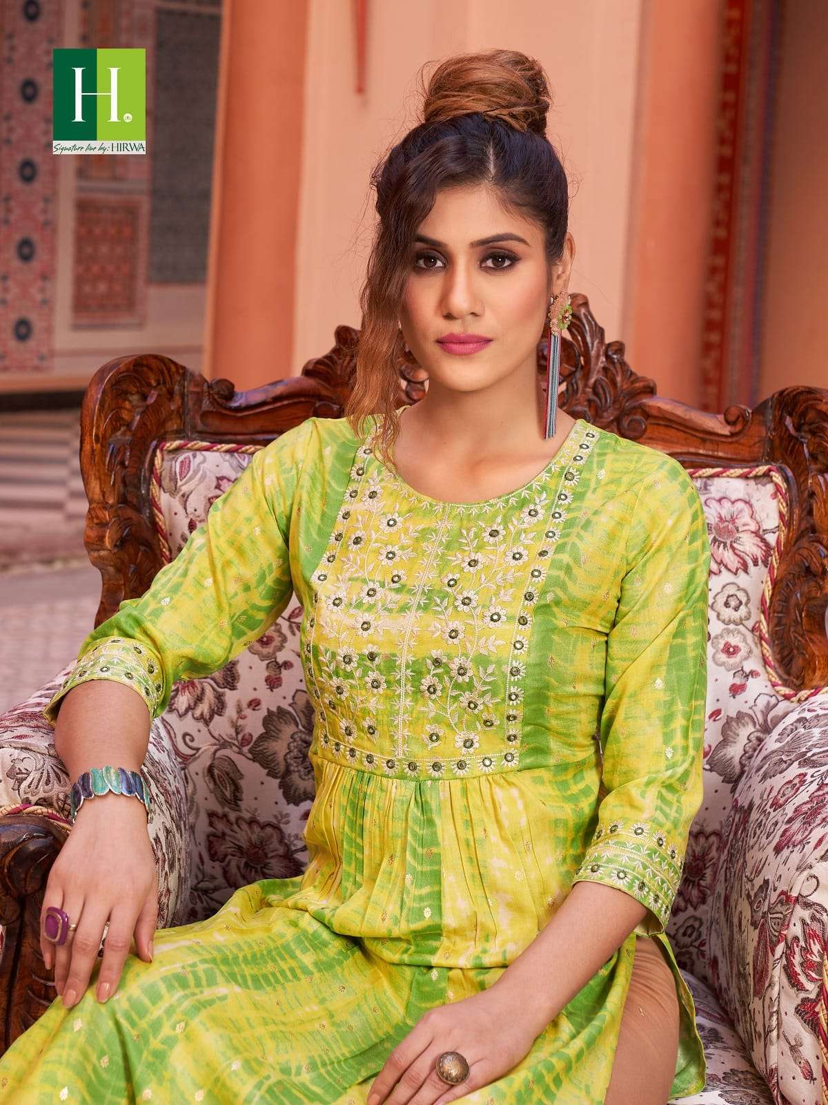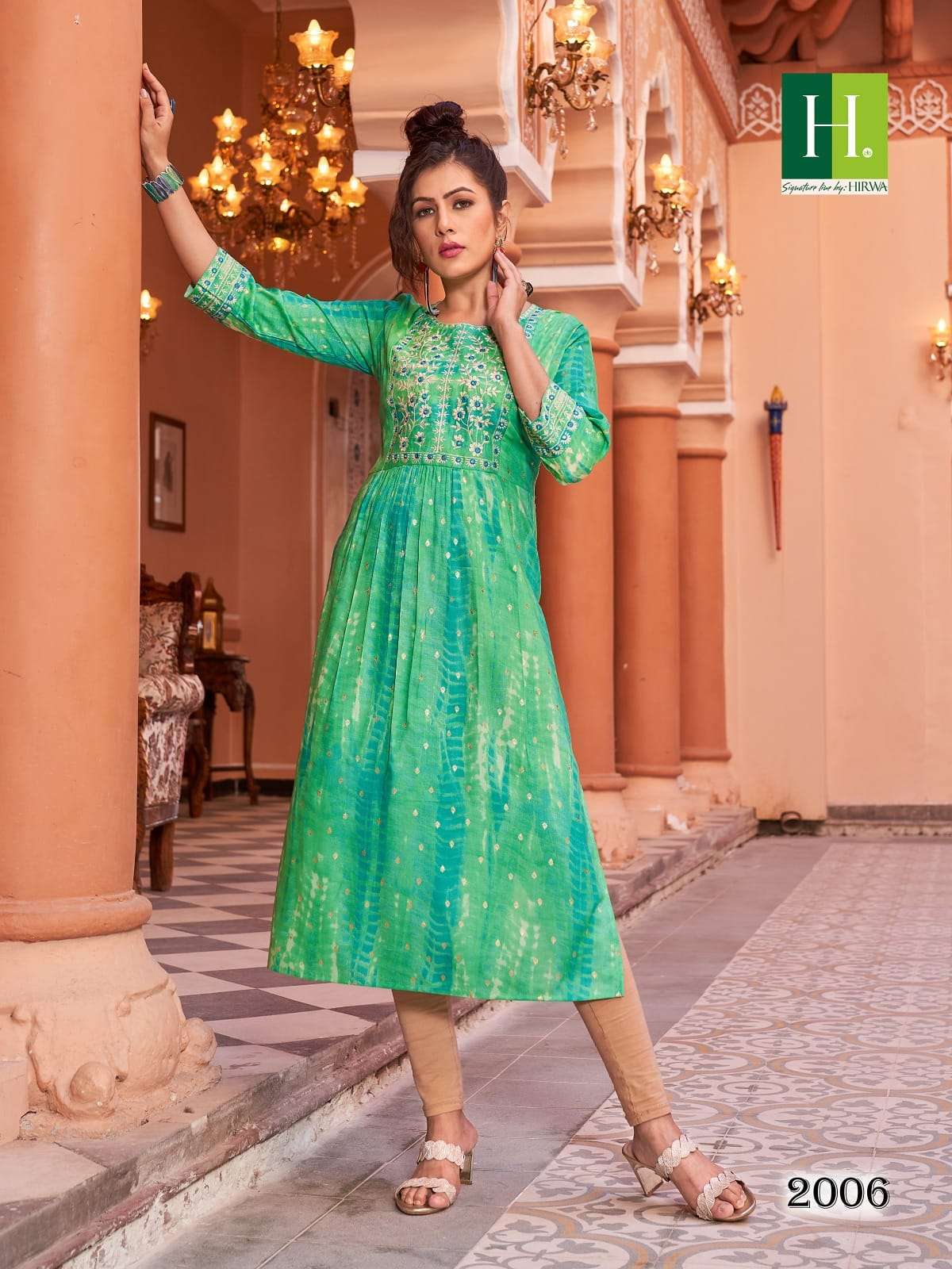 hirwa shibori vol 2 readymade rayon nayra cut fancy festive wear kurti