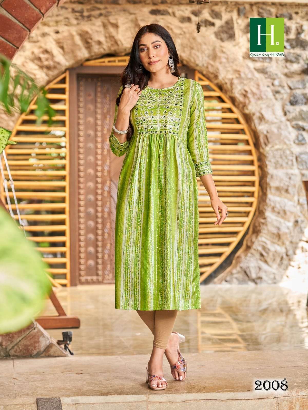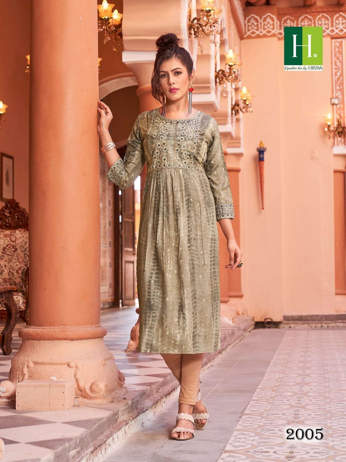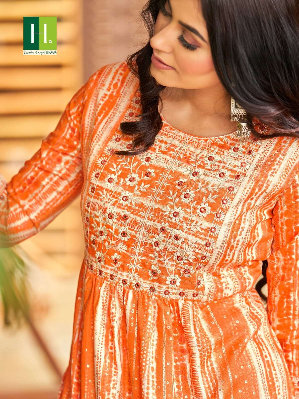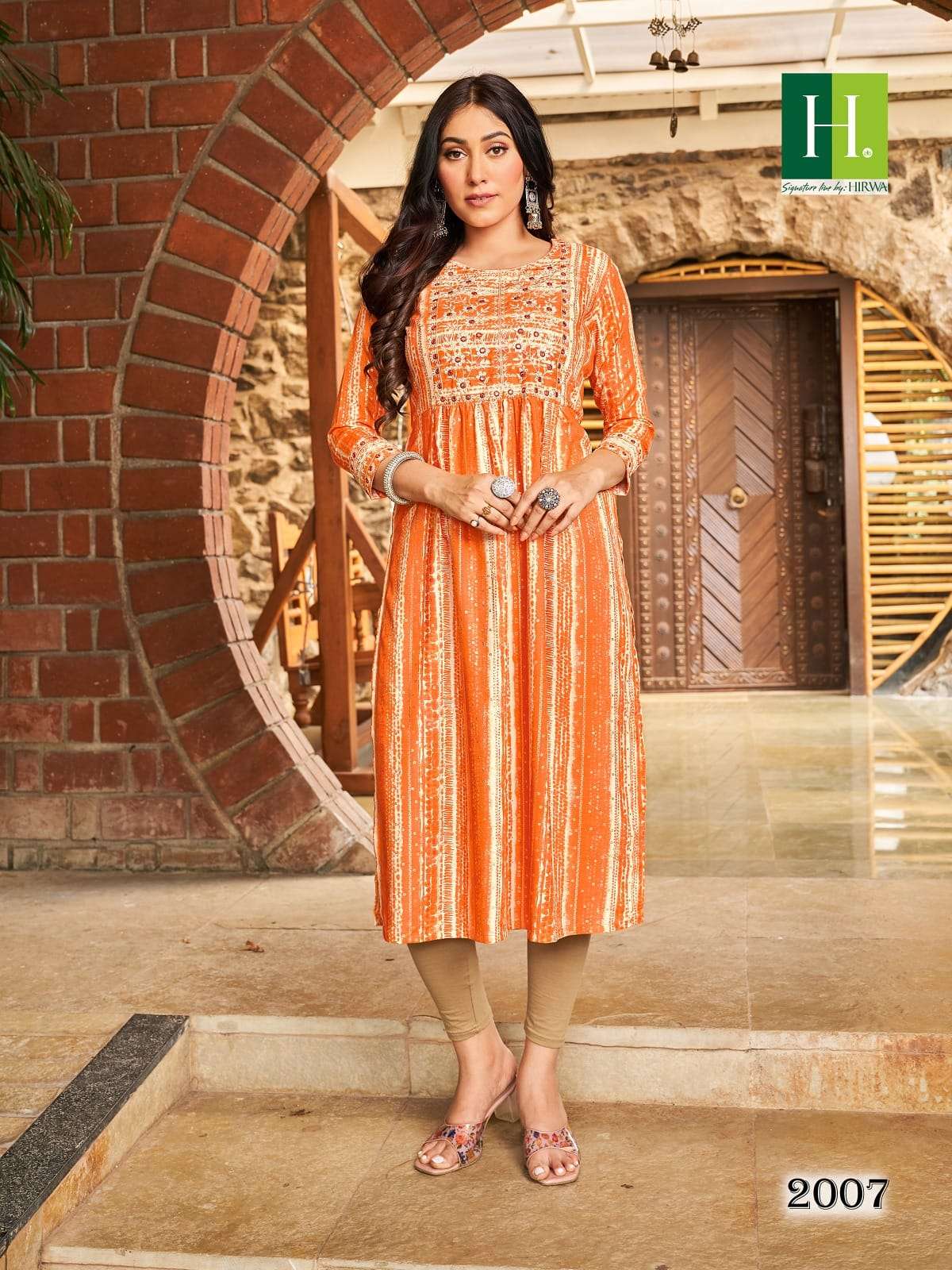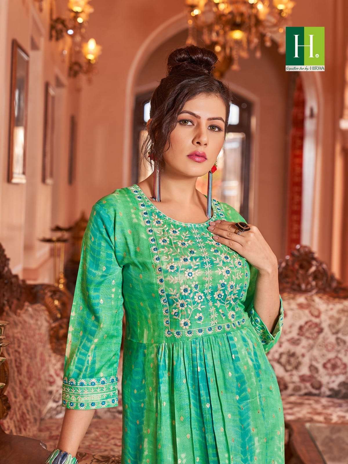 hirwa shibori vol 2 readymade rayon nayra cut fancy festive wear kurti
