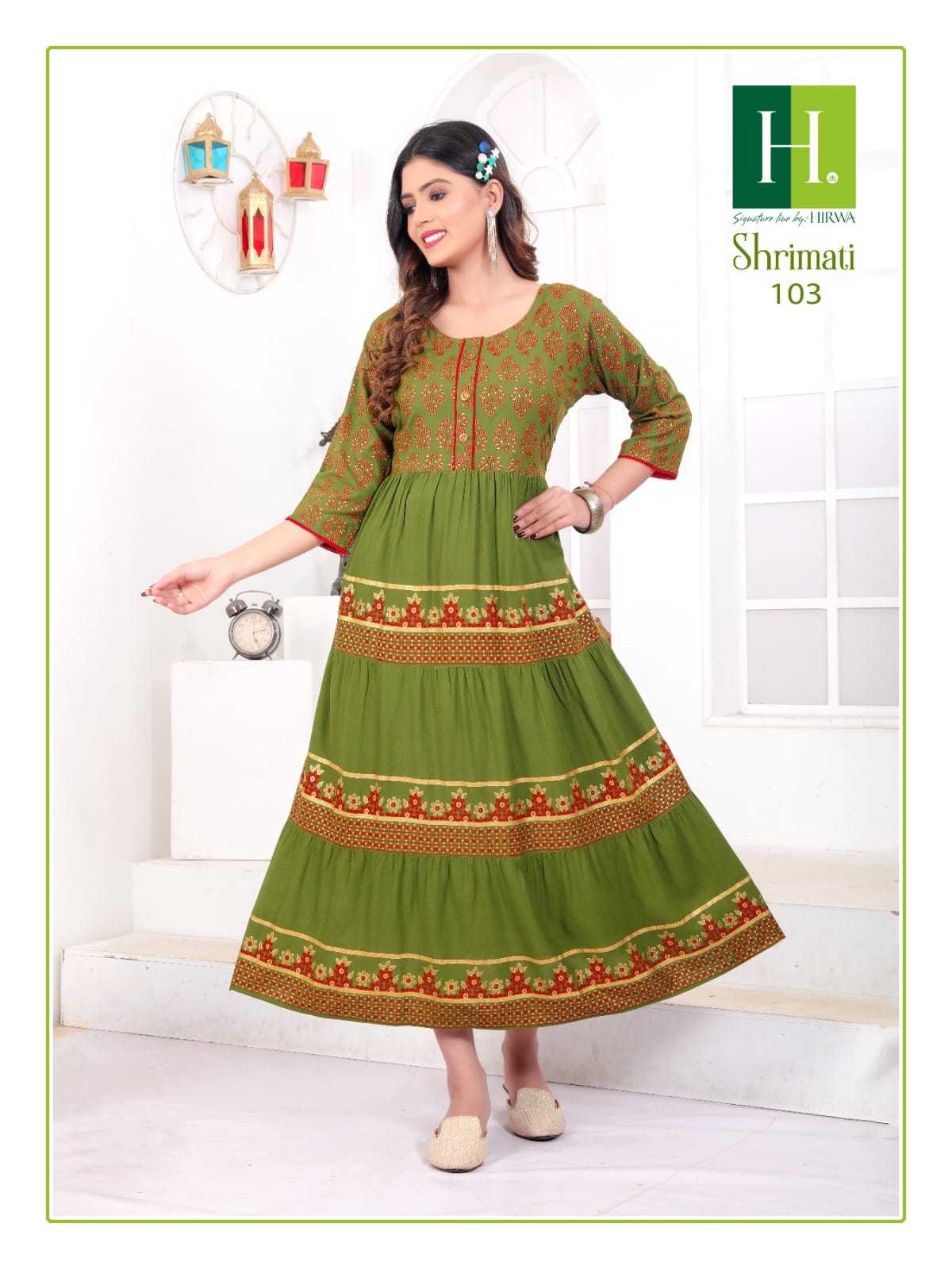 hirwa shrimati vol 2 stitched rayon ghera lon kurtis