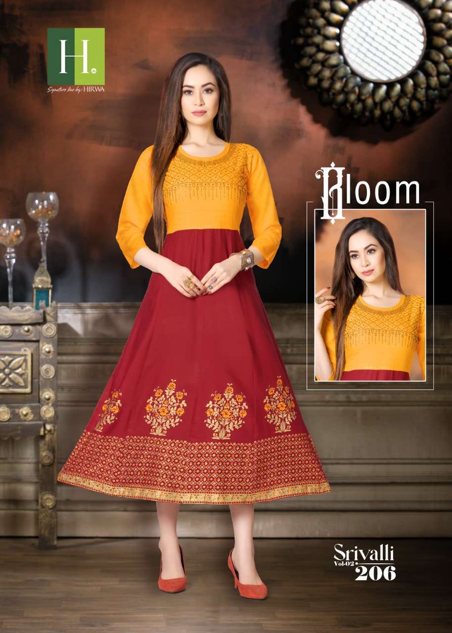 H.DOT FROM HIRWA PRESENTS its latest ANARKALI Catalog (interlock on every kali) 📒NAME: SRIVALLI (vol.2) 👗 Fabric: Heavy Rayon ✅CONCEPT: ANARKALI with Siroski Work 👗LENGTH: 50" ⚜️DESIGNs: 8 SIZES: L, XL & XXL RATE: 599/- |