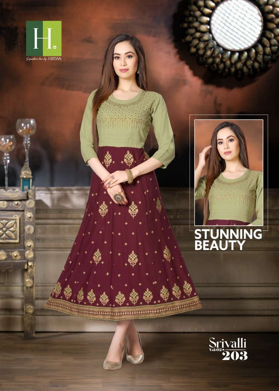 hirwa srivalli vol 2 anarkali with siroski kurti designs