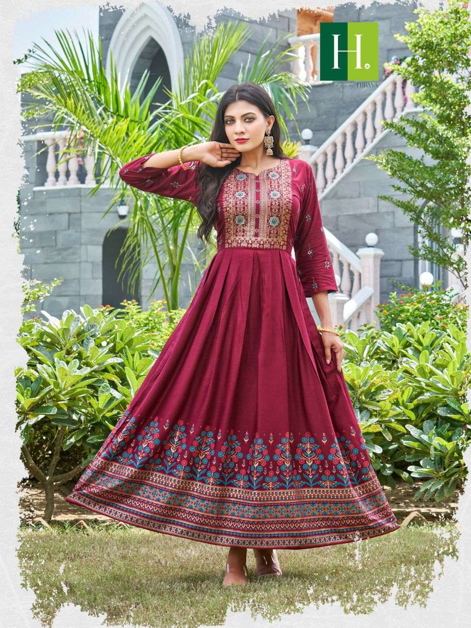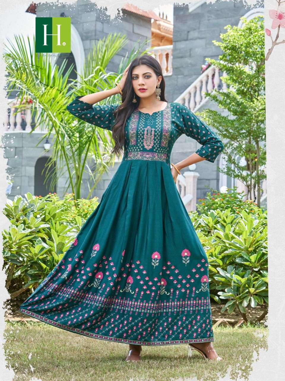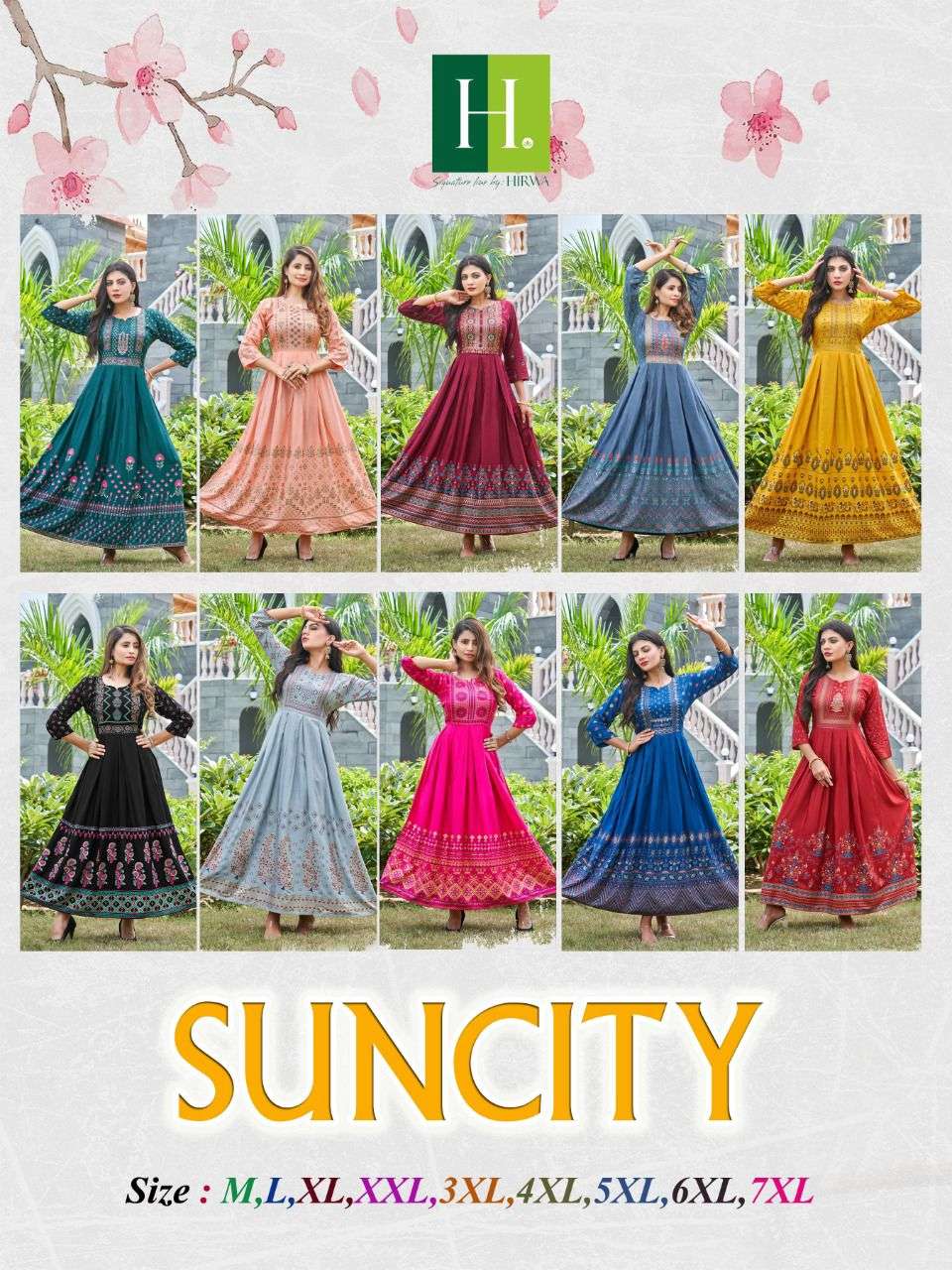 hirwa suncity rayon anarkali long 52 length kurtis exports