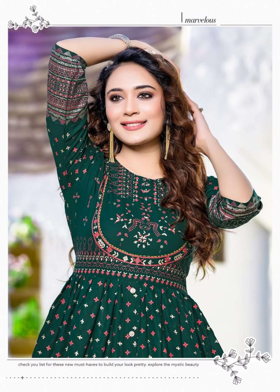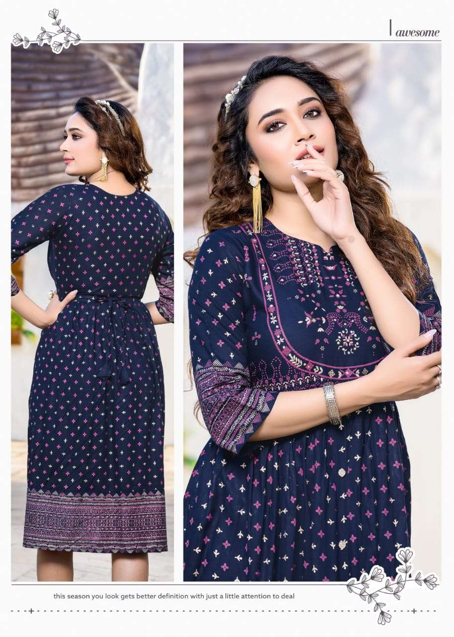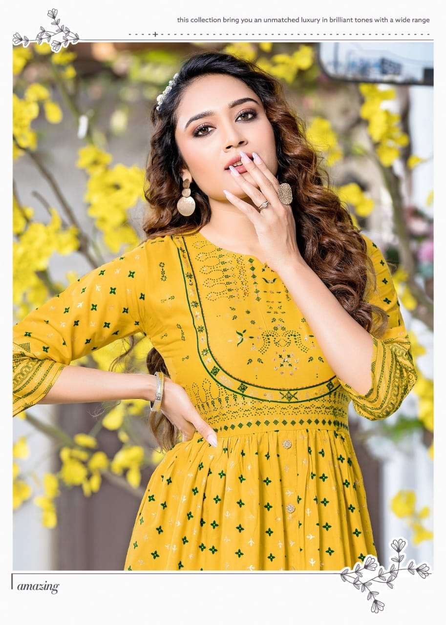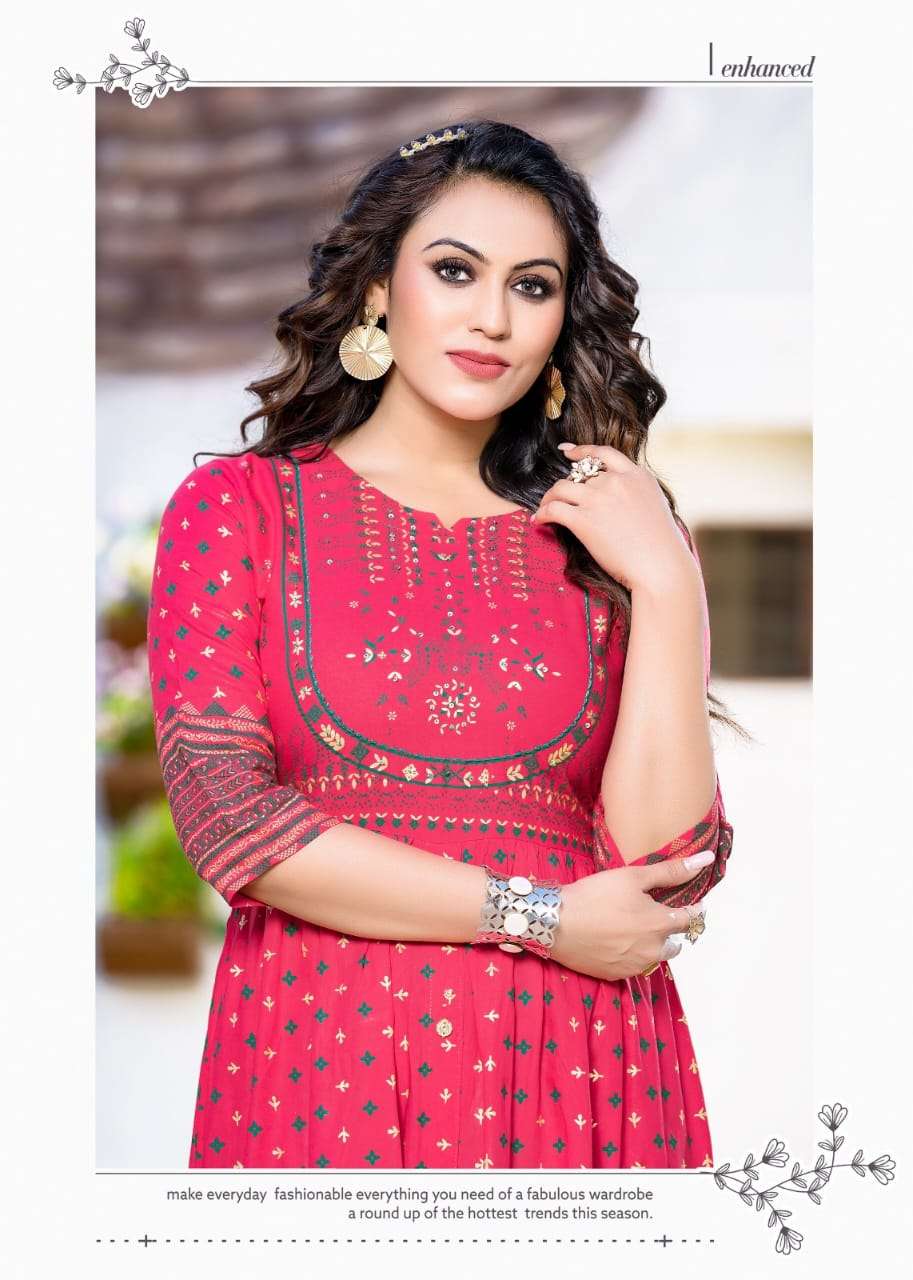 H.DOT FROM HIRWA PRESENTS its latest Catalog 📒NAME: SUNRISE 👗 Fabric: Heavy Rayon Slub Concept: Ghera Kurtis with Silai Pattern and Hand Work 👗LENGTH: 45" ⚜️DESIGNS: 6 SIZES: M, L, XL, XXL, 3XL, 4XL & 5XL Rate: 560/- |
