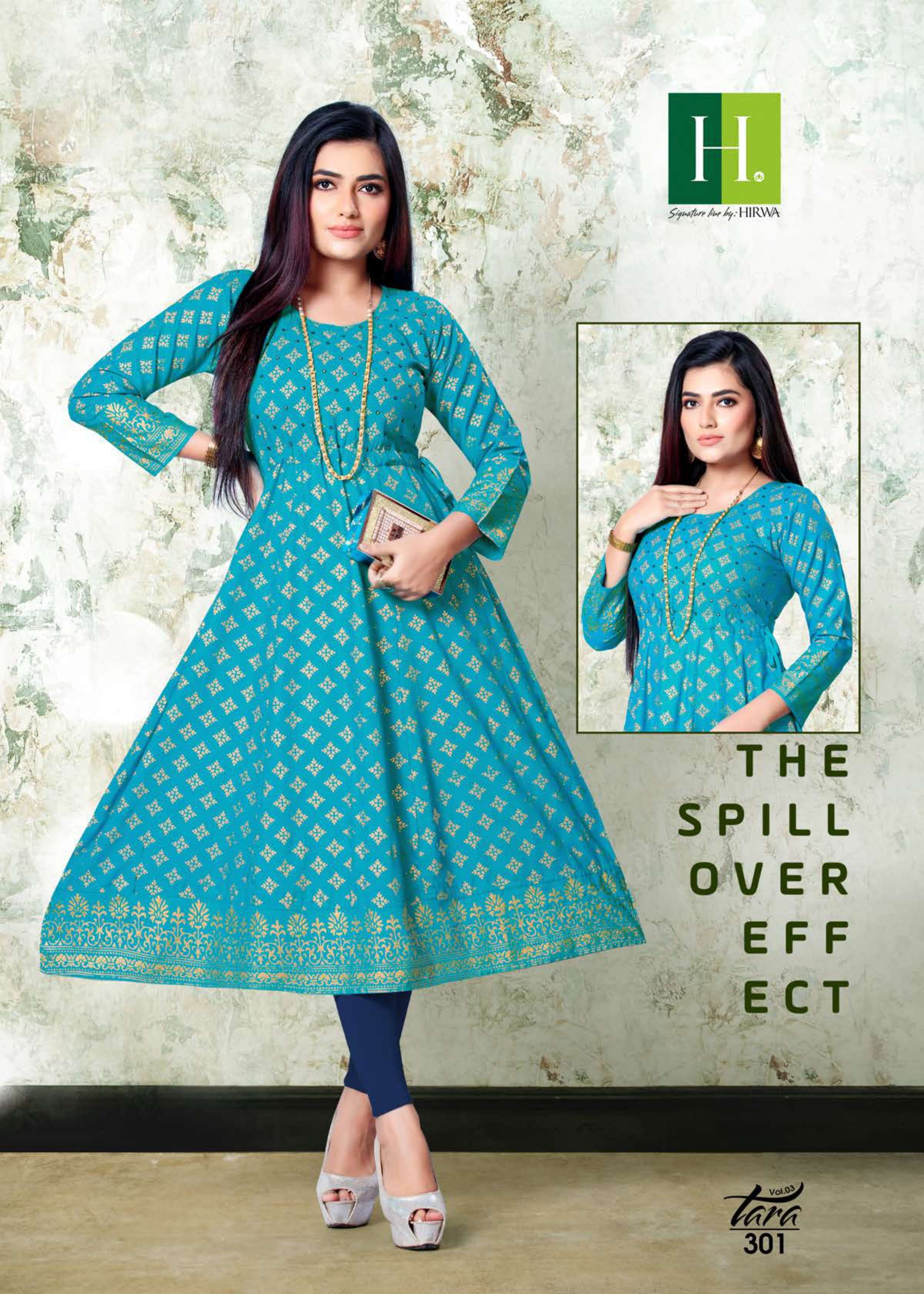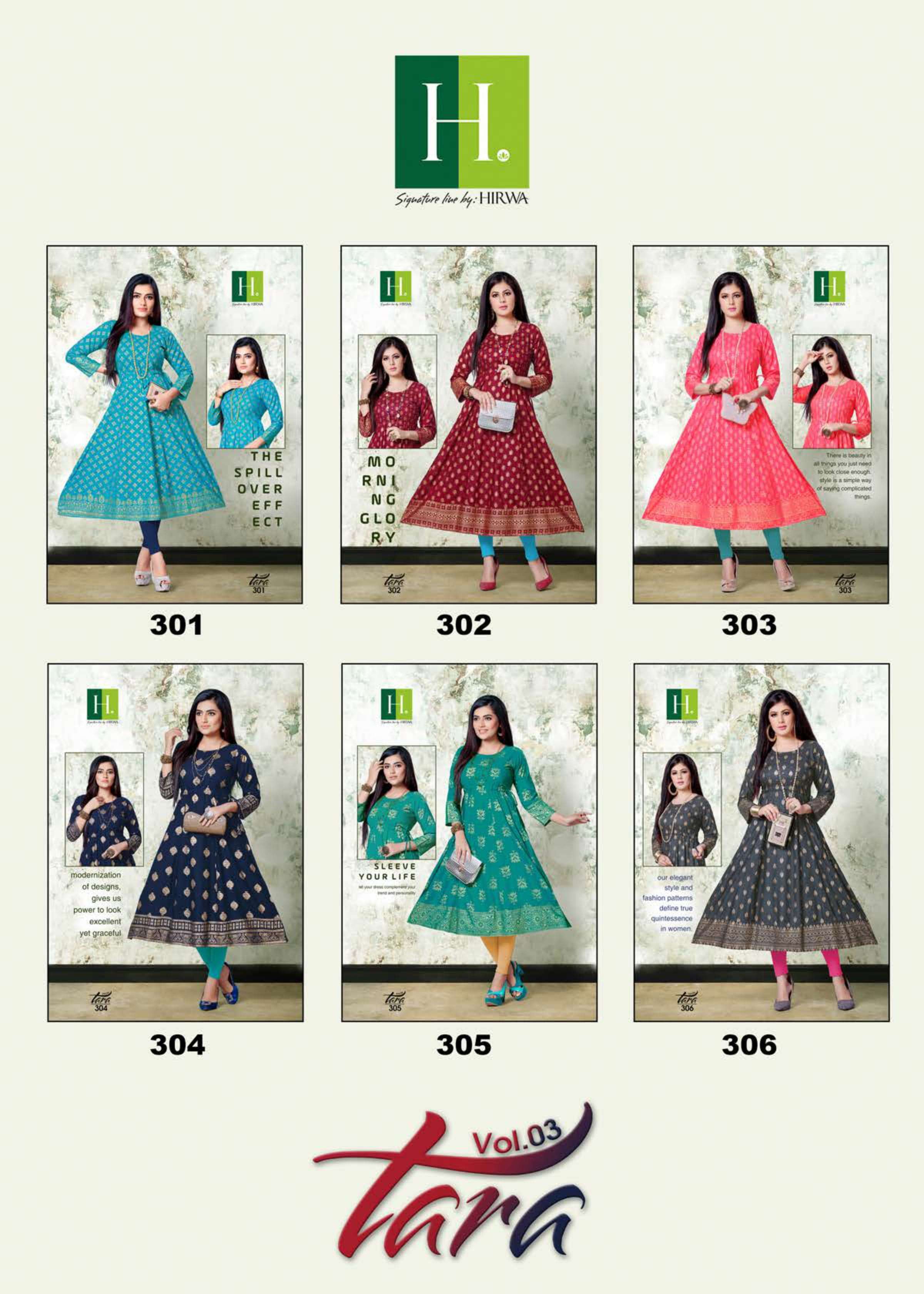 Hirwa Tara Vol.3 Heavy Rayon Gold Print Kurti Catlog Wholesaler Best Rate