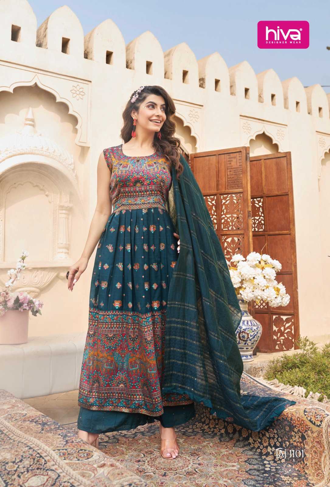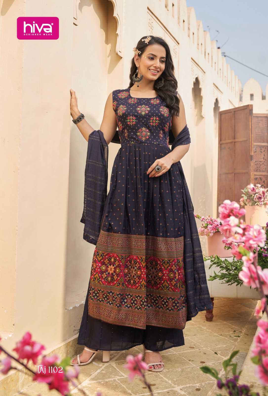 hiva designer taj beautiful fullstitch plazo kurti dupatta elegant festive wear