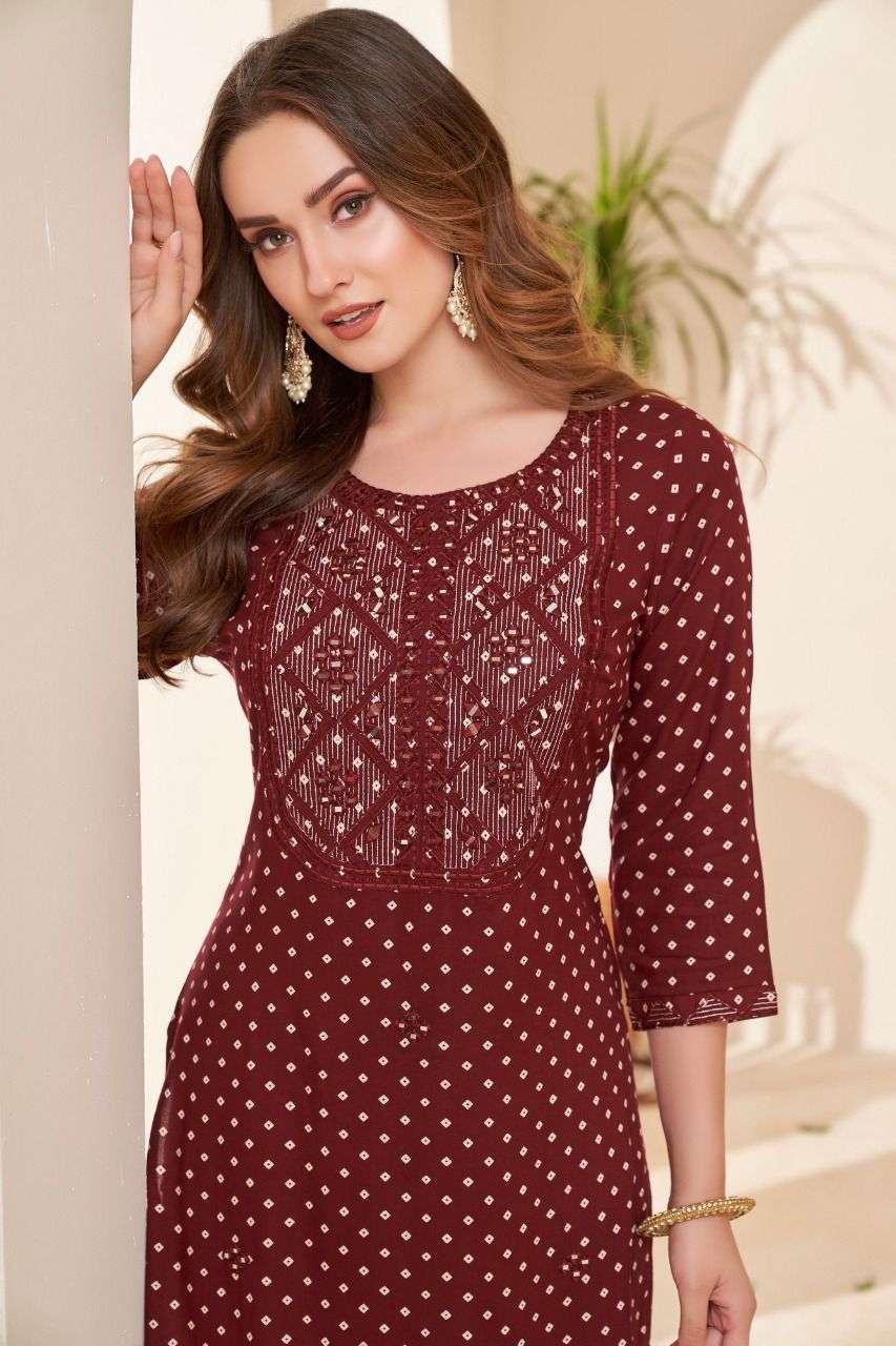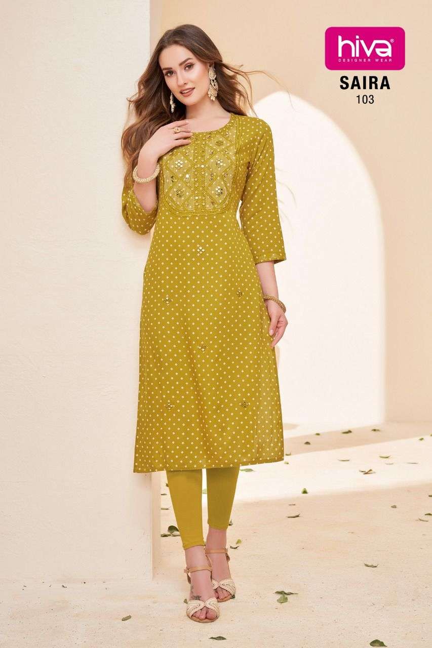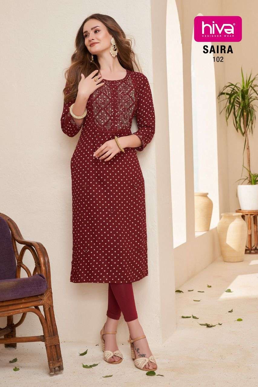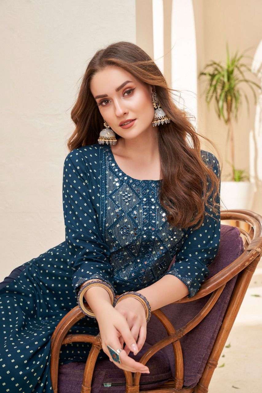 Summer , Winter ,Spring & Fall - this collection will be loved by you in all seasons. ᯽𝗛𝗜𝗩𝗔 ᯽ brings you ... “ ❤︎︎ 𝗦𝗔𝗜𝗥𝗔 ❤︎︎“ A bandhej print straight kurti collection with aesthetic 𝗺𝗶𝗿𝗿𝗼𝗿 𝘄𝗼𝗿𝗸 𝗲𝗺𝗯𝗿𝗼𝗶𝗱𝗲𝗿𝗲𝗱 𝘆𝗼𝗸𝗲 . They are the most comfortable wear this summer ☀️ . Regular wear yet classy to pull it out door. Perfect 𝗳𝗼𝗿 𝘄𝗼𝗺𝗲𝗻 𝗼𝗳 𝗮𝗹𝗹 𝗮𝗴𝗲 . Don’t miss on to the variety of colors. 𝗥𝗮𝘁𝗲 : 635