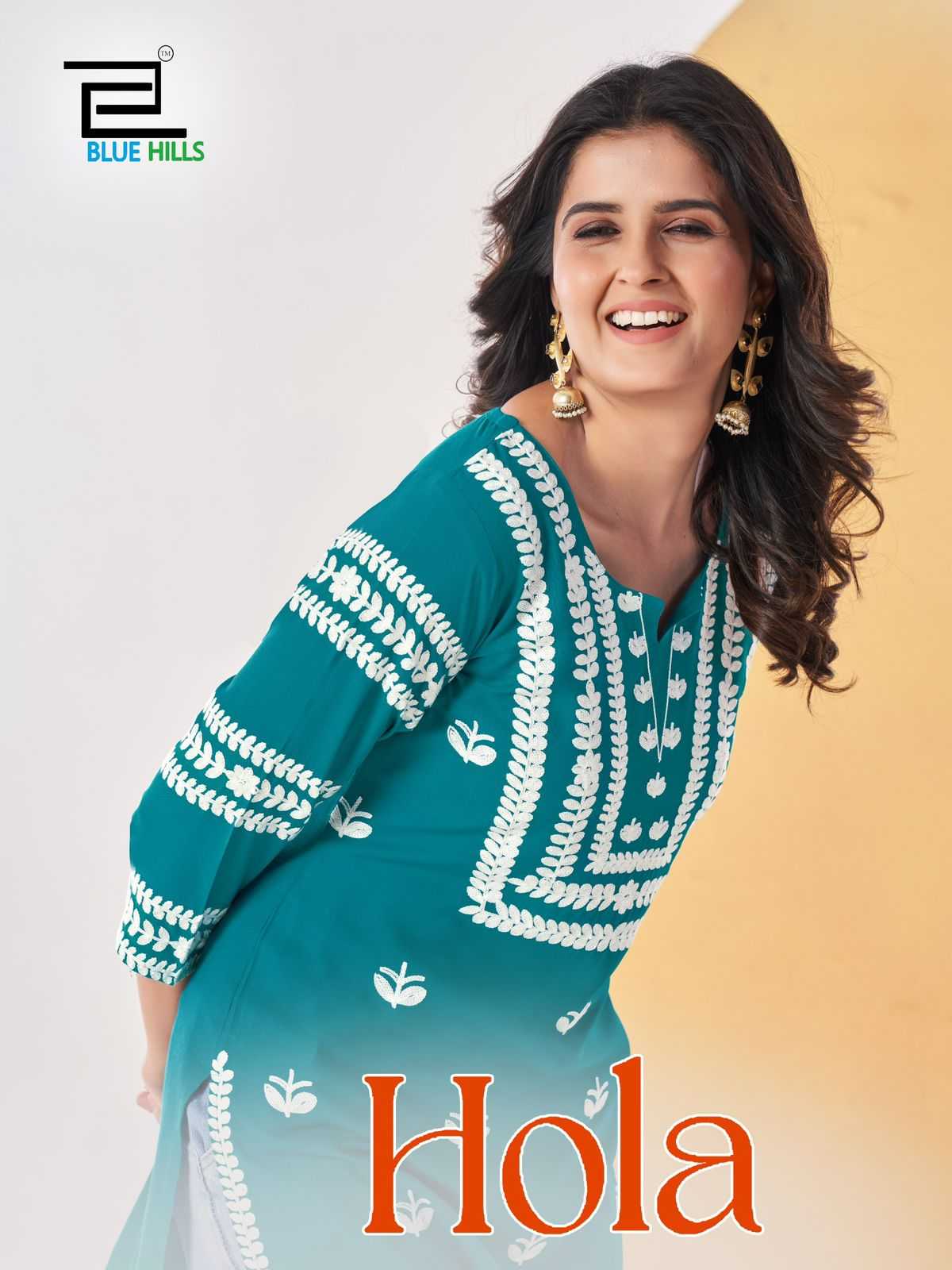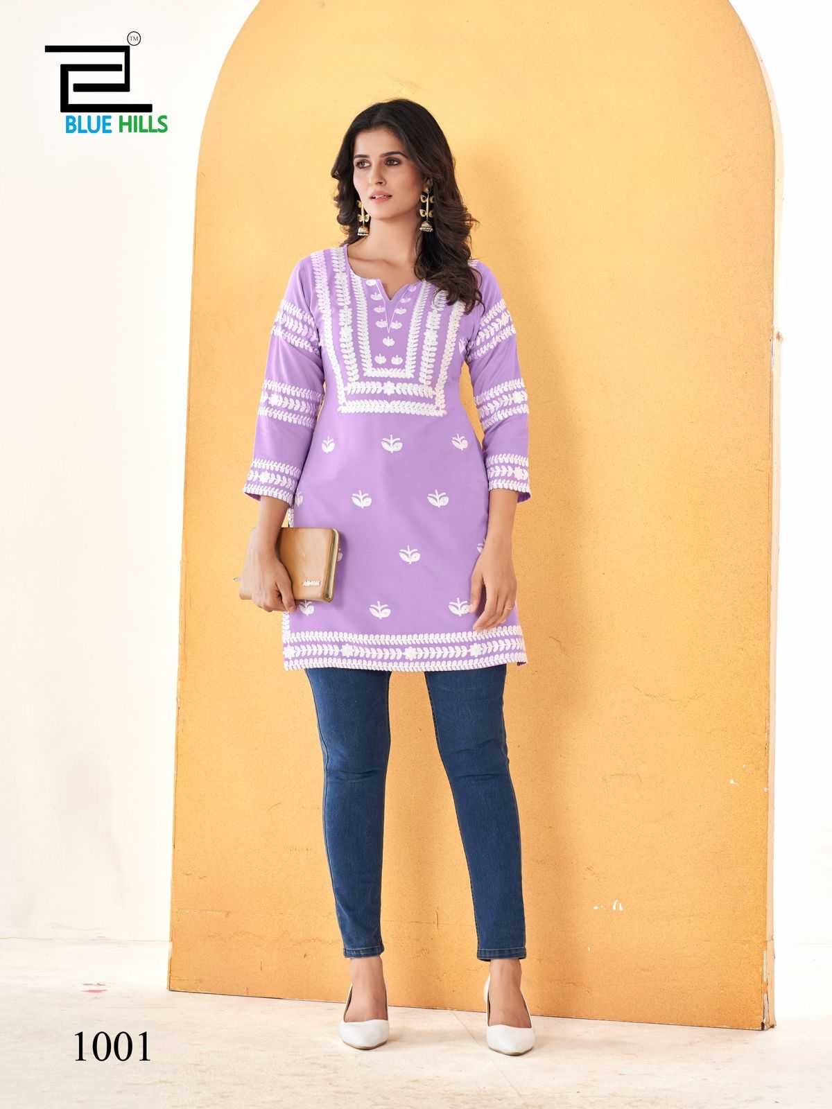 #Blue Hills Fabric : 14 kg Rayon With work kurti side cut Length 33 Sizes. : M L XL XXL Rate - 399 + 5 % GST 6 pcs set |