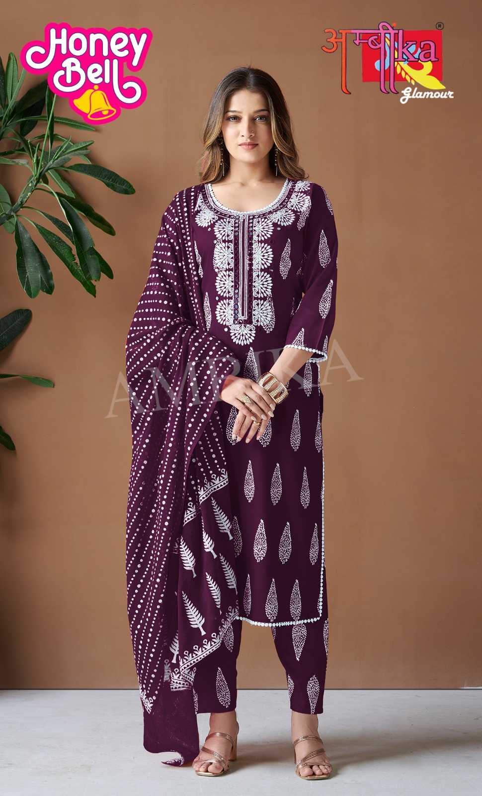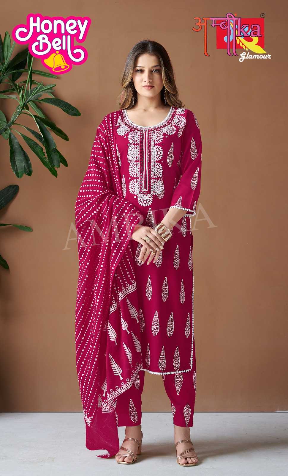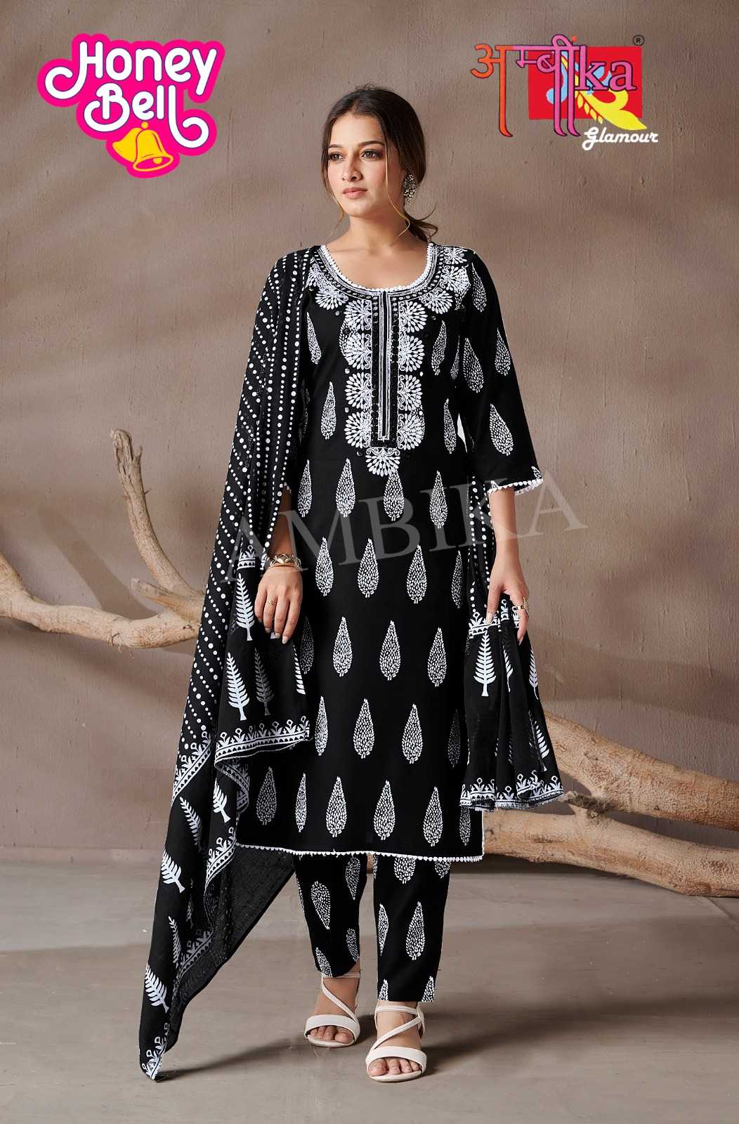honey bell by ambika rayon print daily wear stylish full stitch combo set dress
