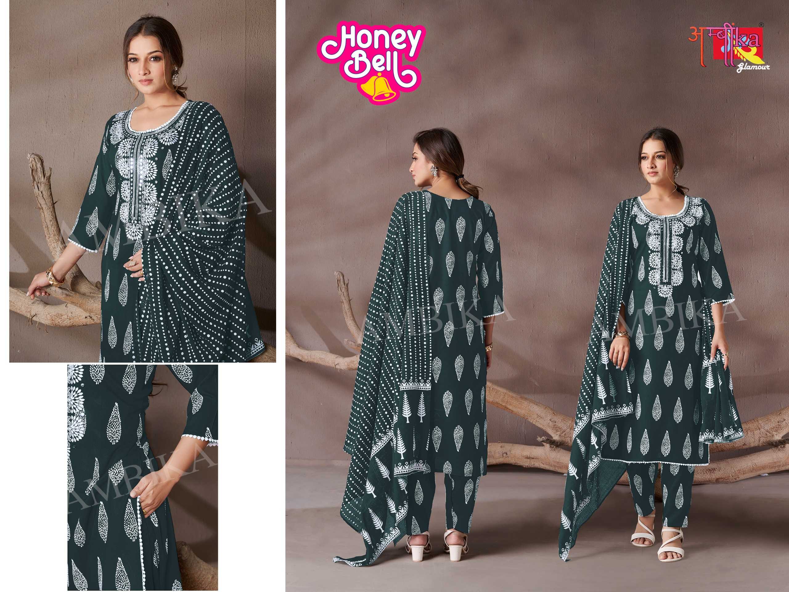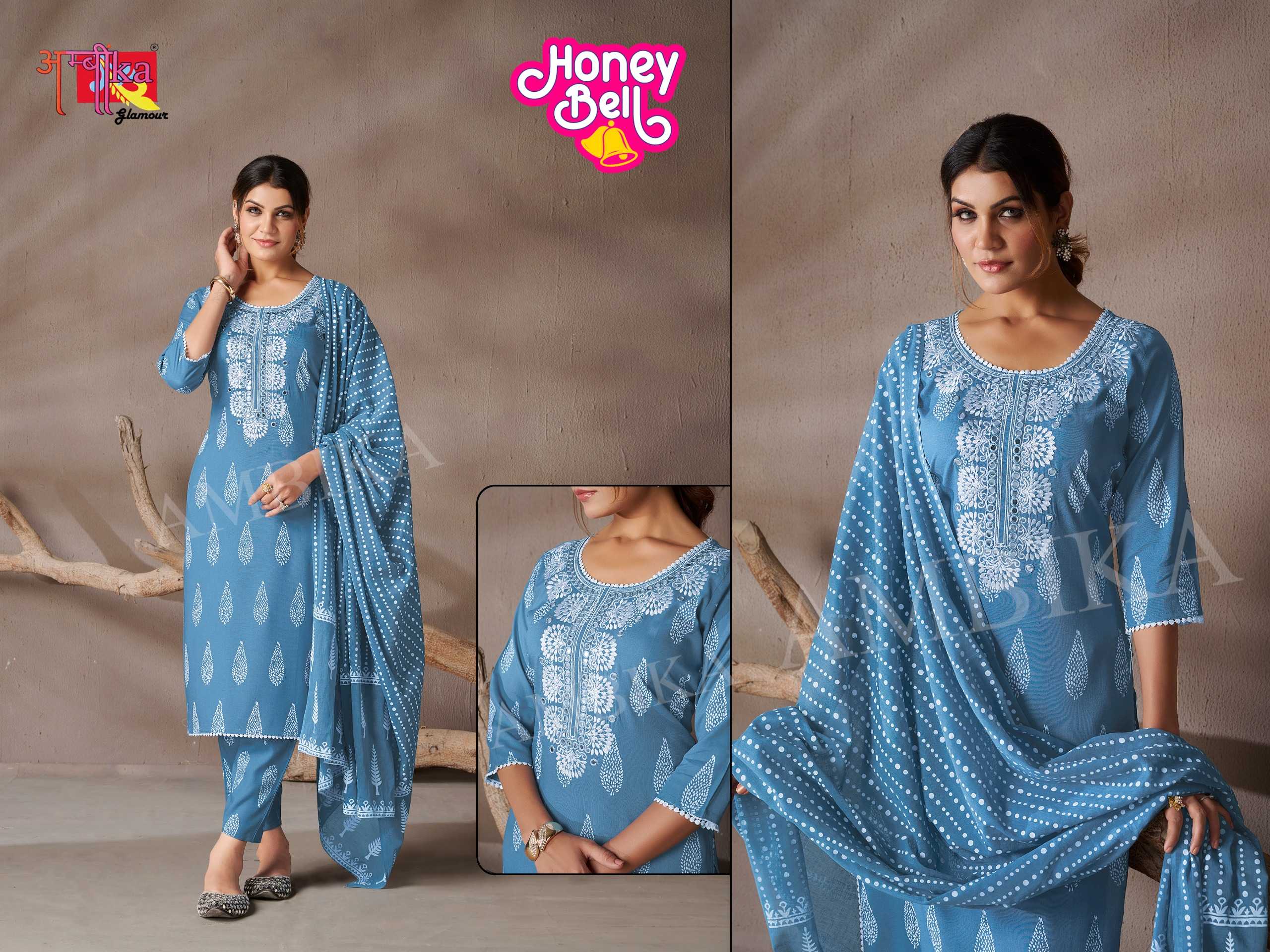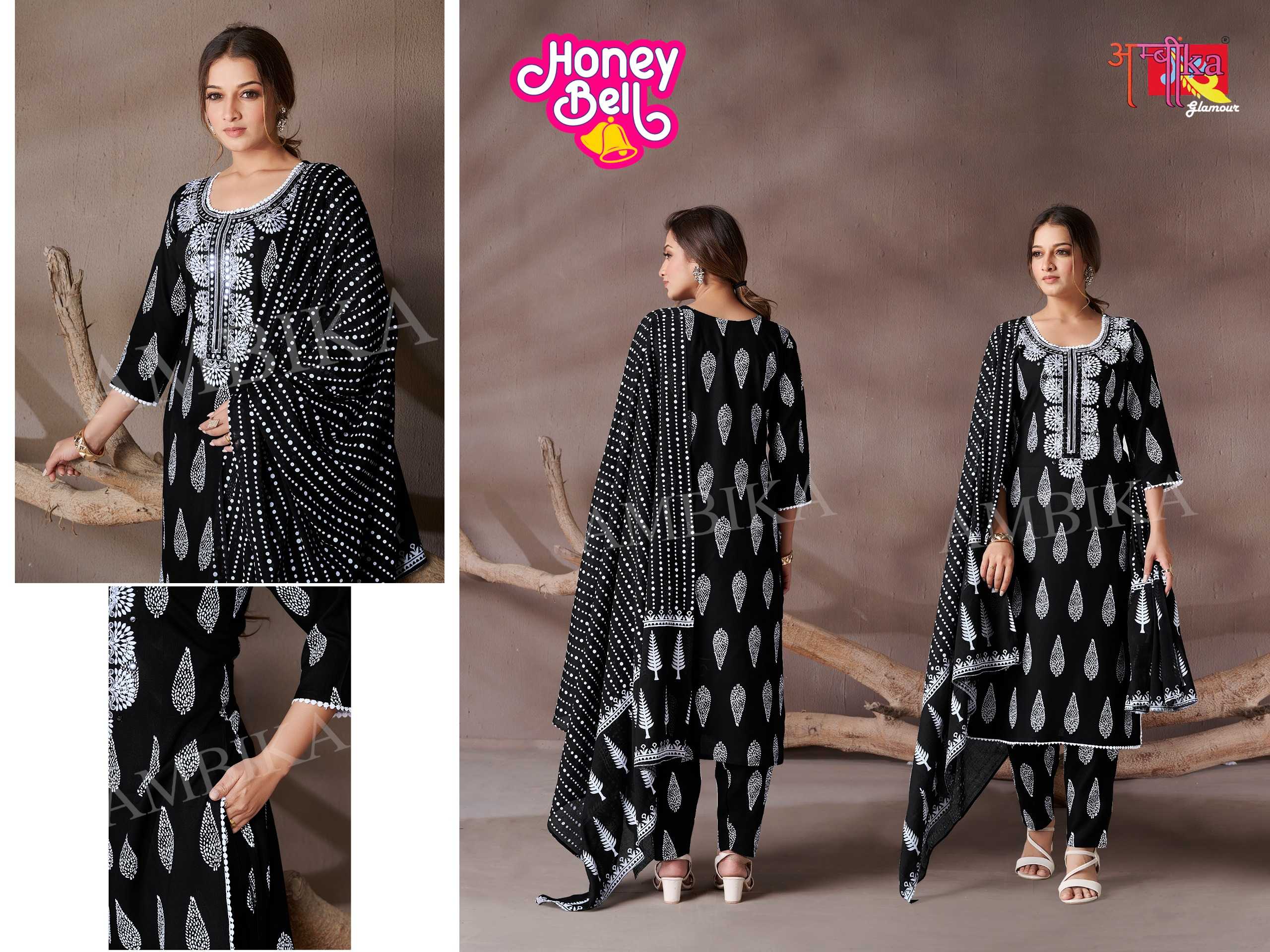 honey bell by ambika rayon print daily wear stylish full stitch combo set dress