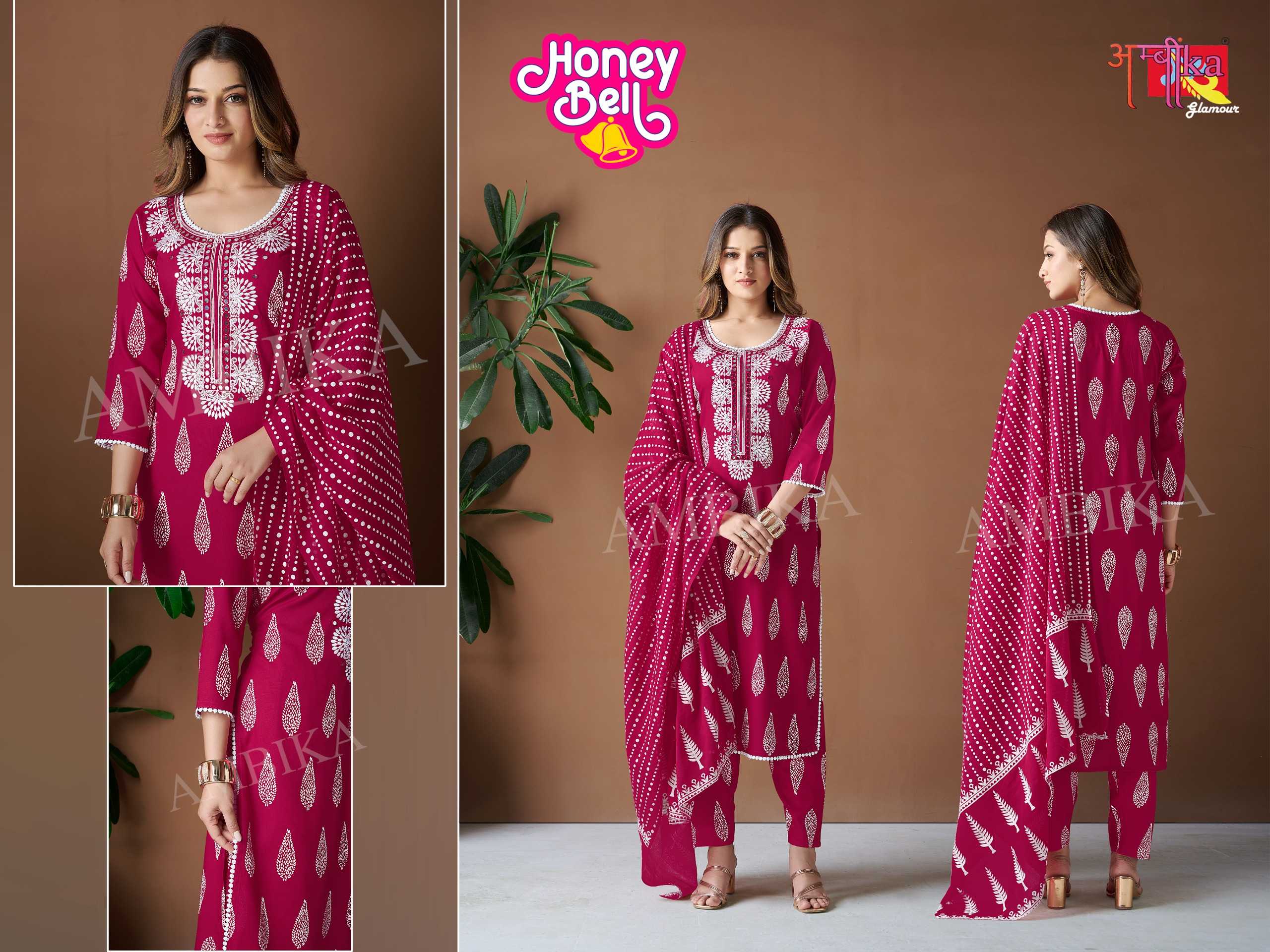 *Ambika kurtis* Design name: *Honey Bell ❣️❣️* *WITH SINGLE POUCH PACKING🪇🪇🪇* *Limited stock … Thank u🙏* |
