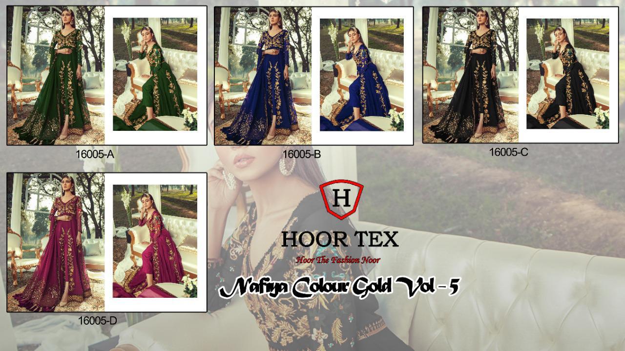 Hoor Tex Nafiya 16005 Colours Gold Vol 5 Fox Georgette Party Wear Pakistani Suit Concept