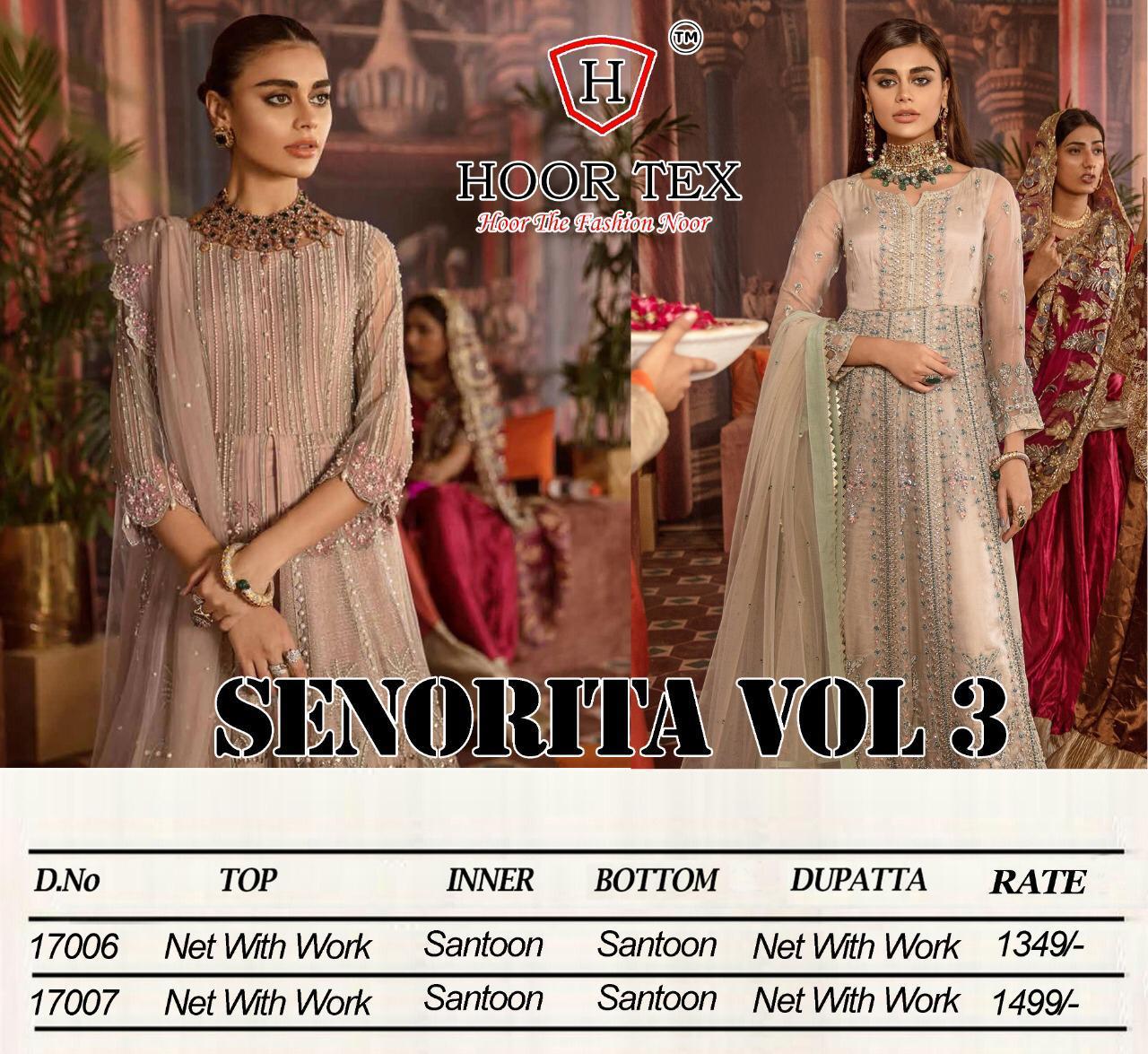 Hoor Tex Senorita Vol 3 Net With Work Pakistani Suits