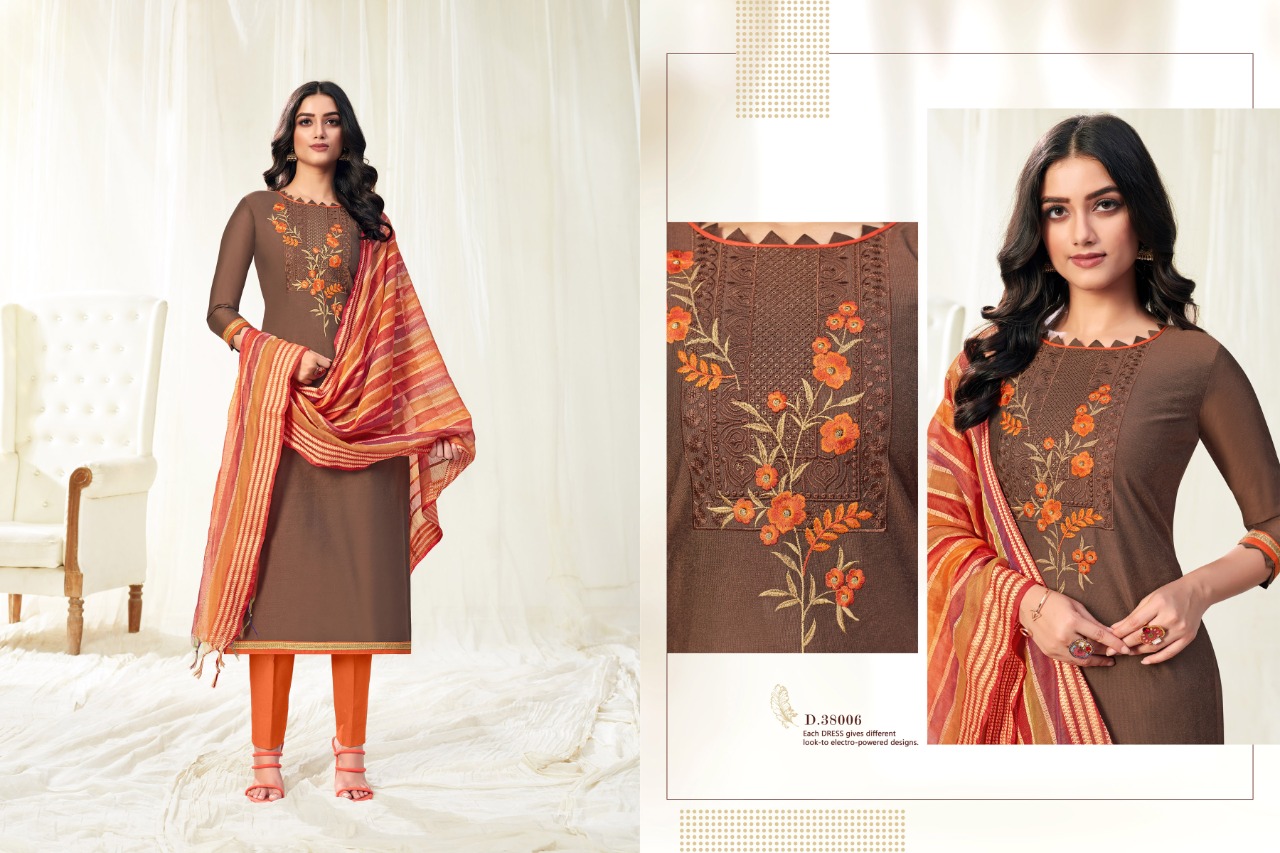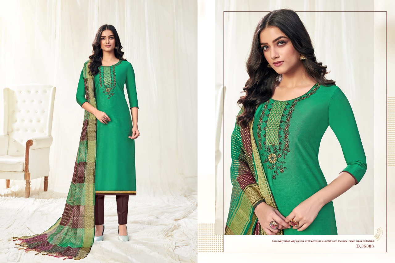 H O T S P O T Vol - 2 Designer embroidery tops and fancy dupattas range. Top: South Silk based exclusive embroidery work, 2.40 mtr Dupatta: Fancy Jacquard Dupattas, 2.40 mtr Bottom: Cotton, 2.50 mtr Rate- 595 per pcs. Set to set. GST 5 Percent Extra. Delivery from today Always with you, for you! RAGHAV CREATION |