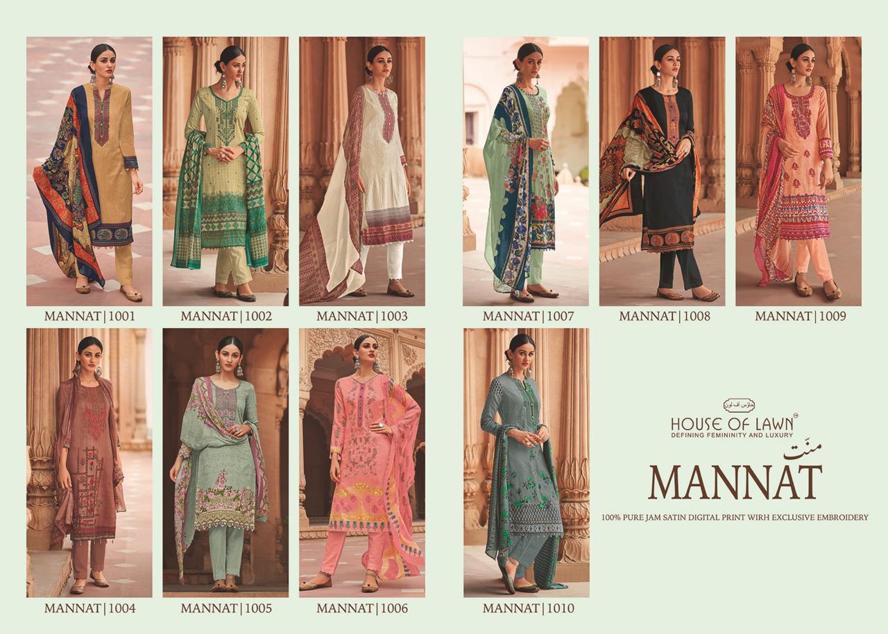 House Of Lawn Mannat Jam Satin Digital Print Casual Wear Salwar Suit Wholesaler