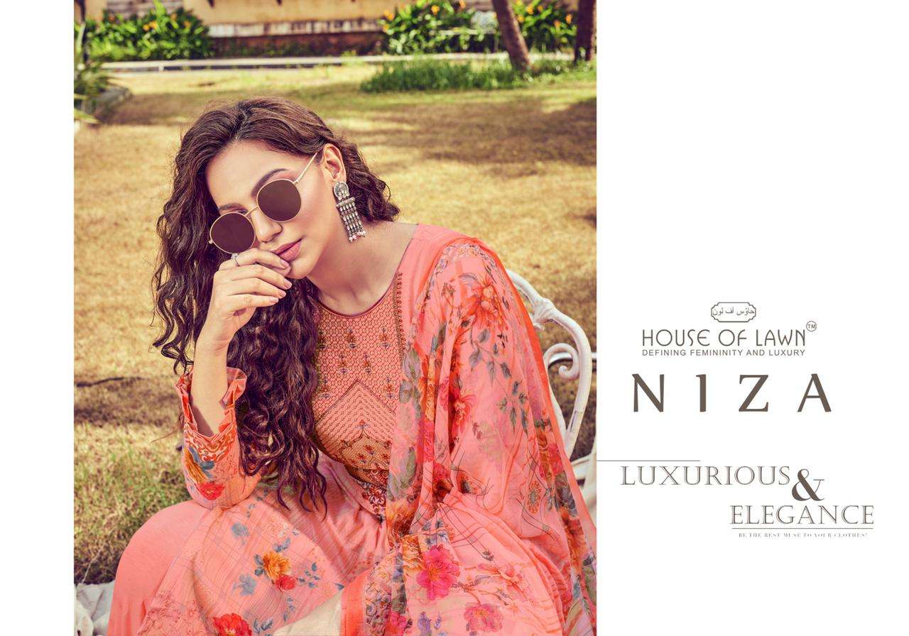 Name - HOUSE OF LAWN NIZA Fabric details - Bot - Pure lawn dyed Dup - Pure Lawn Mul-Mul print # HEAVY EMBROIDERY |