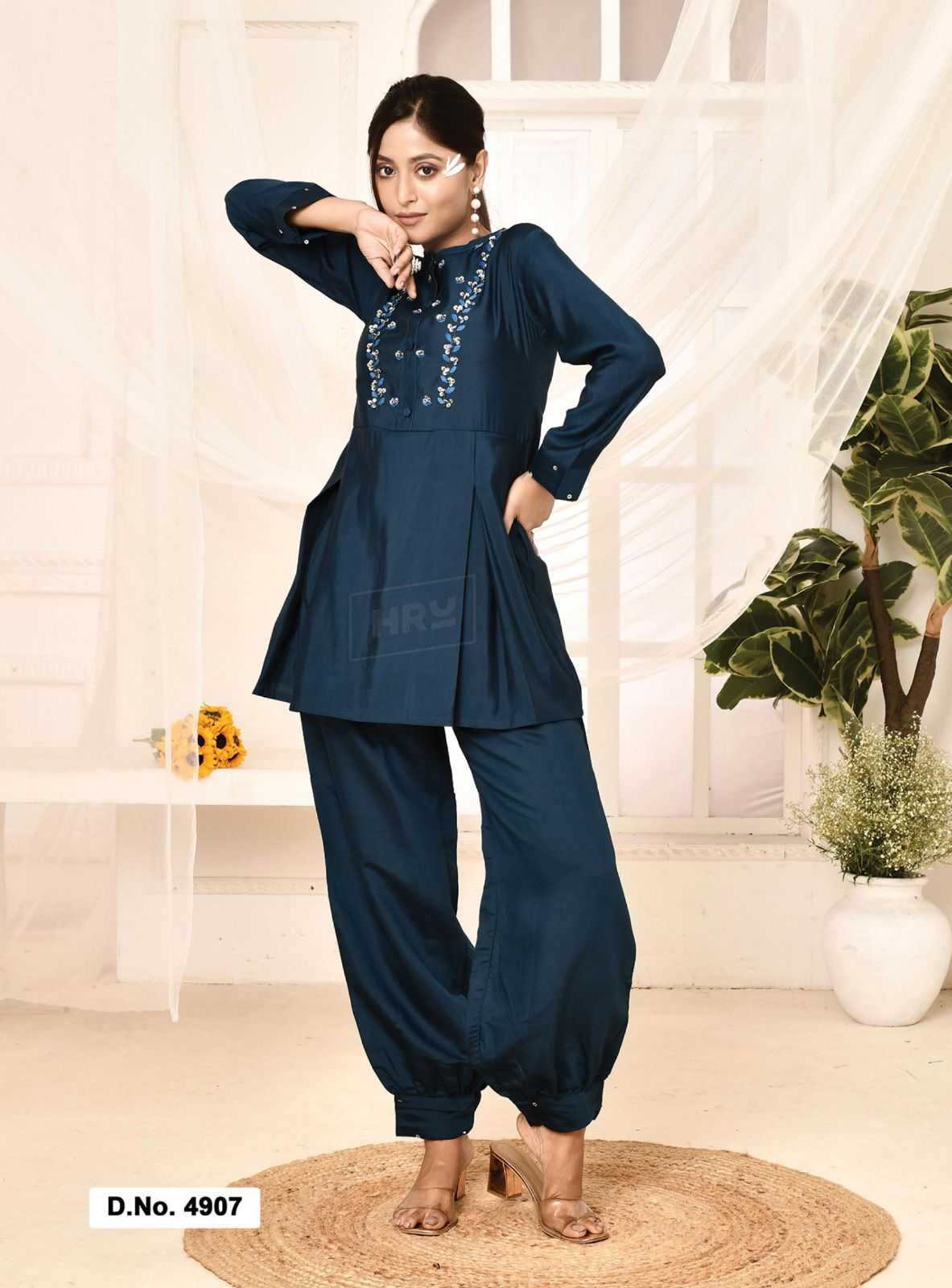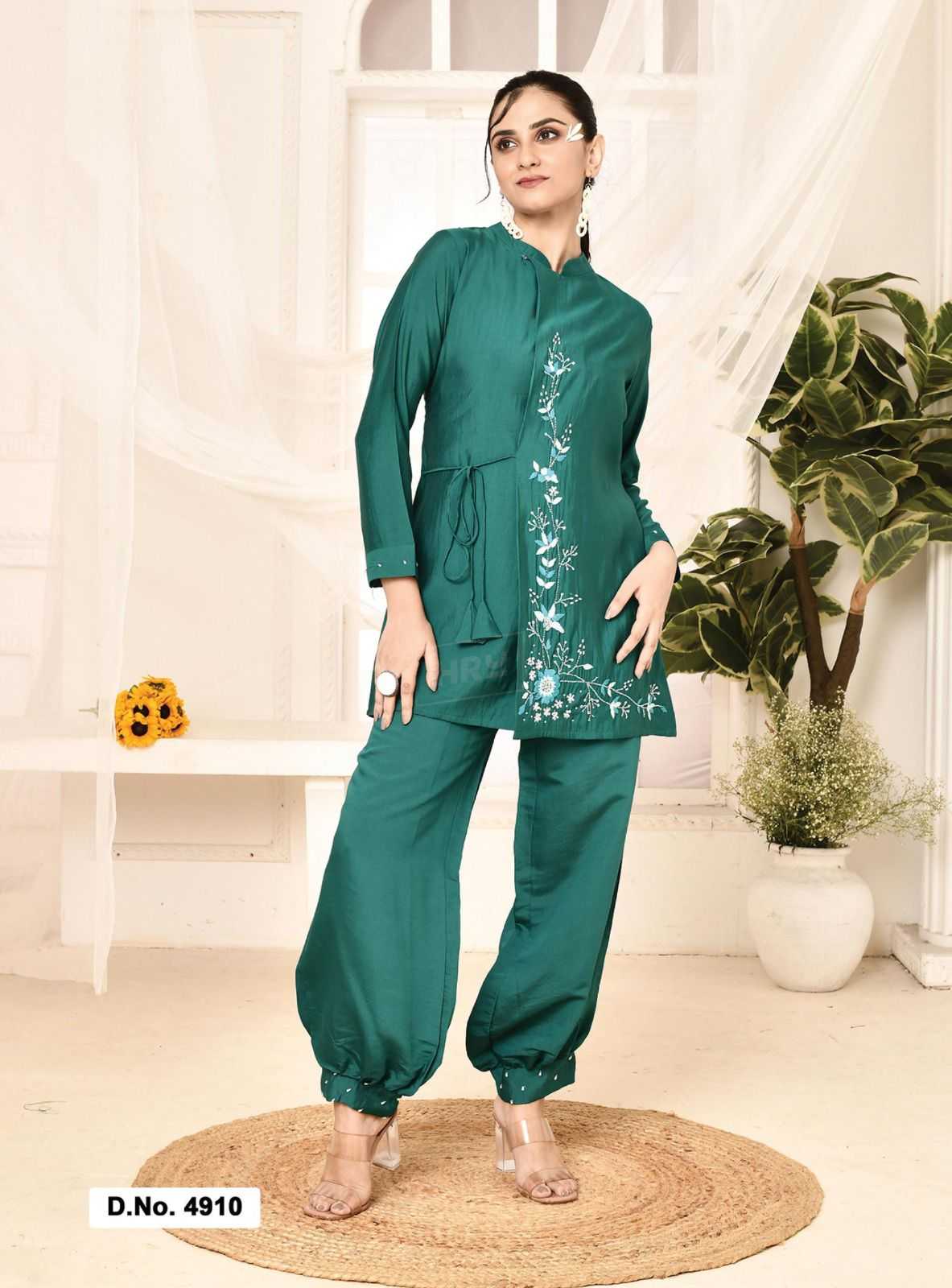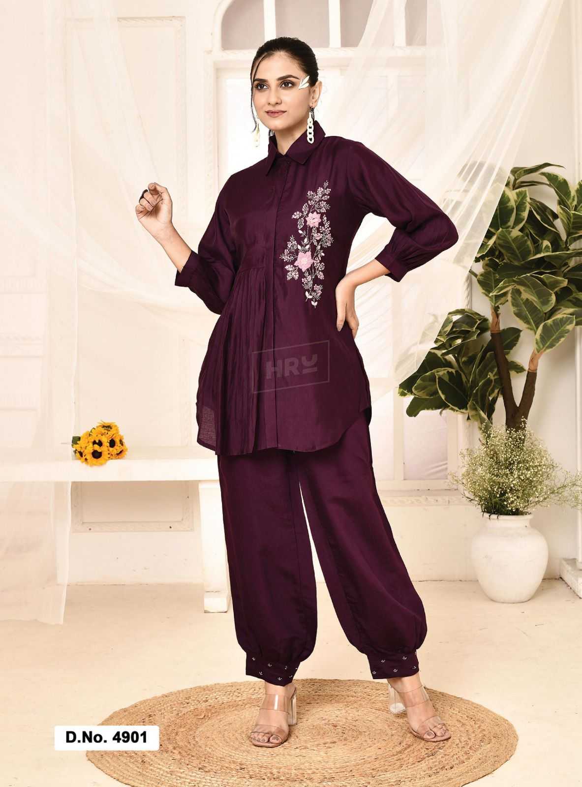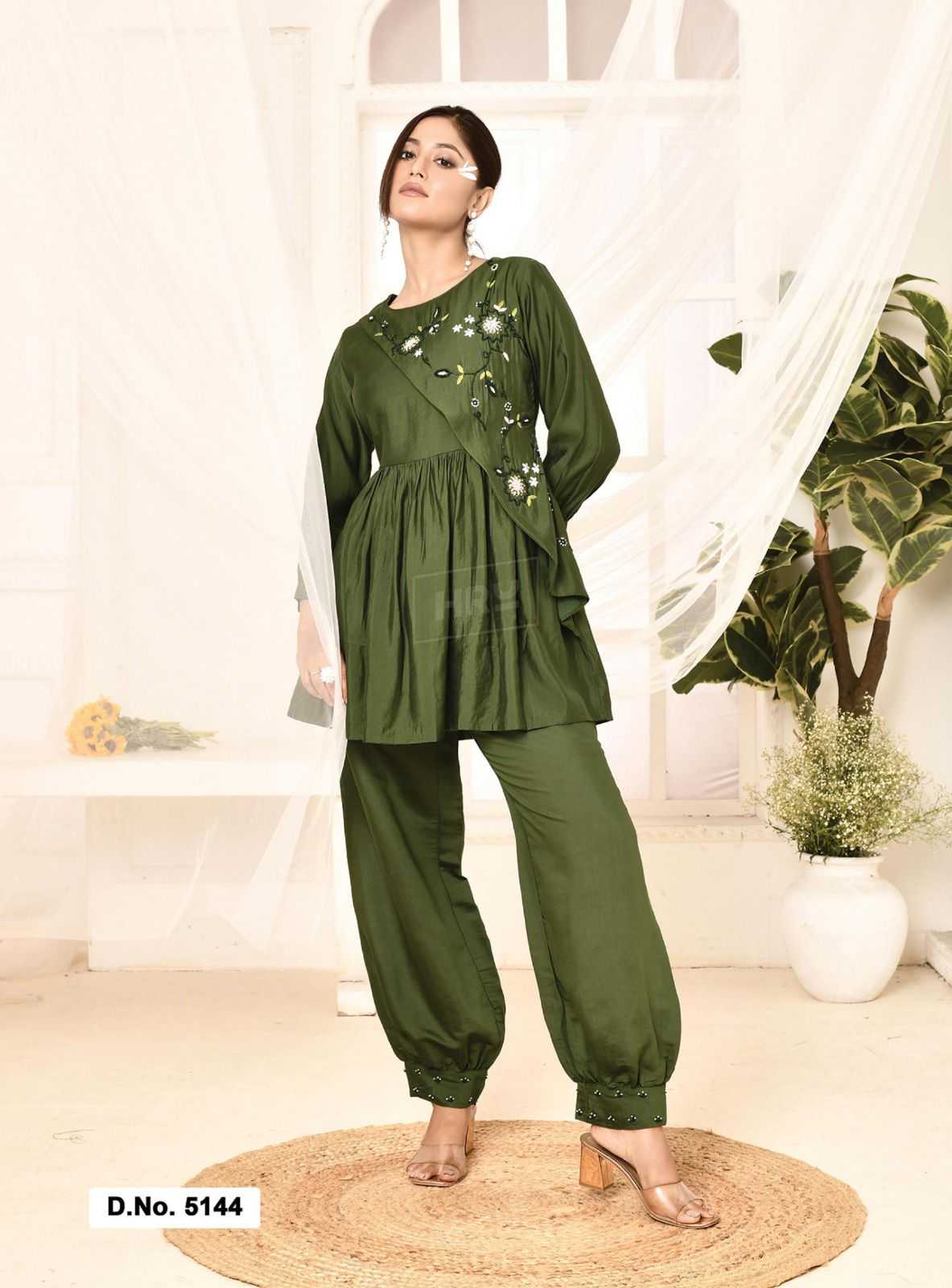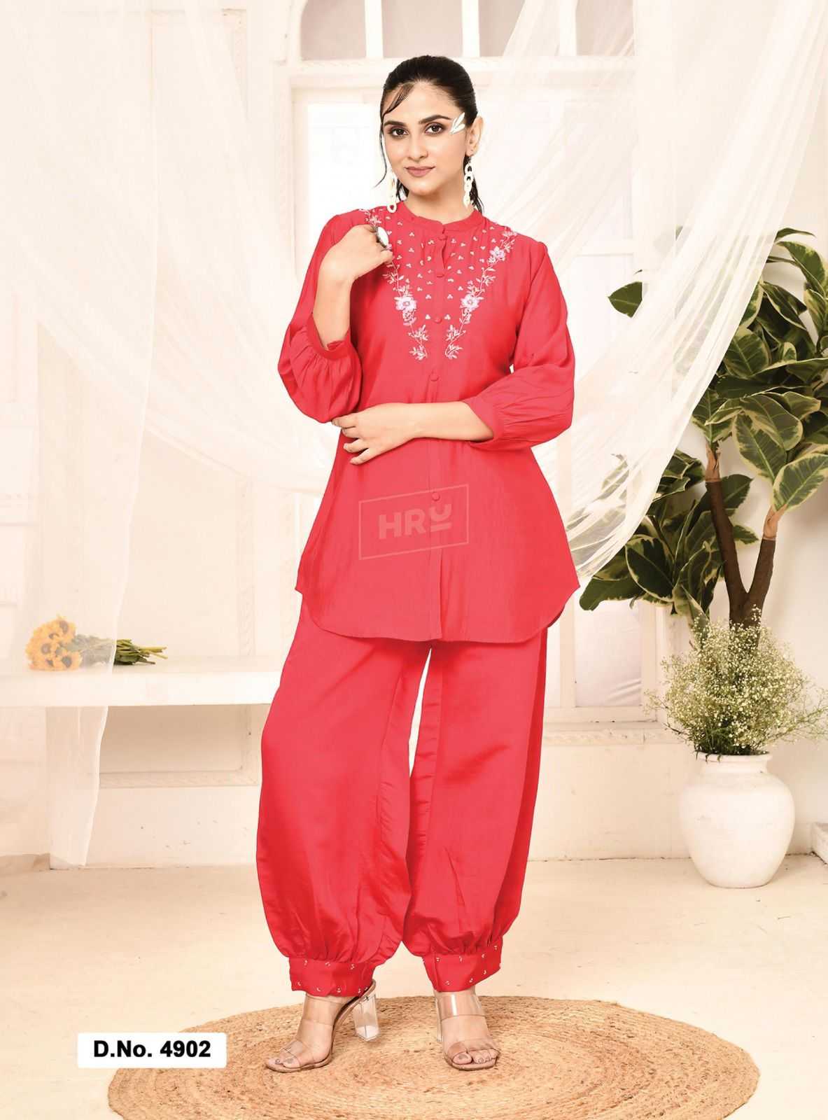 hru hiya vol 4 latest design fancy viscose hand embroidered full stitch co-ord set