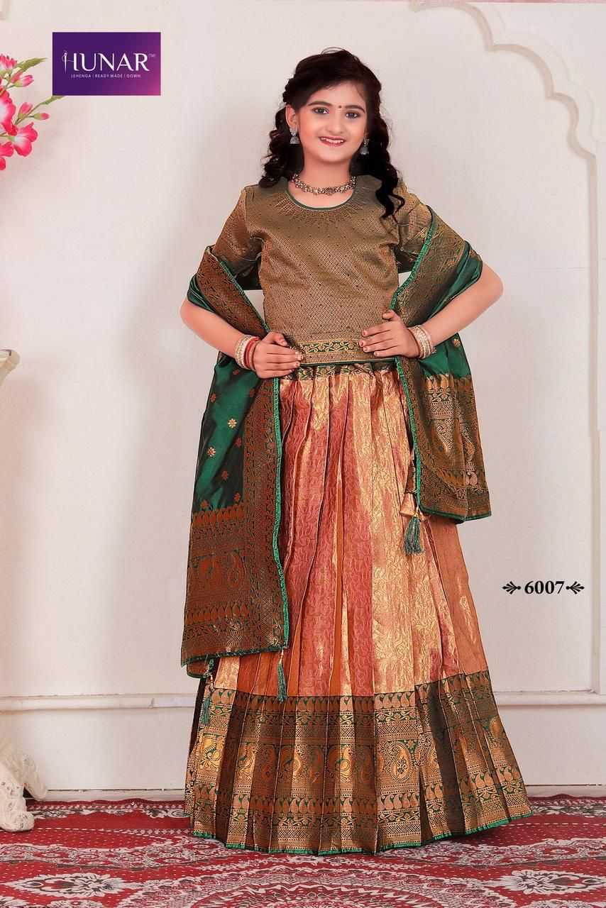We Are Happy to LAUNCH of our New Traditional Kids (Girls) Lehenga Catalogue BARBIE 9 DESIGN, SINGLE COLOUR FABRIC -:* KANCHI BASE ELEGANT SILK* BLOUSE : SWAROSKI STONE WORK |